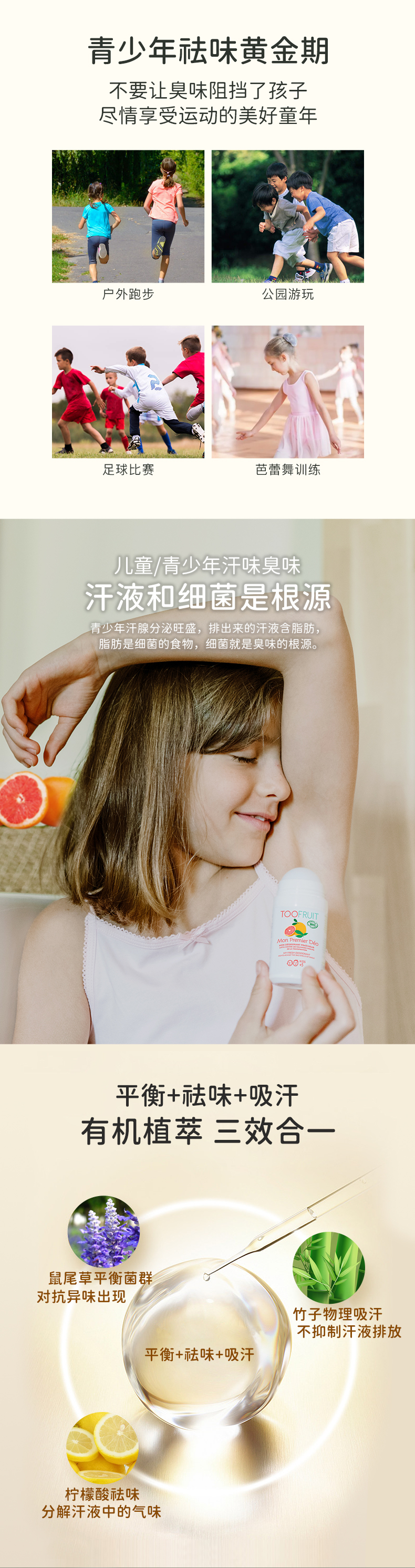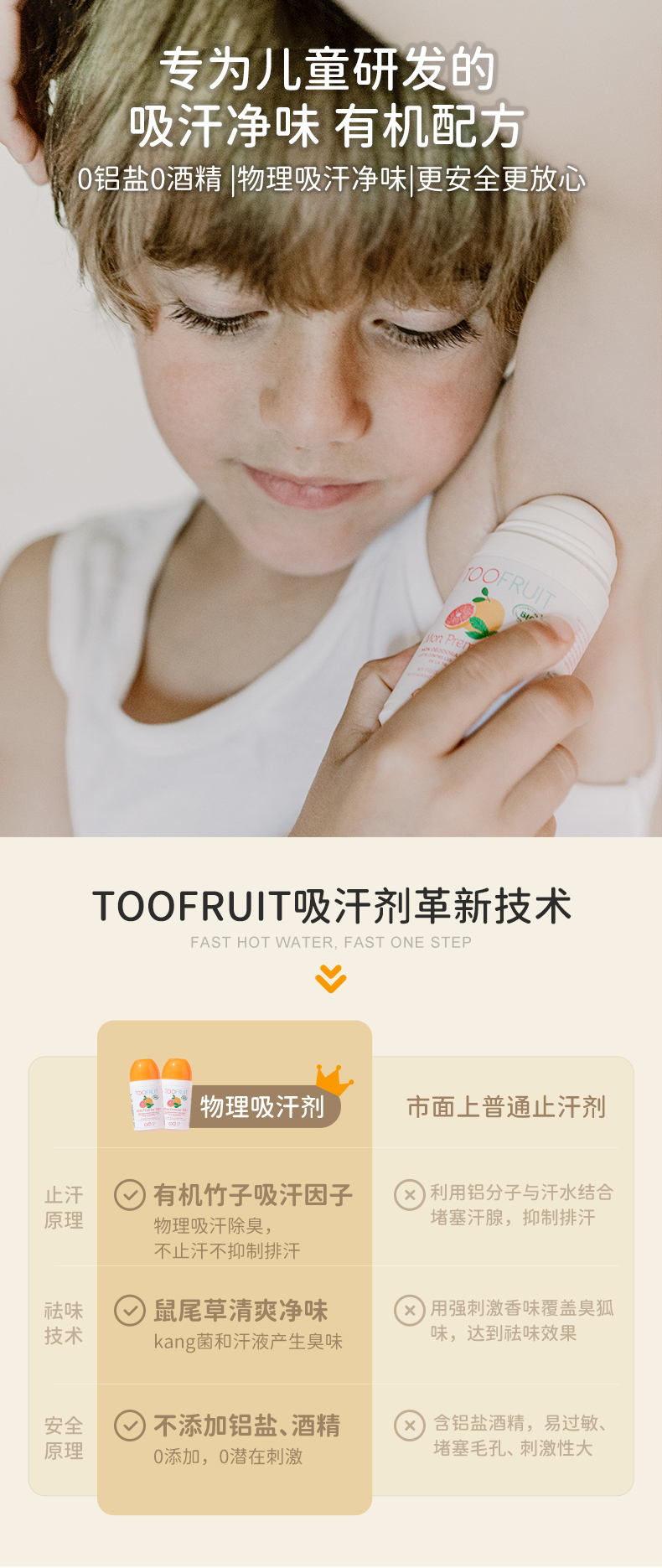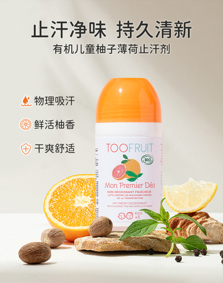 吸汗除臭 爽身不黏腻 有机儿童物理止汗露走珠50ml 法国TF