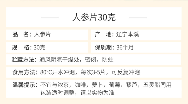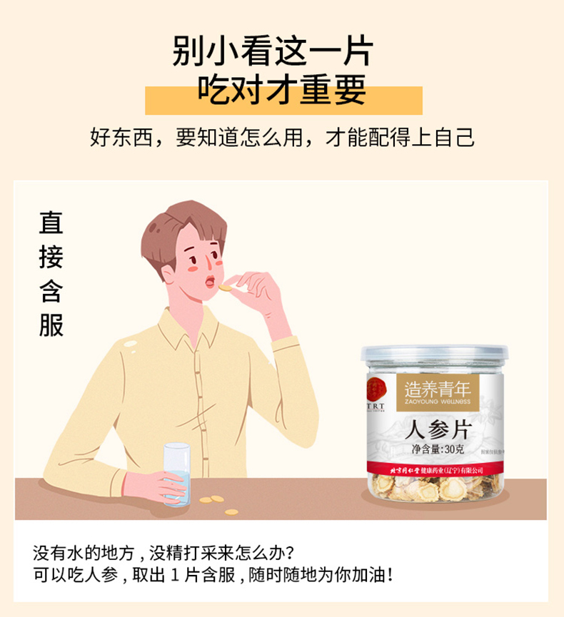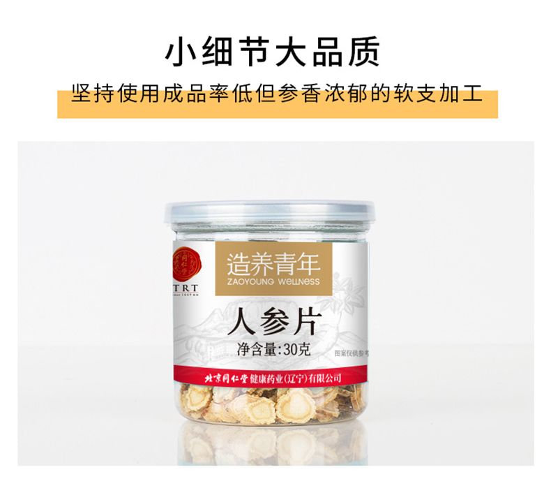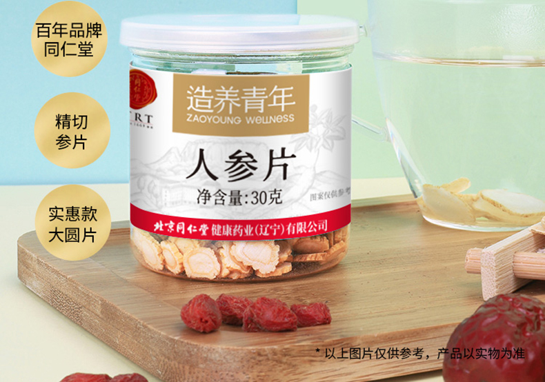 【积分兑换】北京同仁堂 造养青年 人参片切片30g 东北人参人叁泡酒白参滋补煲汤 干人参SY