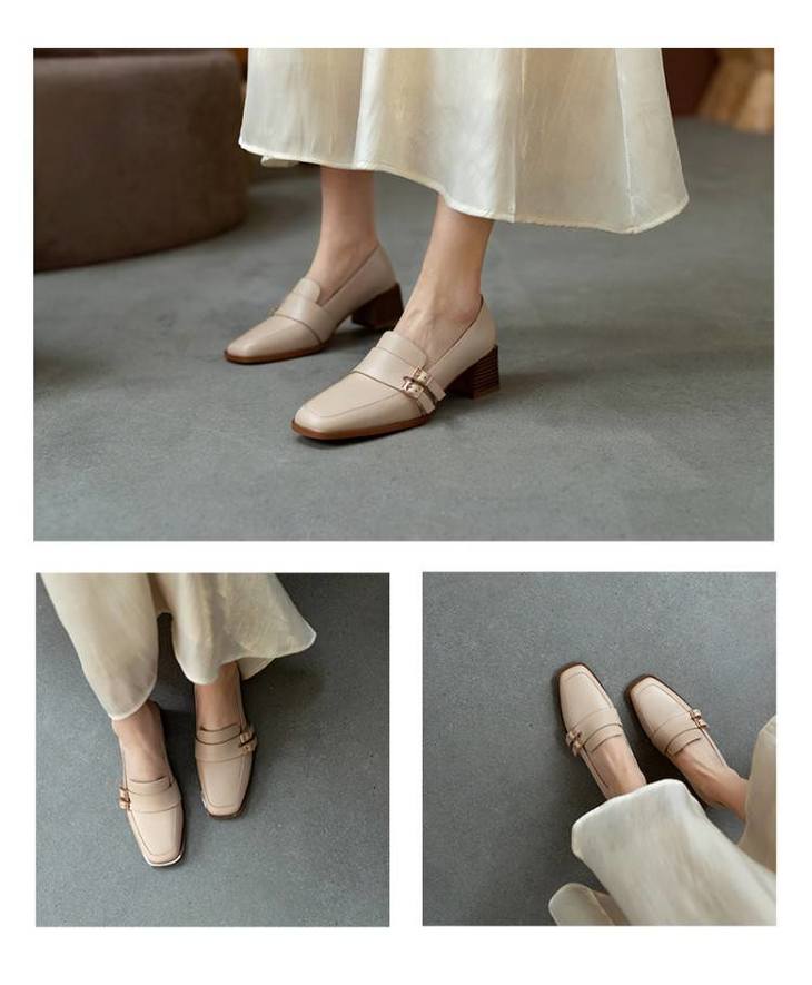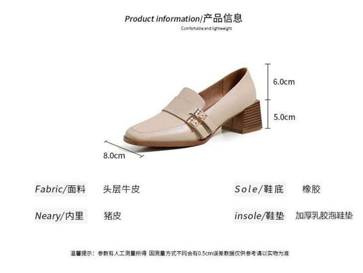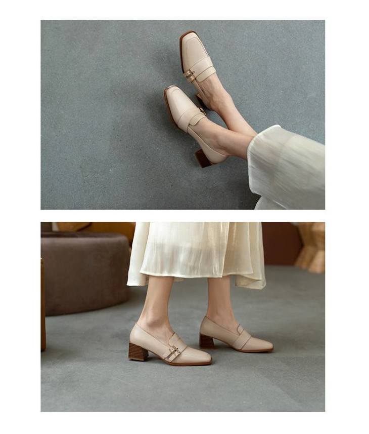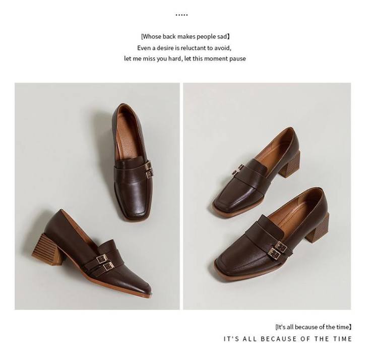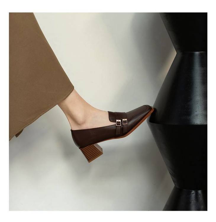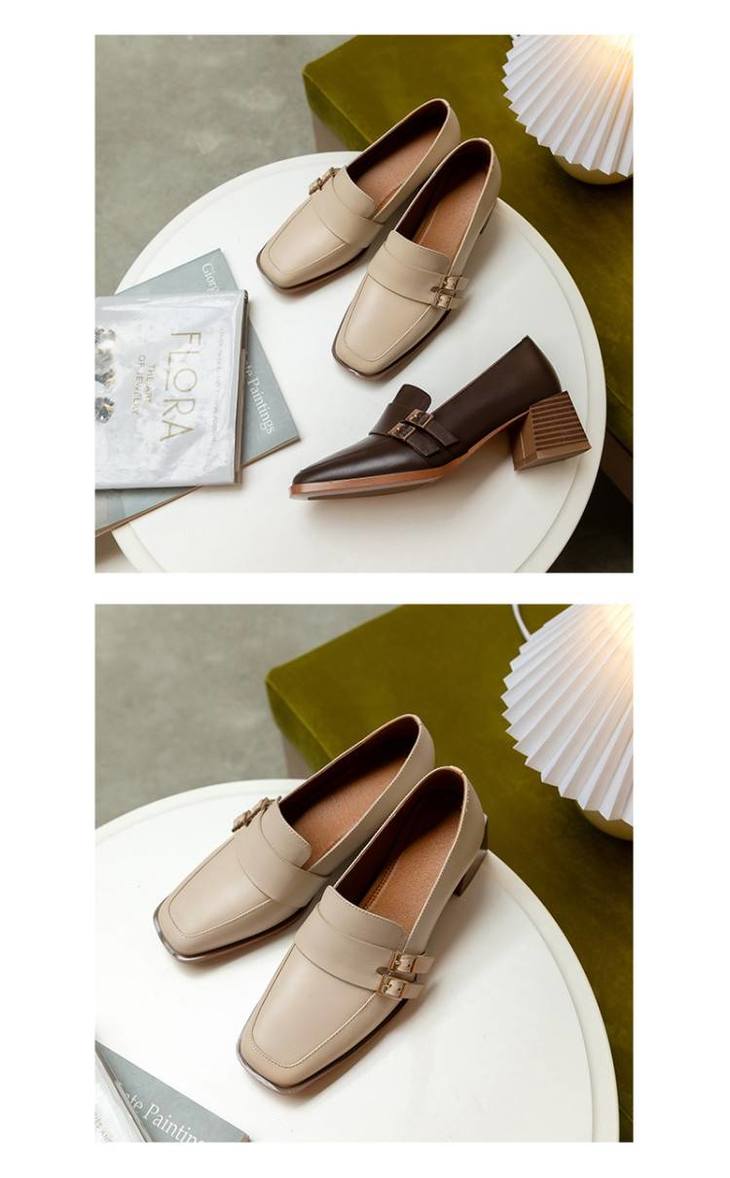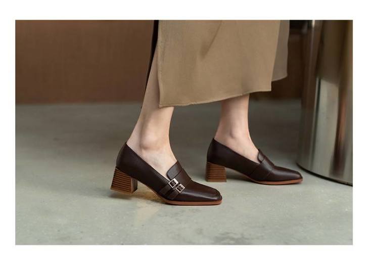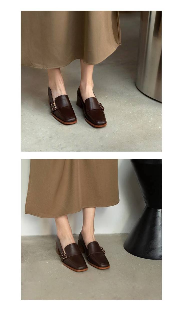【预售5天】里外全皮粗跟方头皮带扣深口单鞋头层牛皮欧韩复古中跟皮鞋乐福鞋DY&DY1901