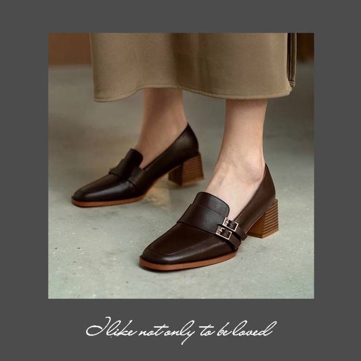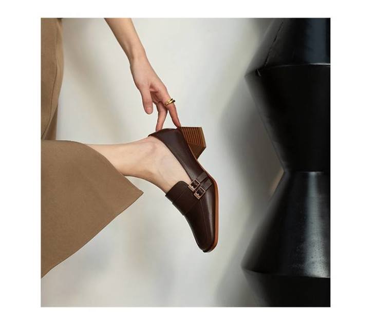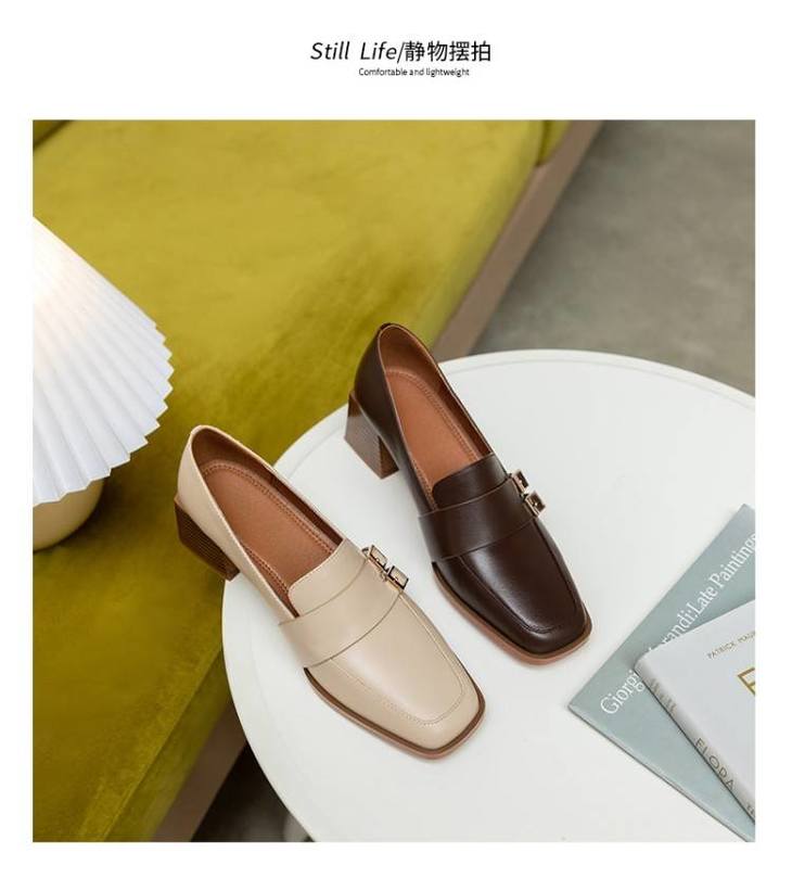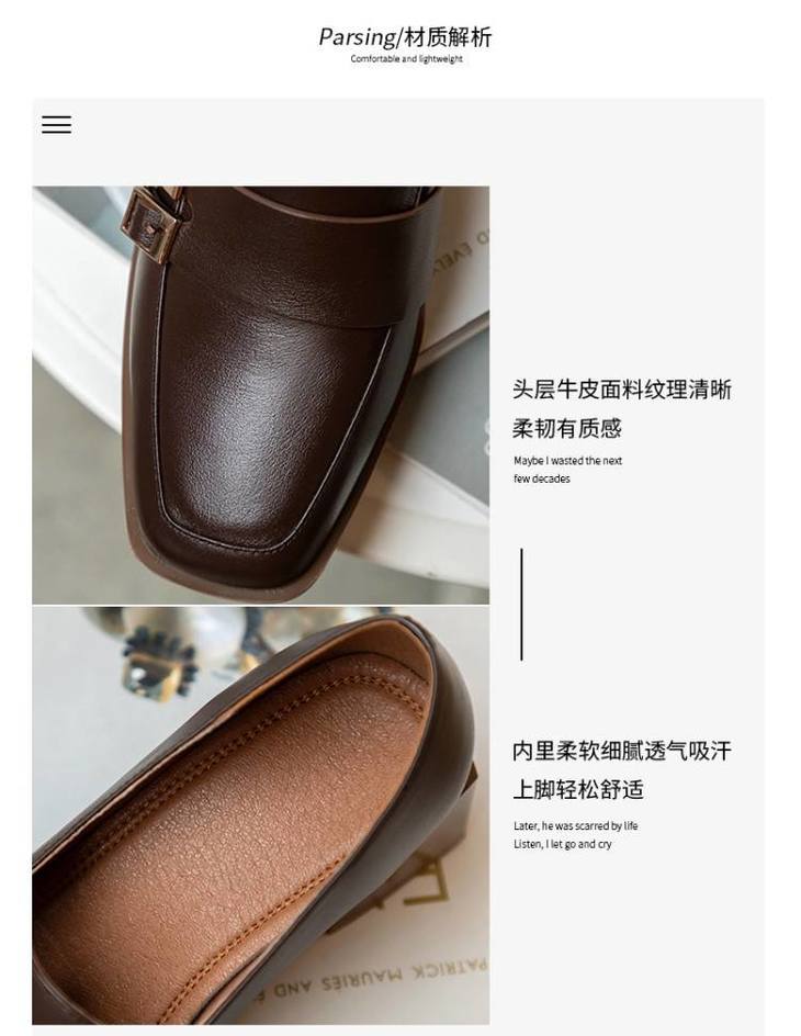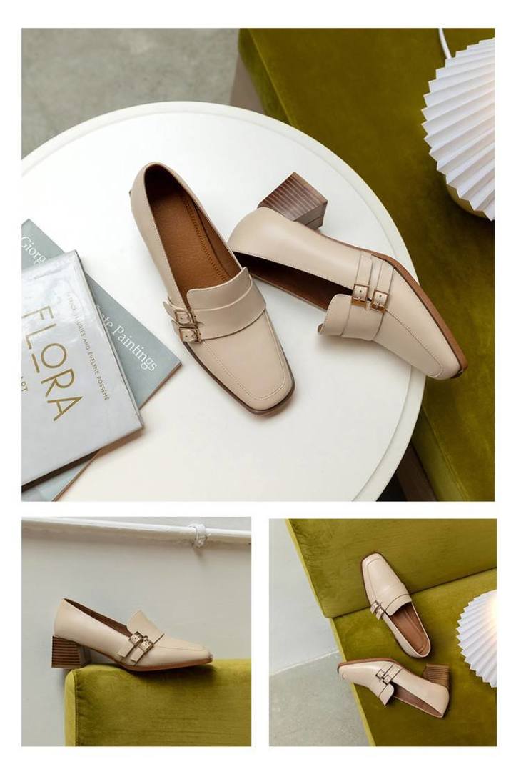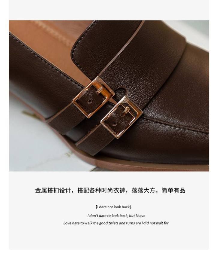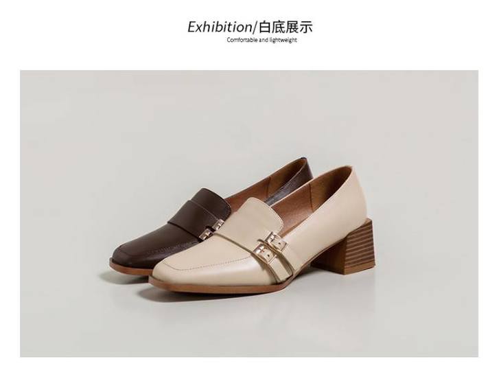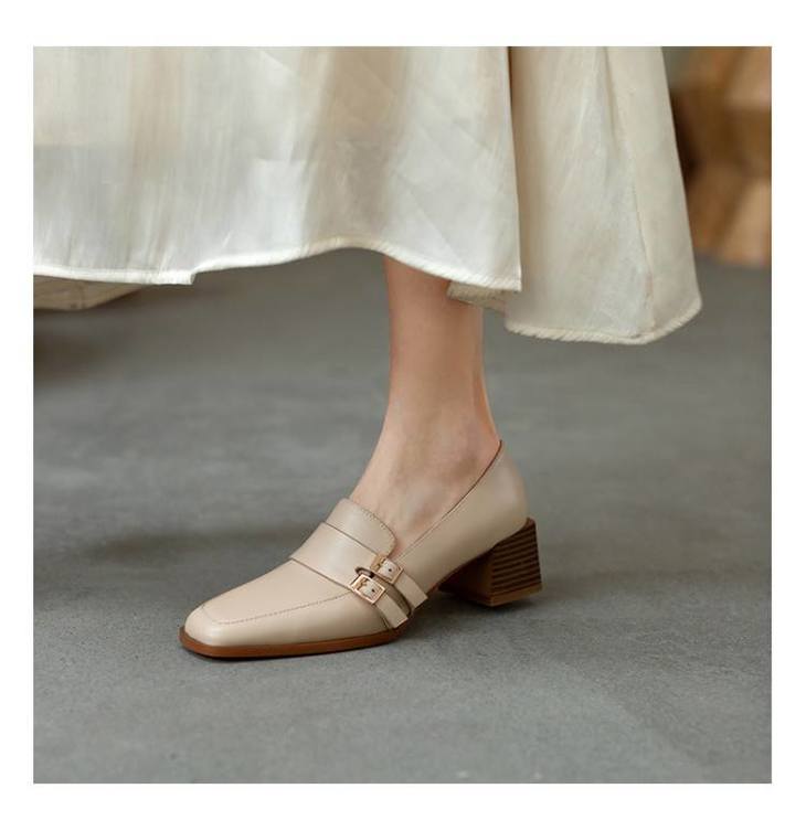 【预售5天】里外全皮粗跟方头皮带扣深口单鞋头层牛皮欧韩复古中跟皮鞋乐福鞋DY&DY1901