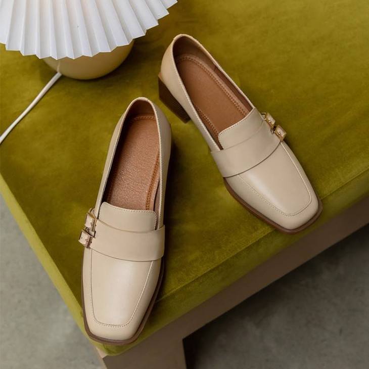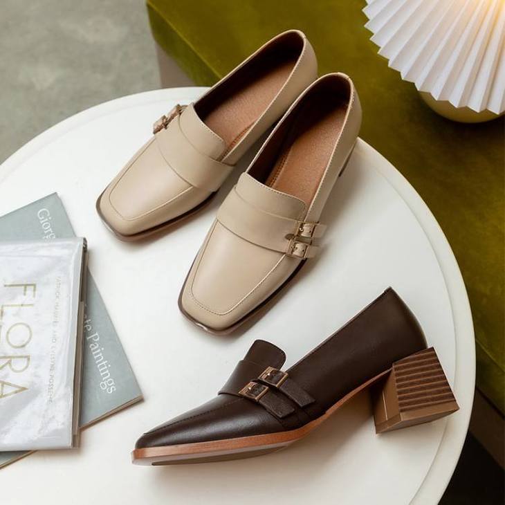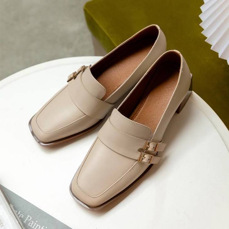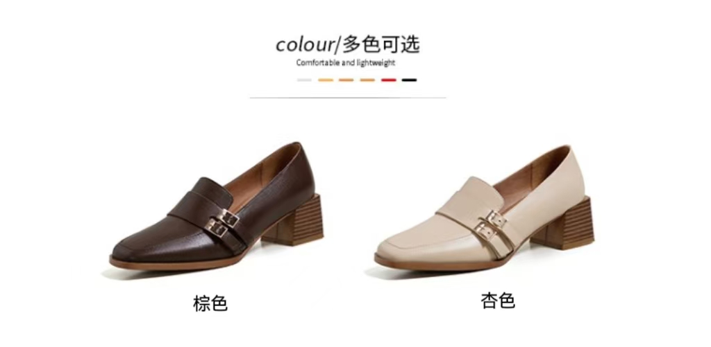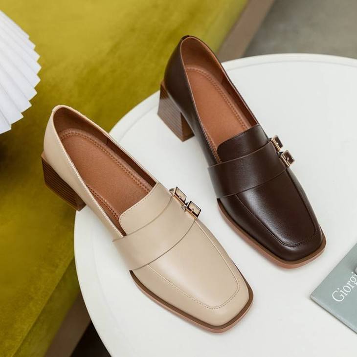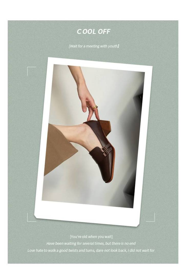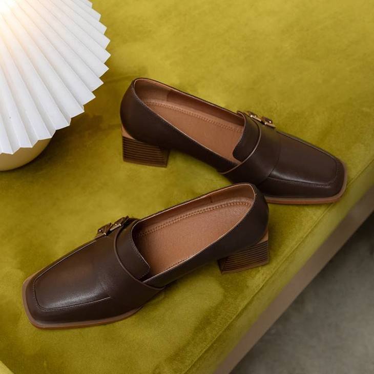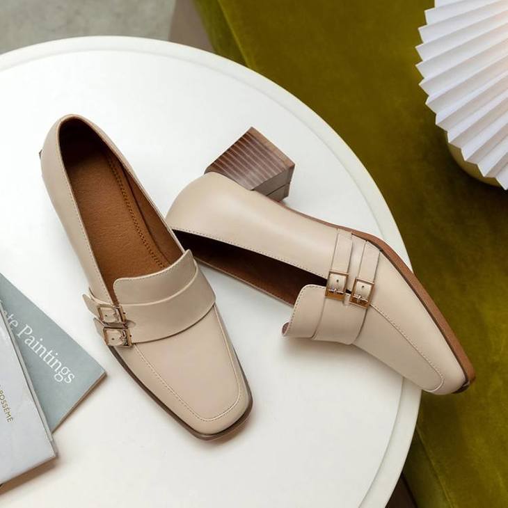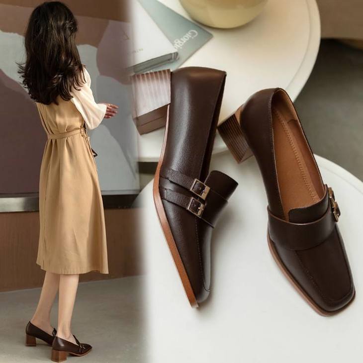 【预售5天】里外全皮粗跟方头皮带扣深口单鞋头层牛皮欧韩复古中跟皮鞋乐福鞋DY&DY1901