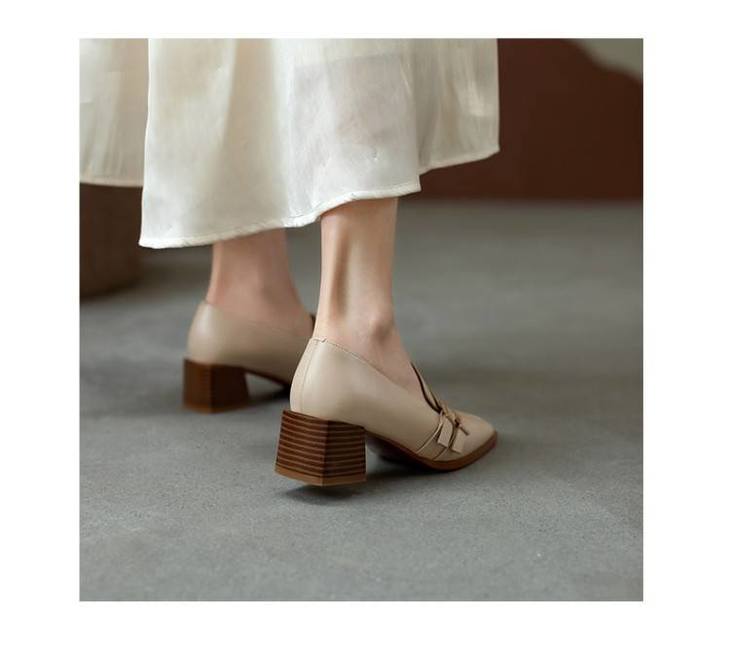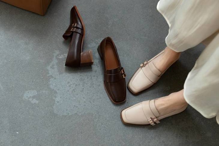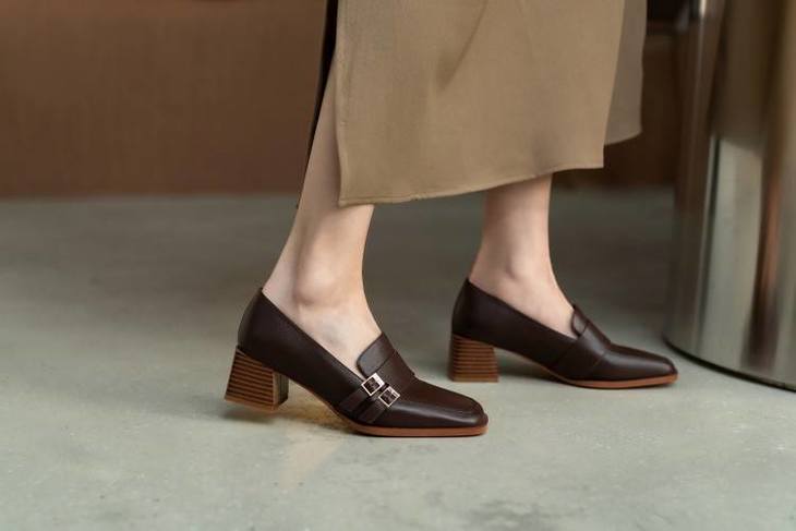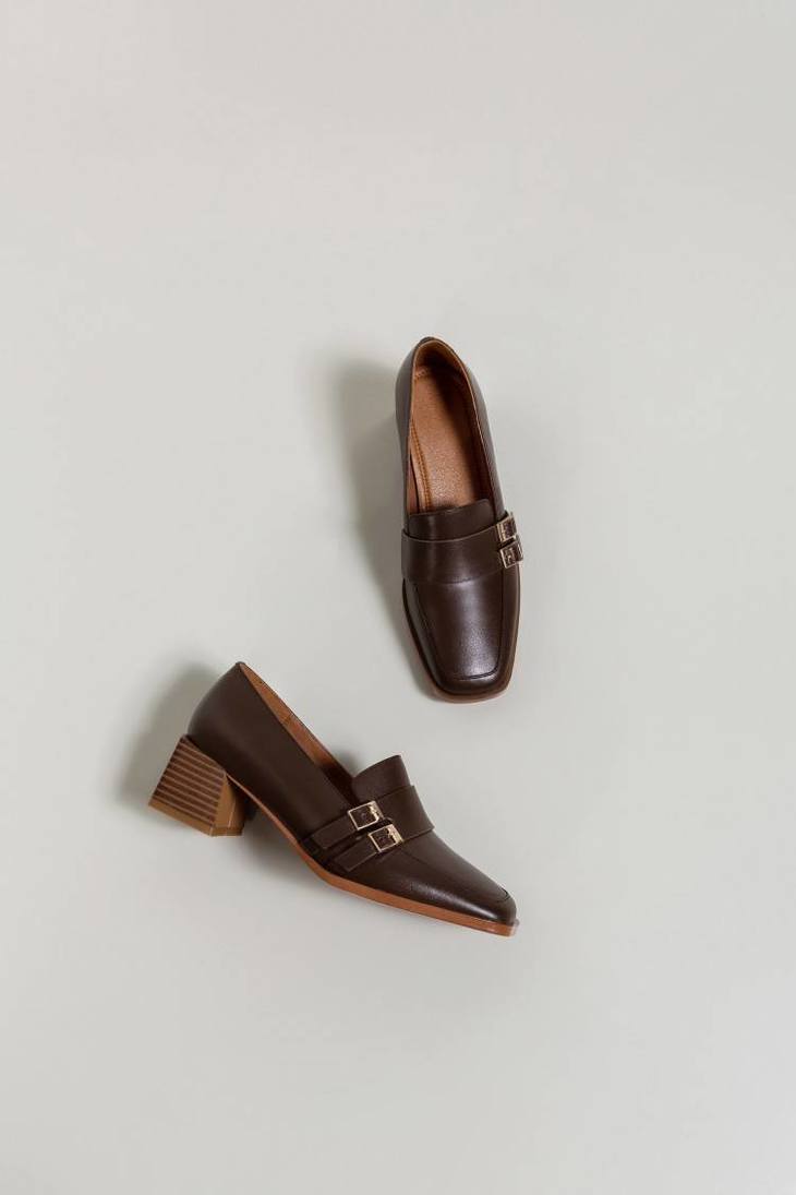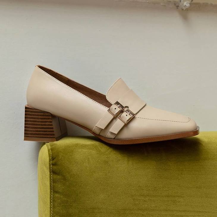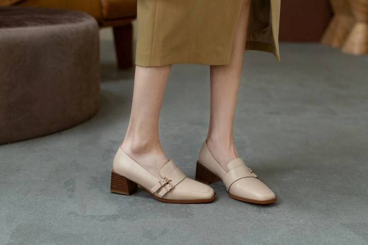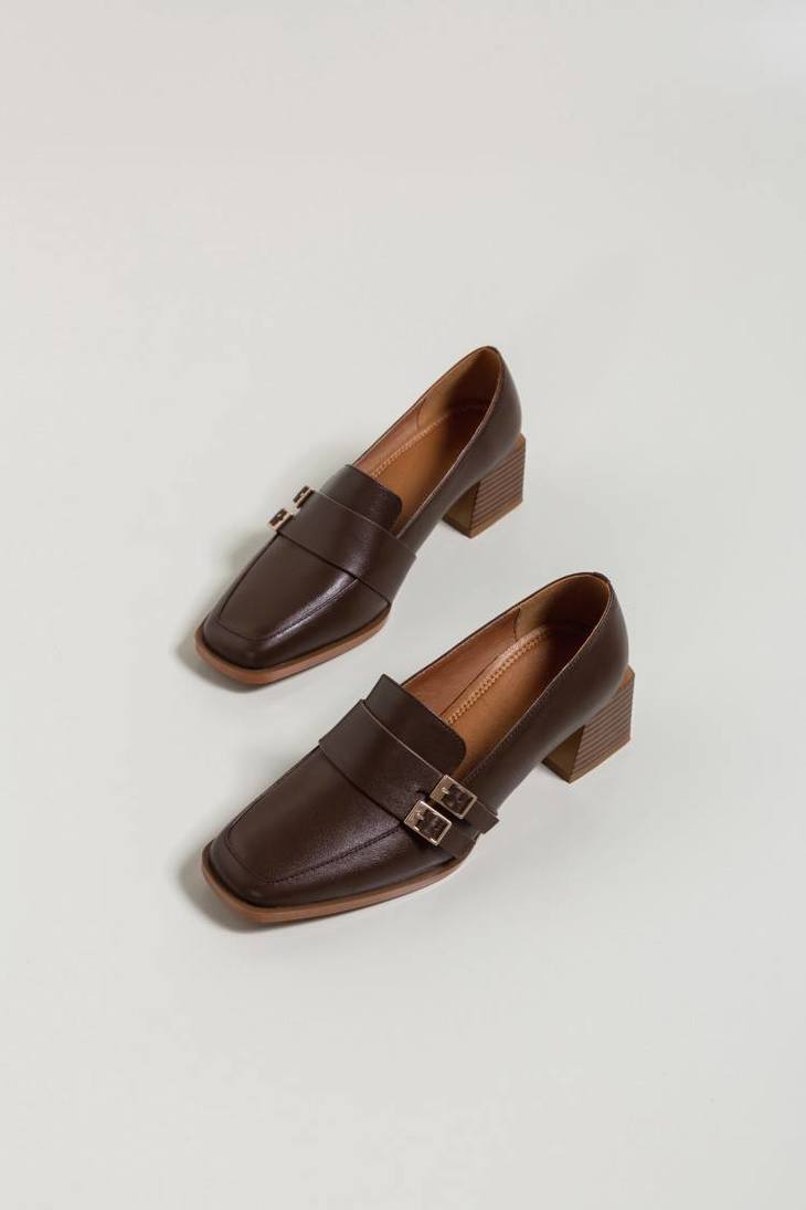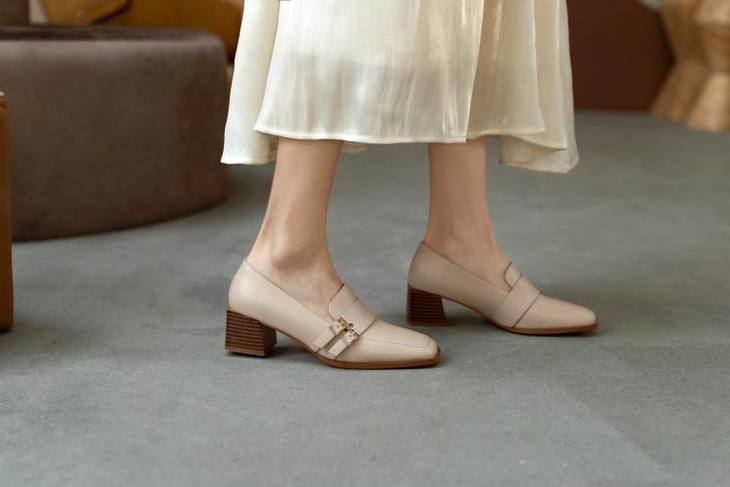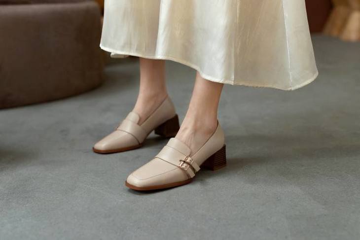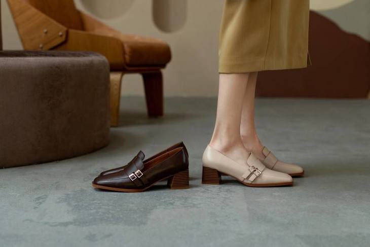 【预售5天】里外全皮粗跟方头皮带扣深口单鞋头层牛皮欧韩复古中跟皮鞋乐福鞋DY&DY1901
