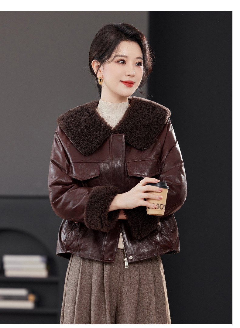 TC 23575鹅绒休闲皮衣韩版皮夹克上衣宽松外套绵羊皮 商品图4