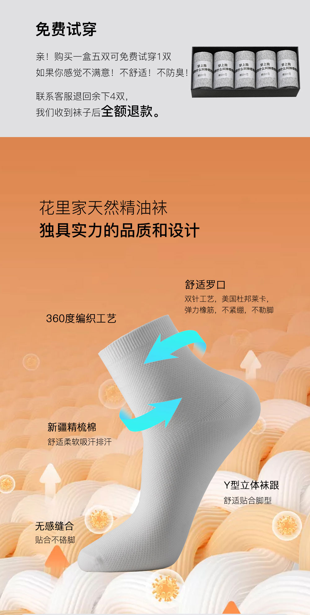 花里家精油袜中筒袜柔软亲肤吸湿透气优质棉纤维高弹罗口防勒袜口穿上没有束缚和压迫感