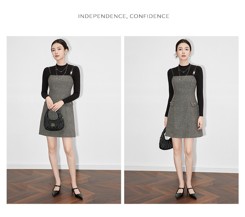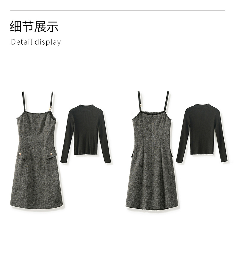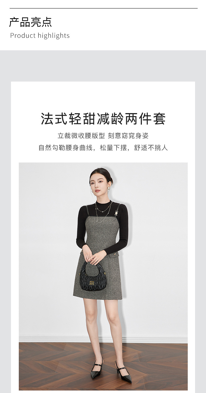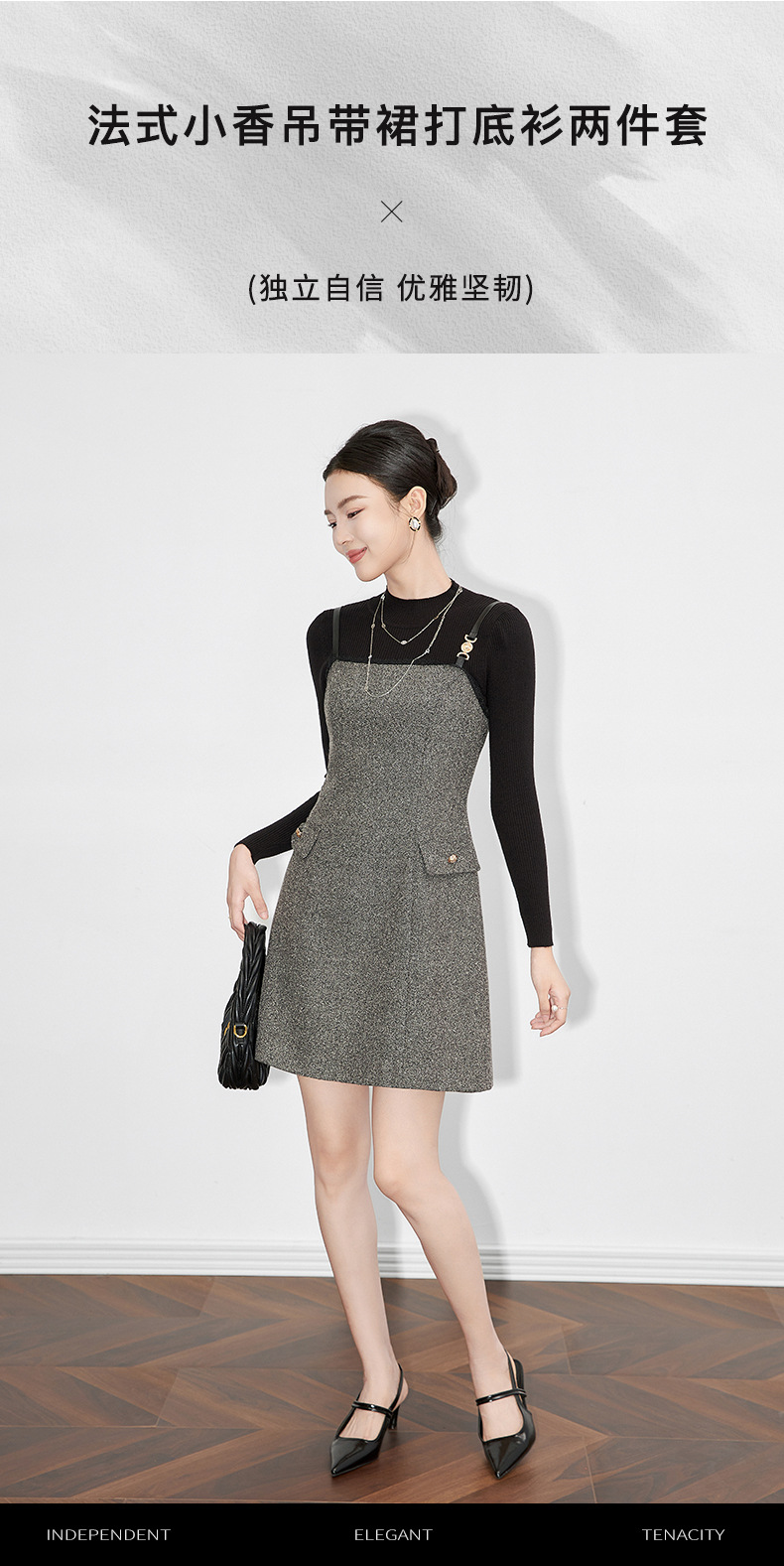 【高货wl】全新升级【铂金会员358/天猫479/差价121】(13748) 洛诗琳秋季名媛小香风套装针织打底吊带毛呢裙两件套