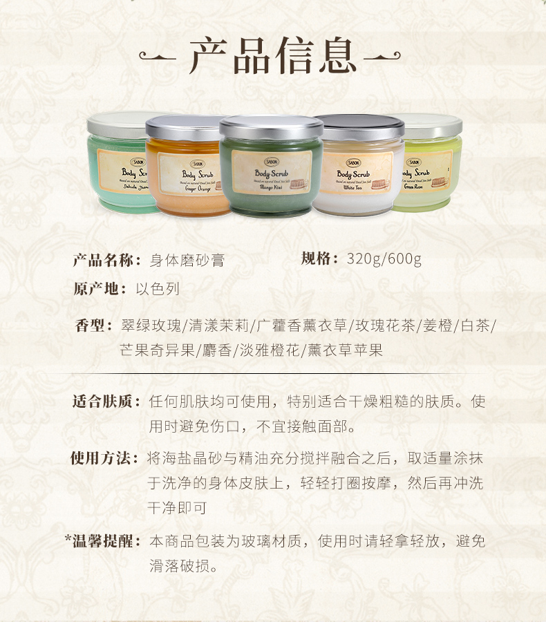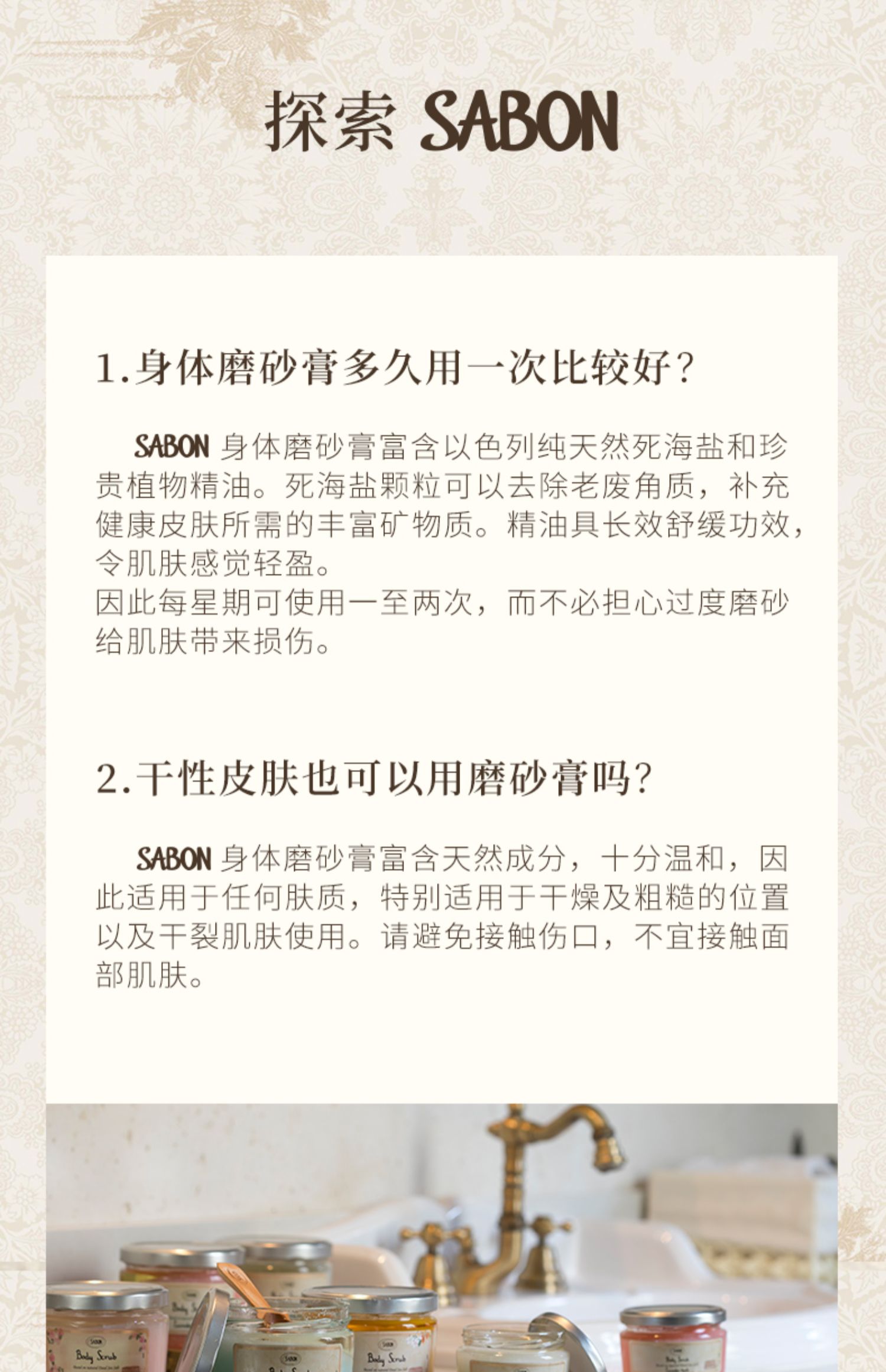 SABON身体磨砂膏600g以色列进口去角质身体嫩白
