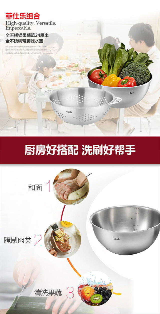 德国菲仕乐全不锈钢果蔬篮滤水篮两件组24CM