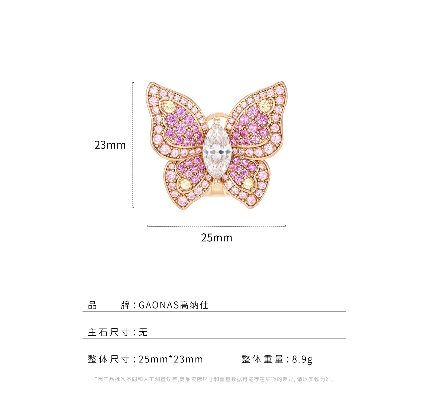 GAONAS 粉蝶仙 时尚粉色蝴蝶耳环11734EP