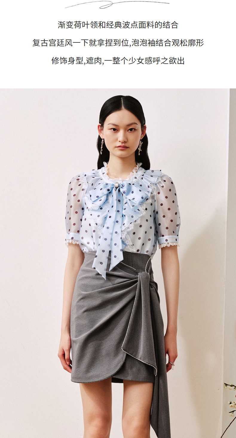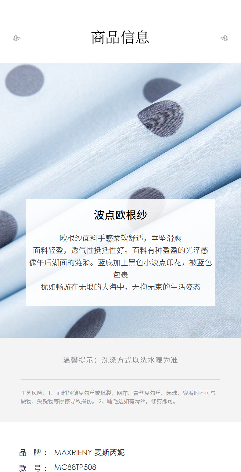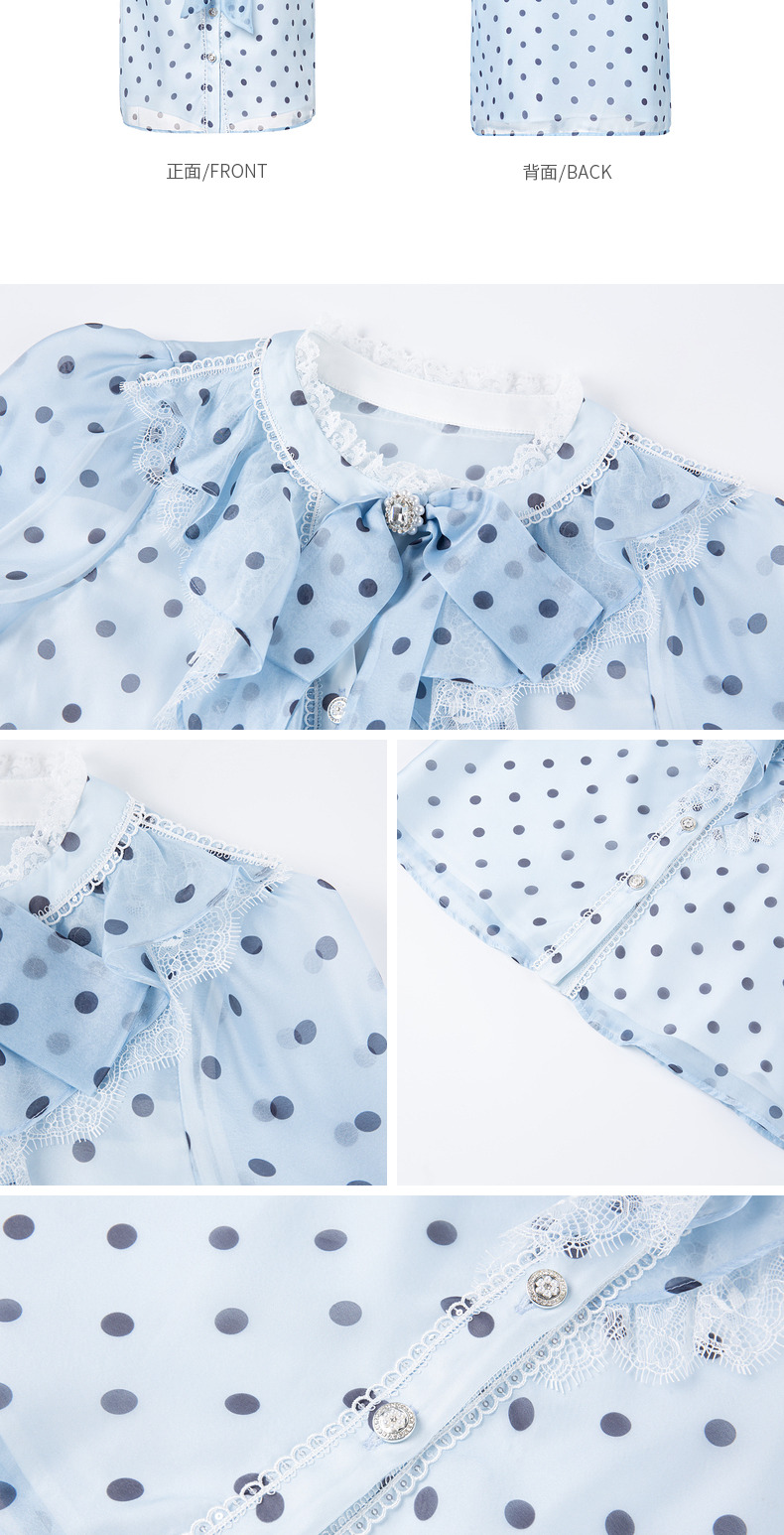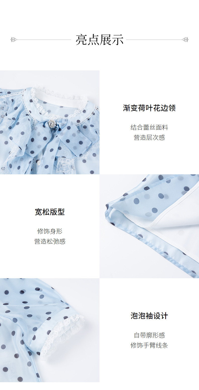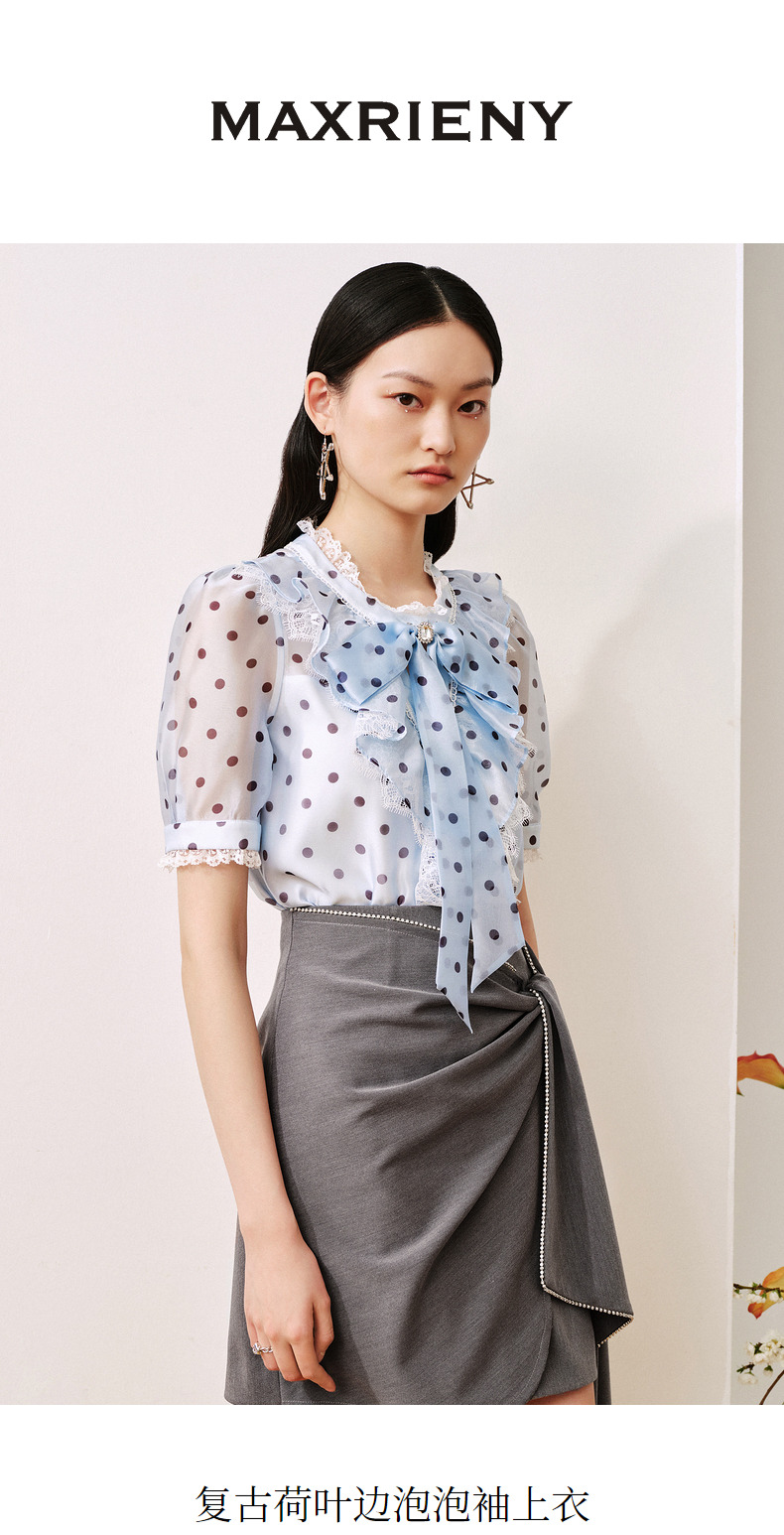 MAXRIENY复古宫廷风蓝波点雪纺衫通勤泡泡袖上衣(货号:MC88TP508)