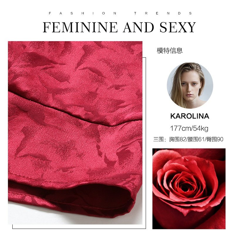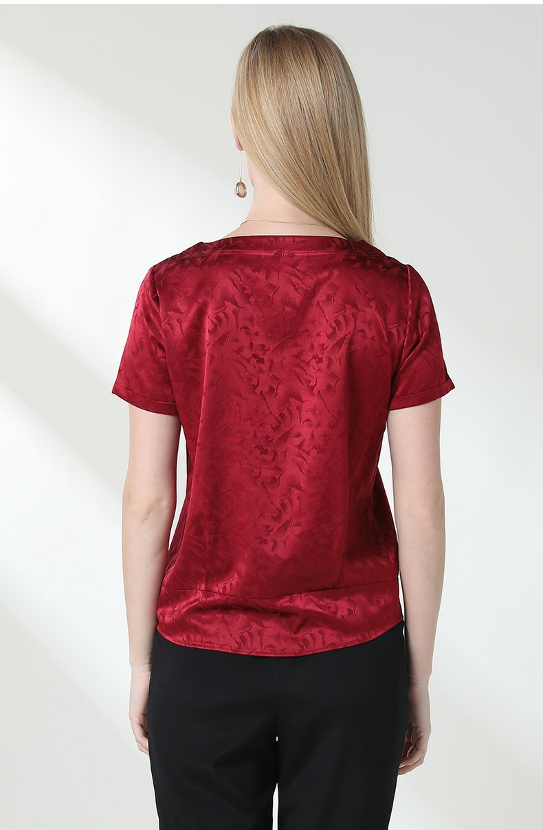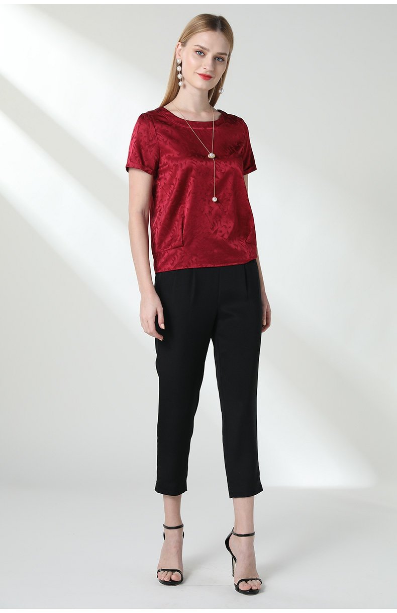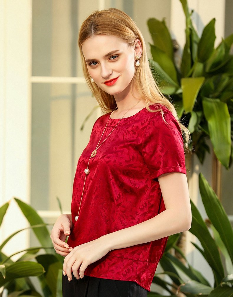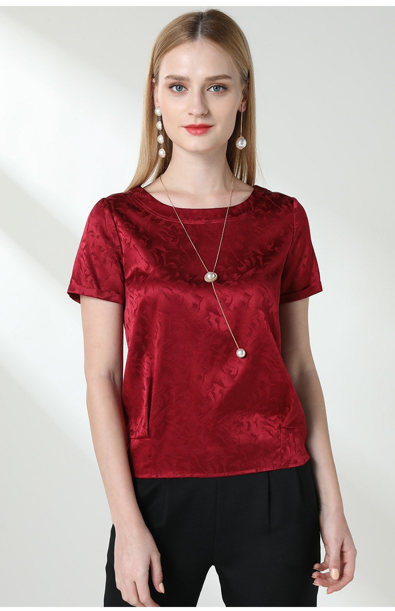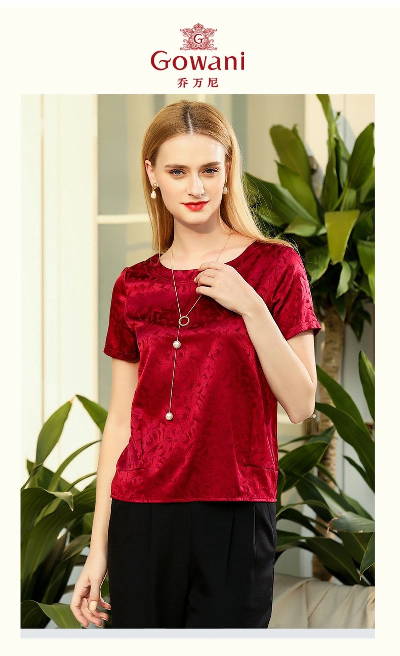 乔万尼夏季桑蚕丝衬衫女圆领时尚宽松简约红色短袖上衣潮EN2C620