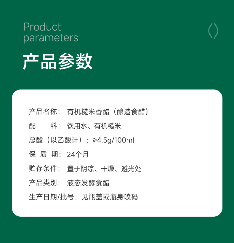 应物有机糙米香醋 液态发酵家用食用米醋纯粮酿造500ml/瓶