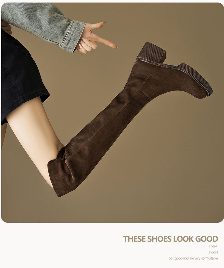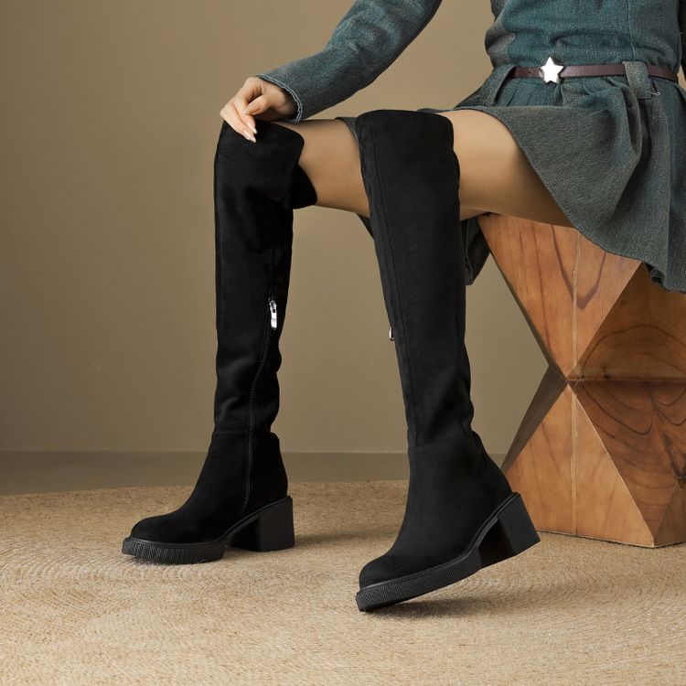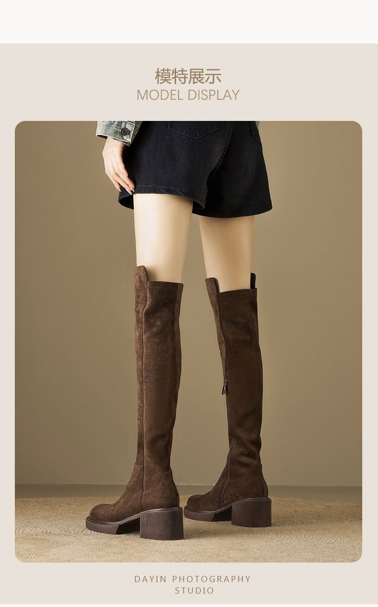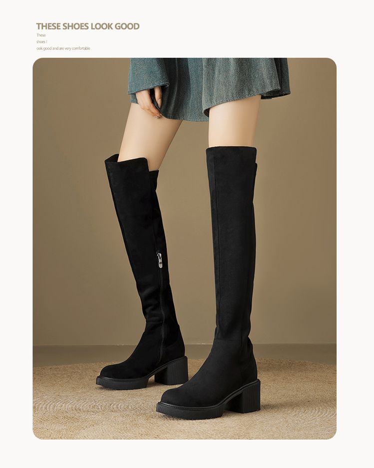 【预售7天】过膝靴女秋冬显瘦新款瘦瘦弹力靴子厚底欧美设计感长靴HB&9984