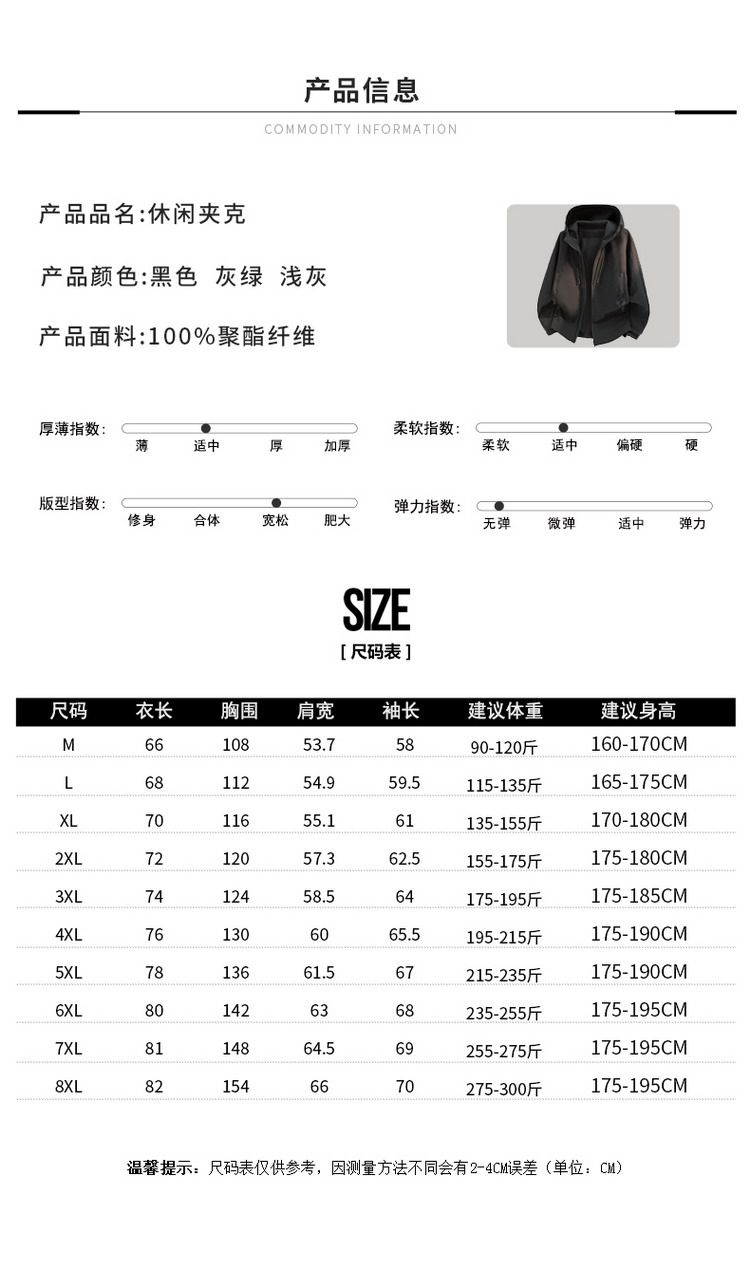 【DSL】大依优型大码男装春秋夹克外套加肥加大码休闲运动上衣夹克外套