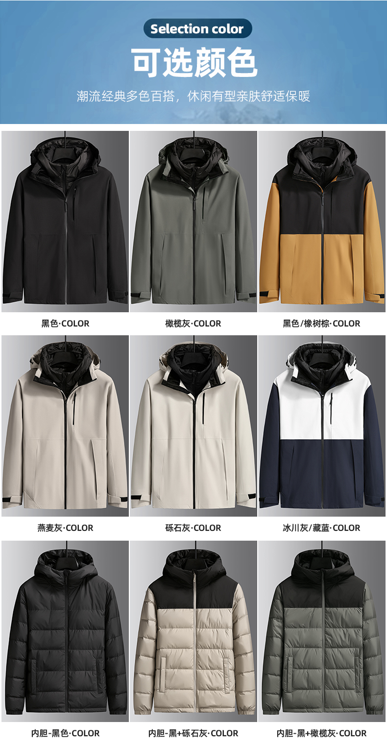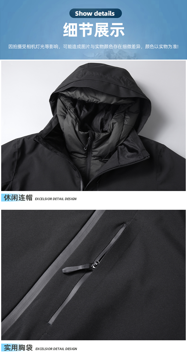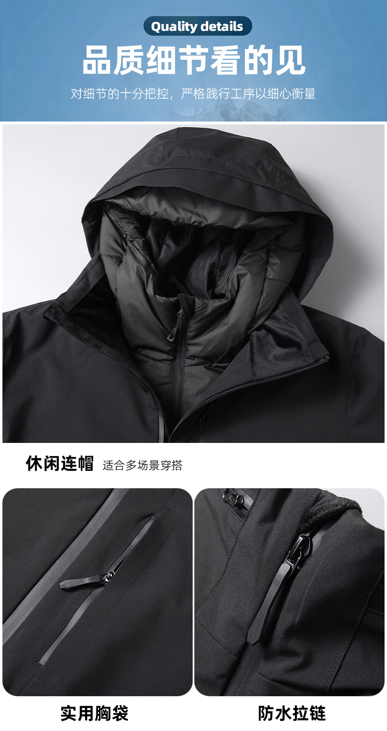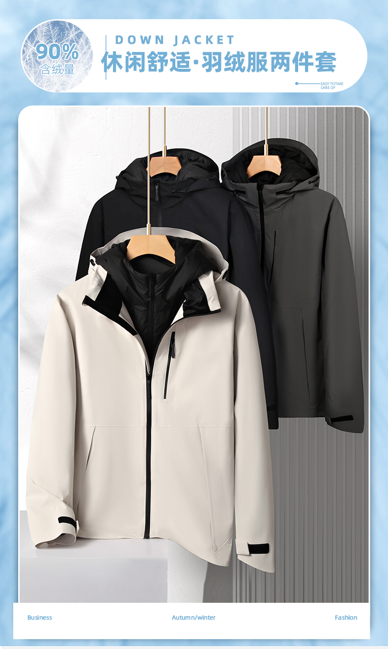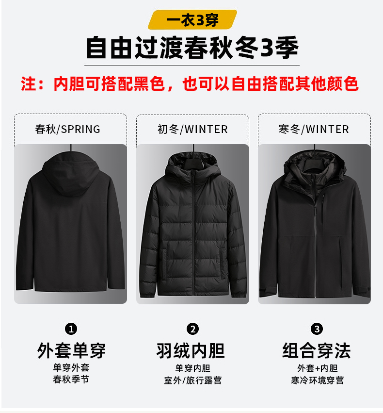 【三合一】【90白鸭绒】【新款DK】大依优型大码连帽羽绒服两件套外套90白鸭绒羽绒男宽松加肥加大码上衣男士胖子休闲商务