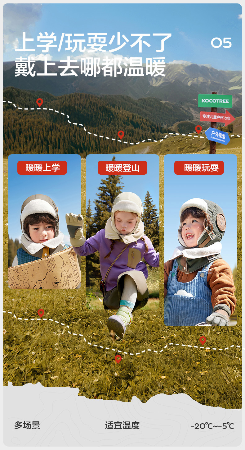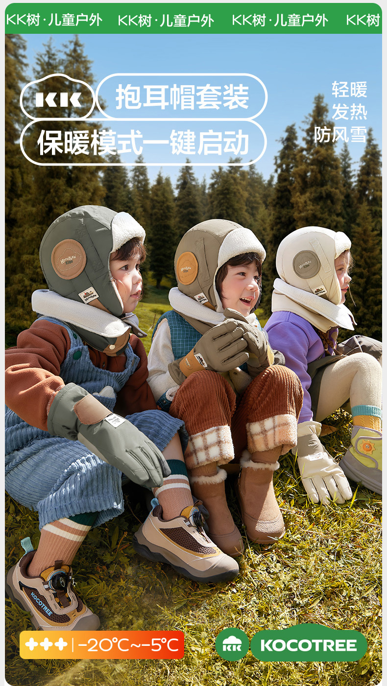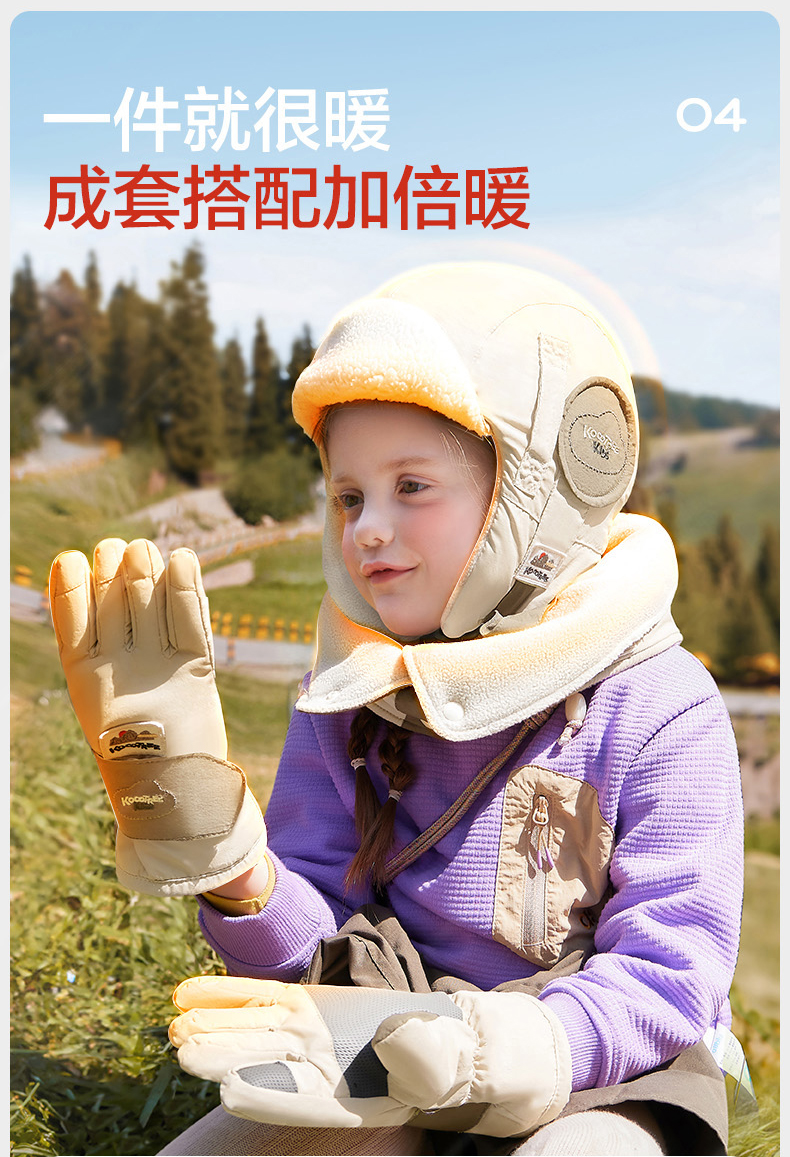 【KK树】云朵领航员抱耳帽+五指手套+围脖三件套