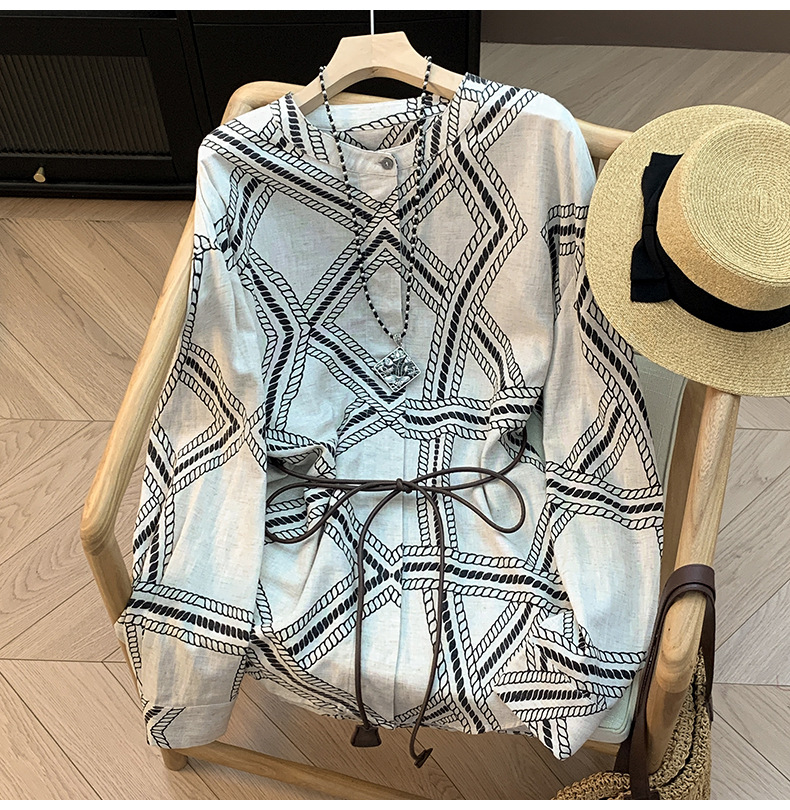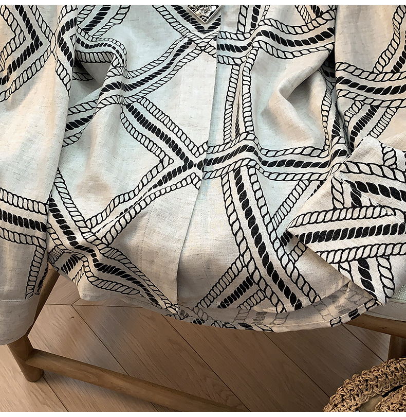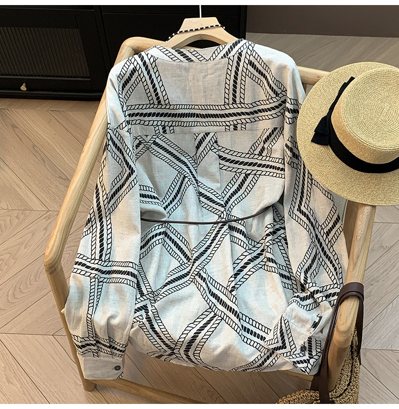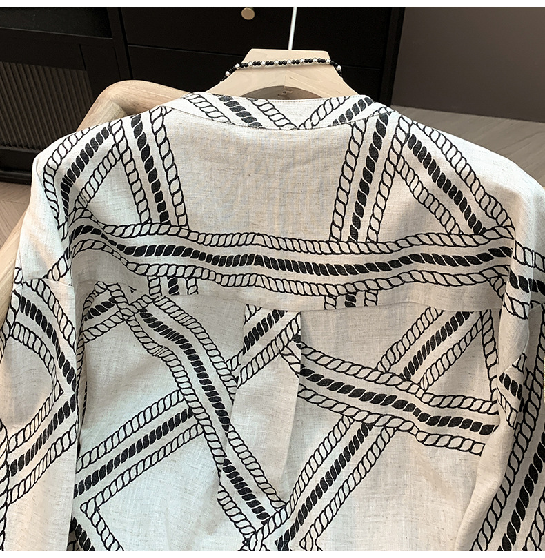 C070-29112025个性浪漫感/随机绳草纹图腾重磅天丝百搭廓形外套式衬衫女