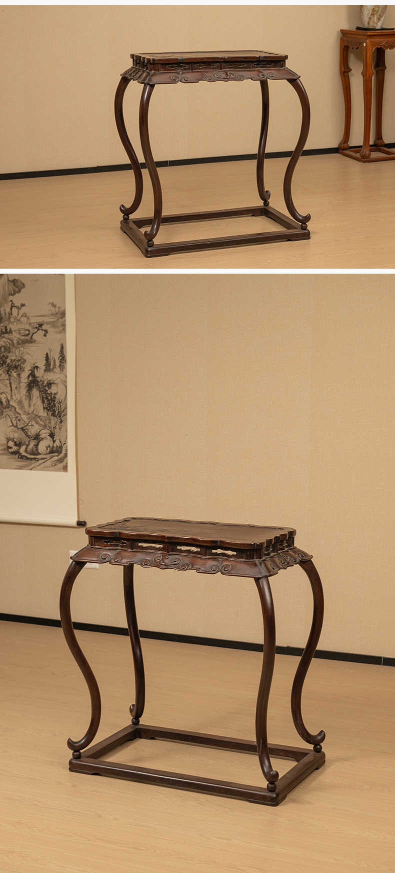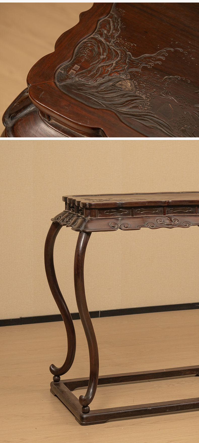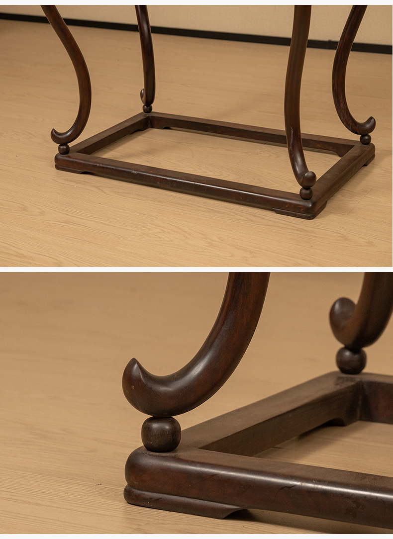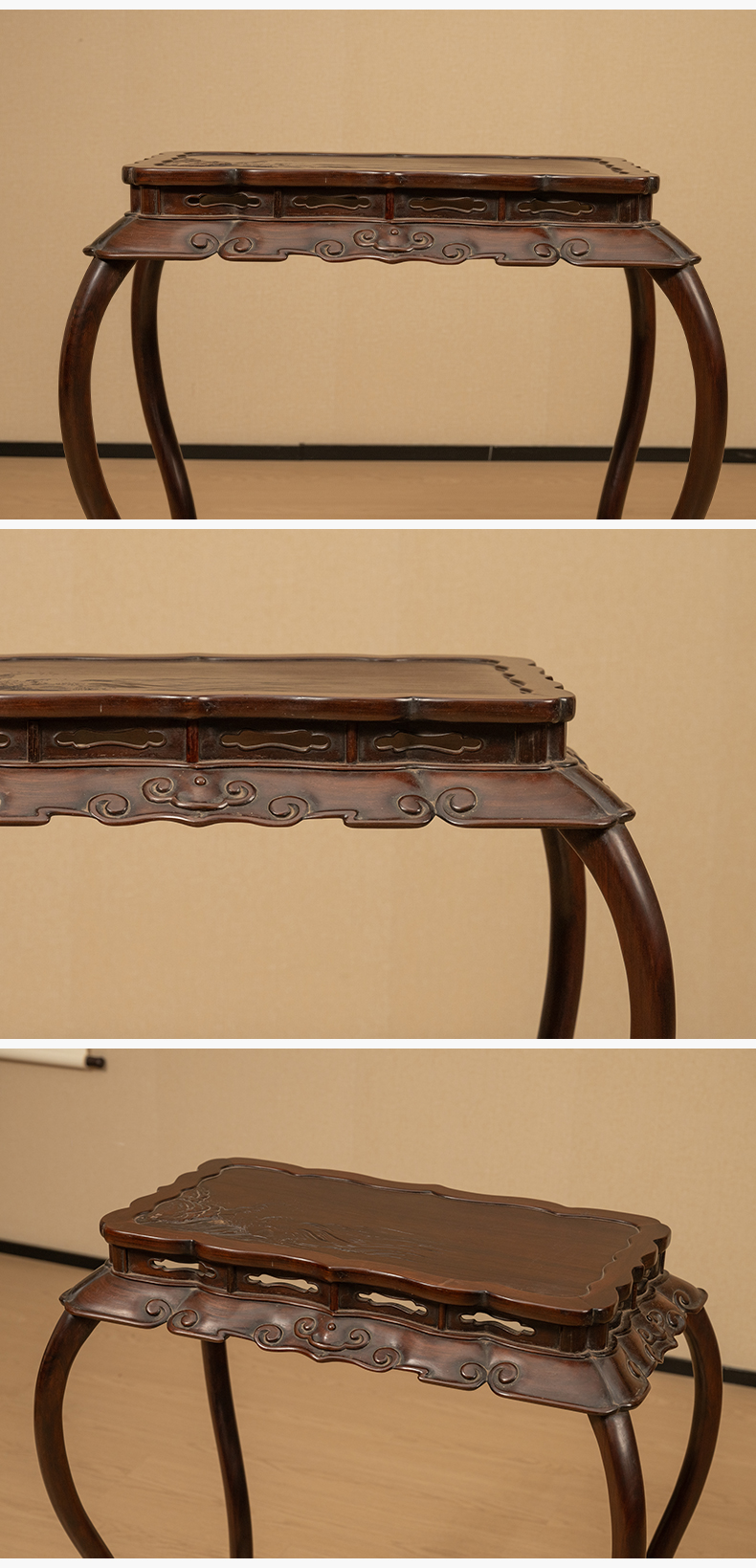 清 红木浮雕礁石海浪云纹三弯腿带托泥香几