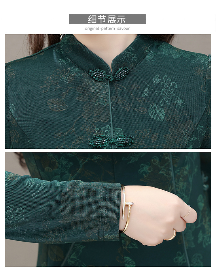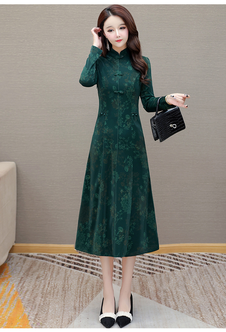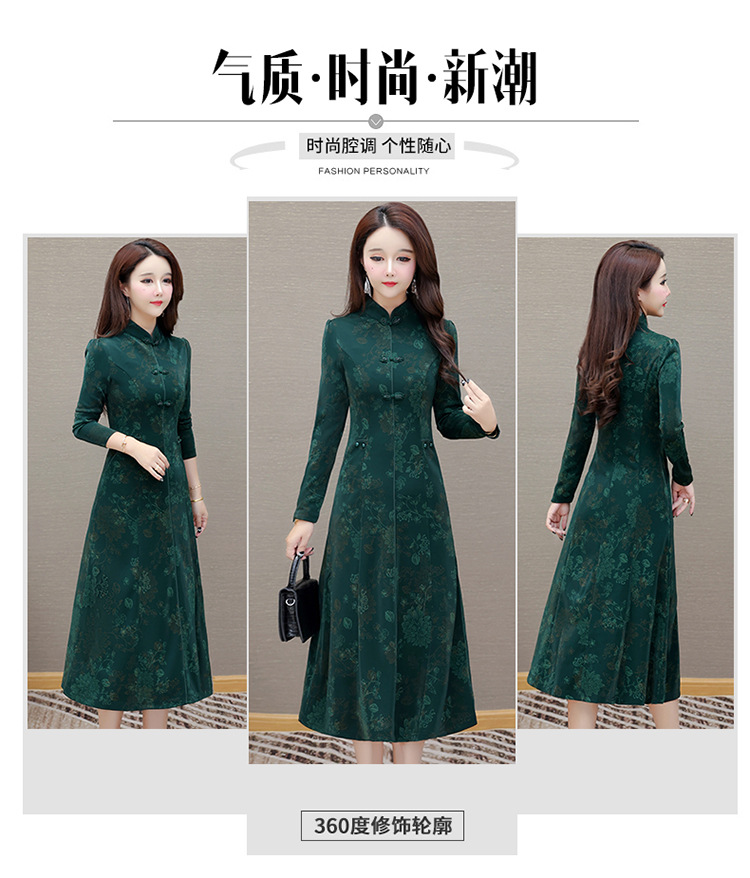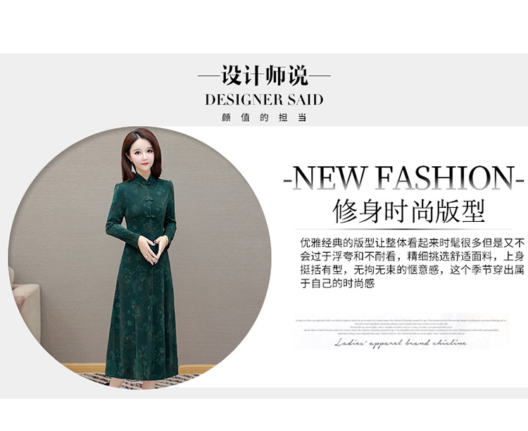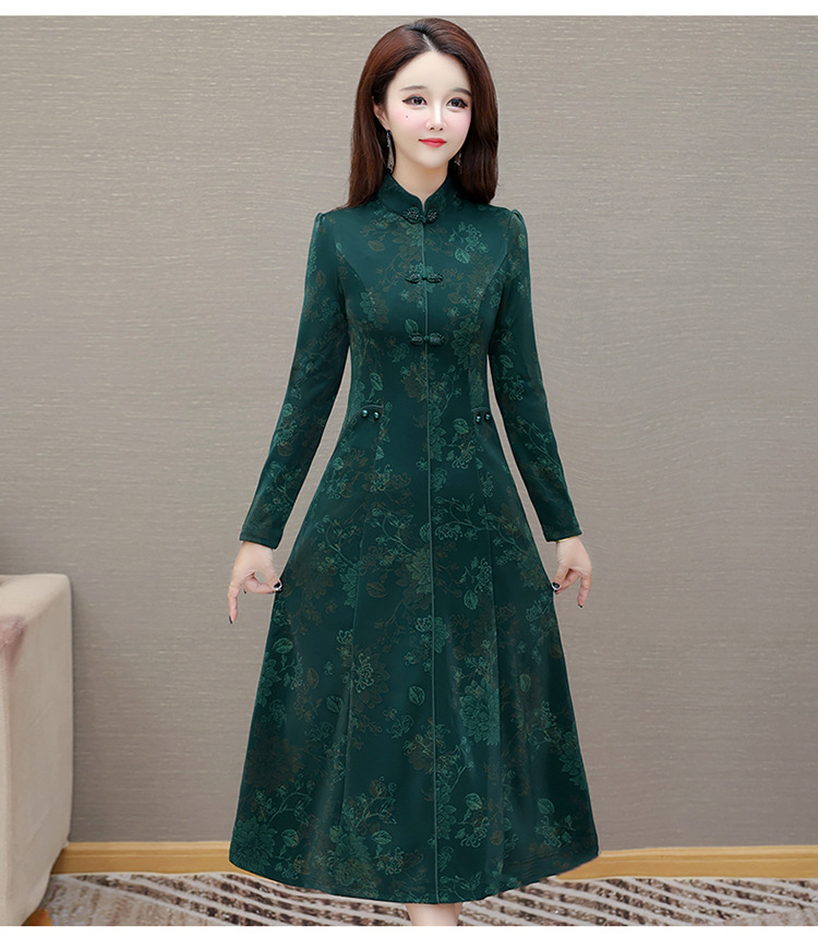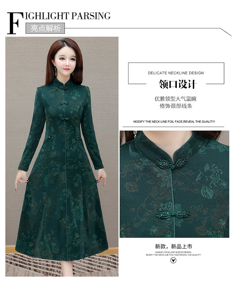 QYMLRX-1315C521-Y中老年妈妈印花大码连衣裙女新款2025年秋季气质修身改良旗袍裙子