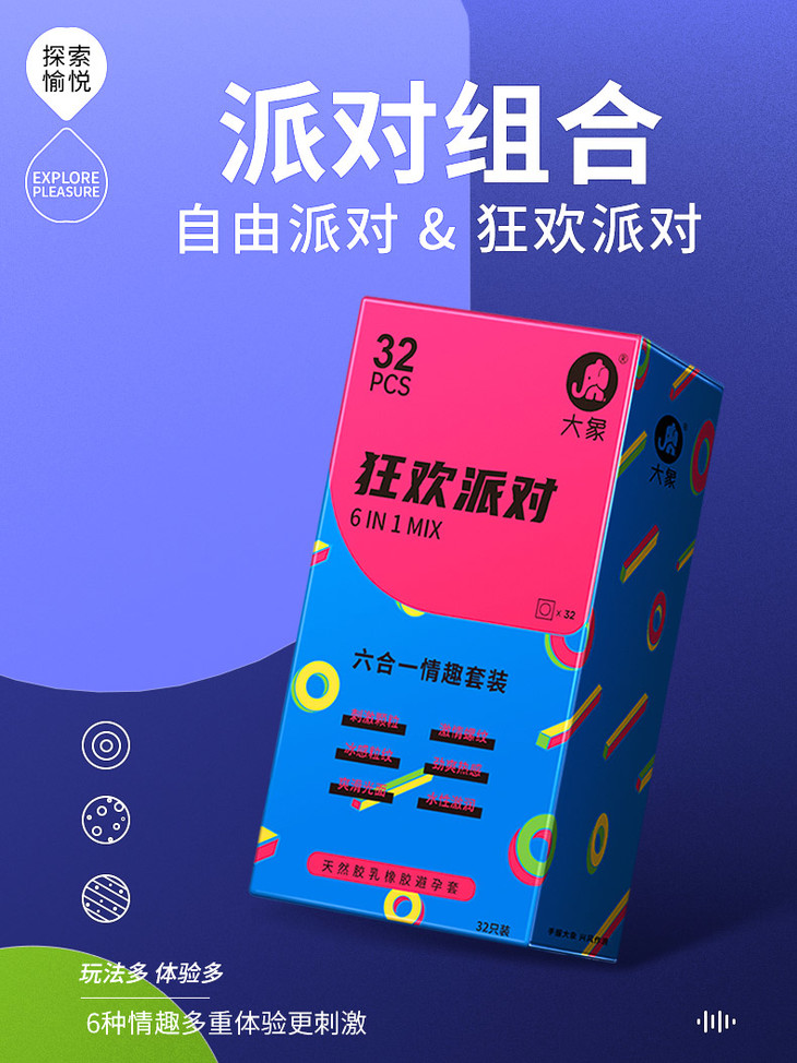 【超值套组】大象量贩入门情趣水润*套狂欢派对32自由派对24激爽颗粒*三合一14只润薄*四合一24只激情冰火四合一24只情趣避孕套组合