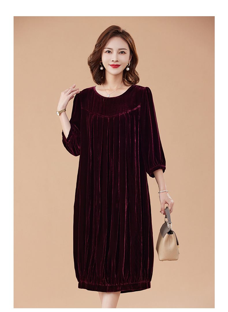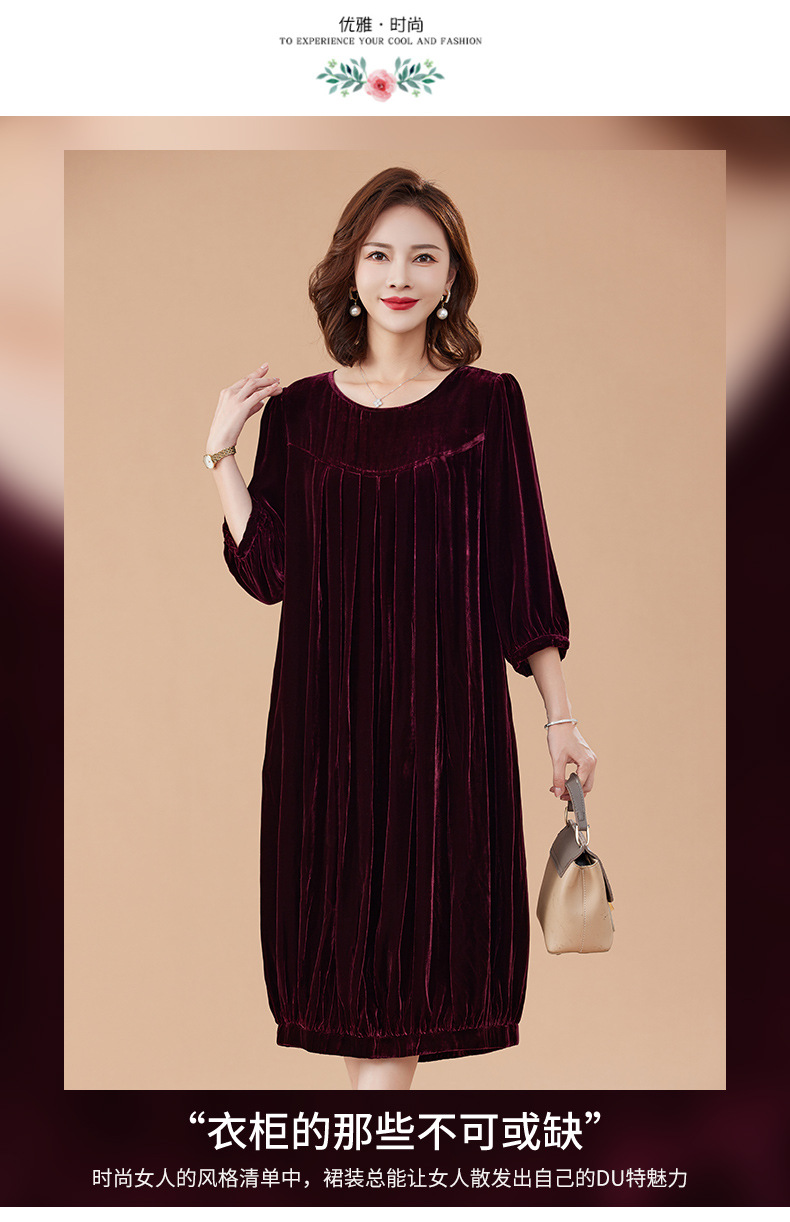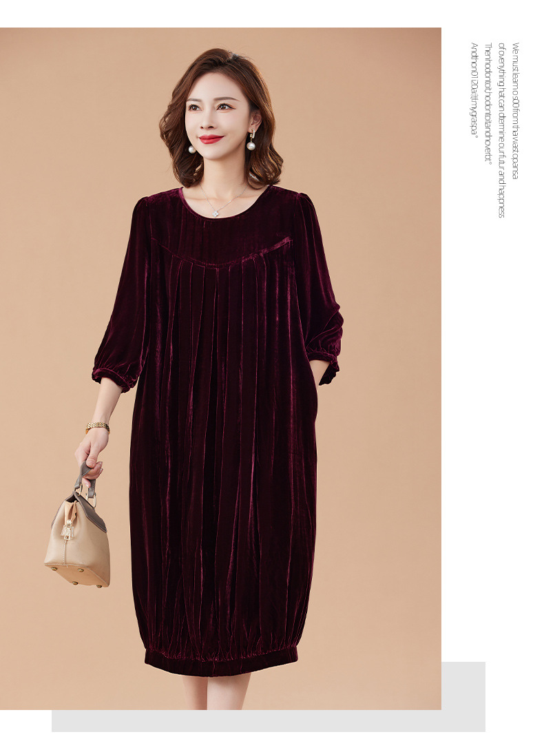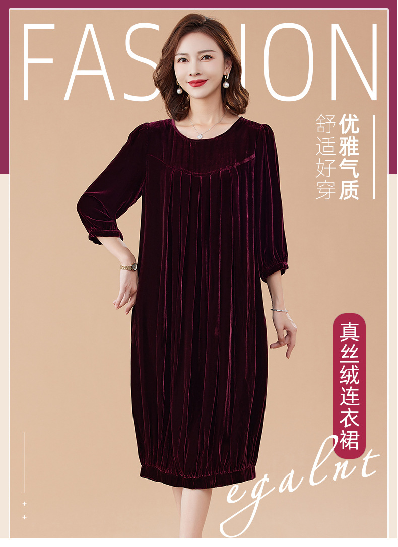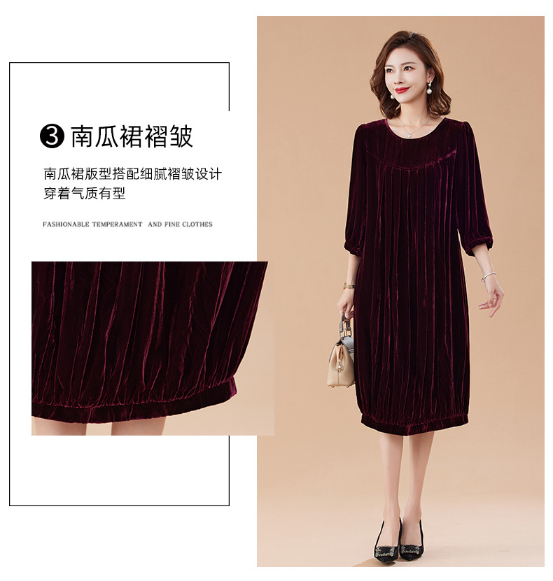 KQ-210337真丝绒连衣裙秋季2023新款洋气裙子大码女宽松气质褶皱南瓜裙