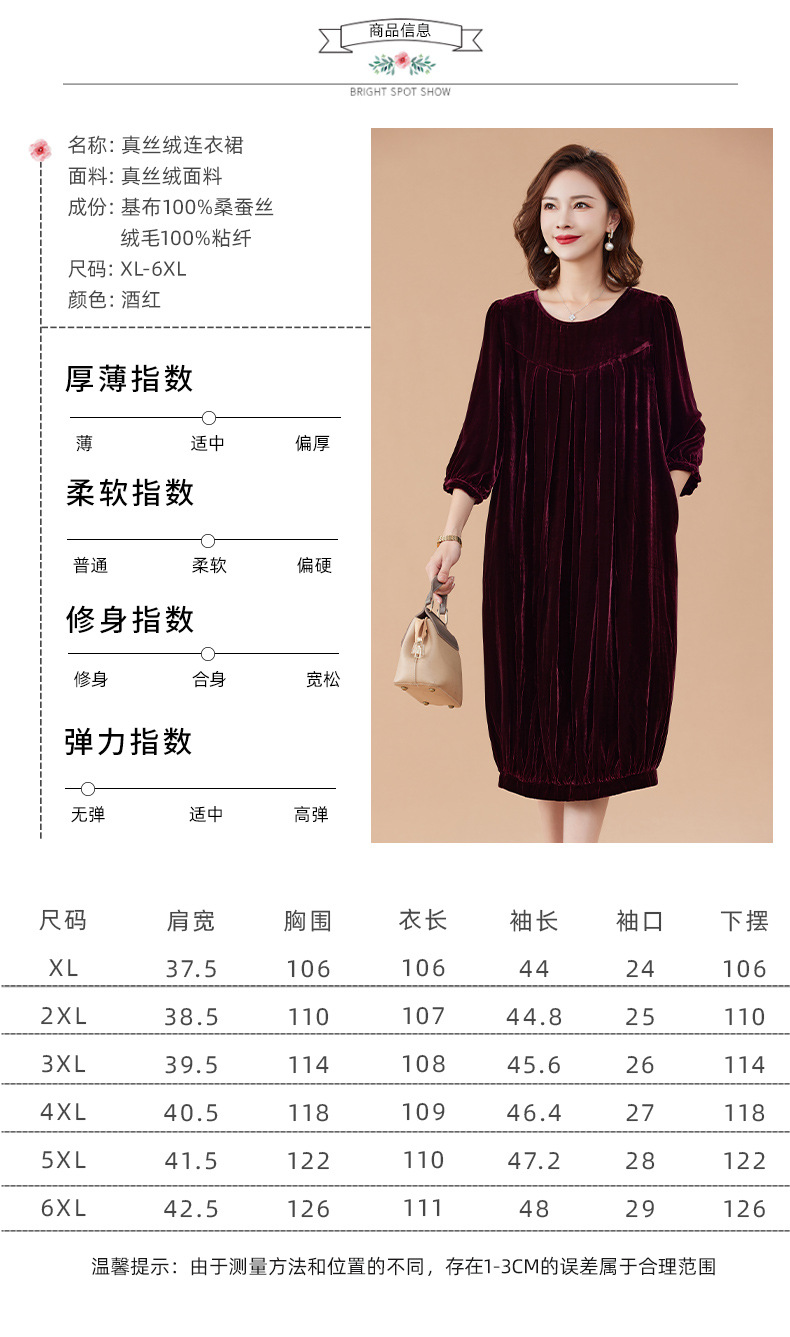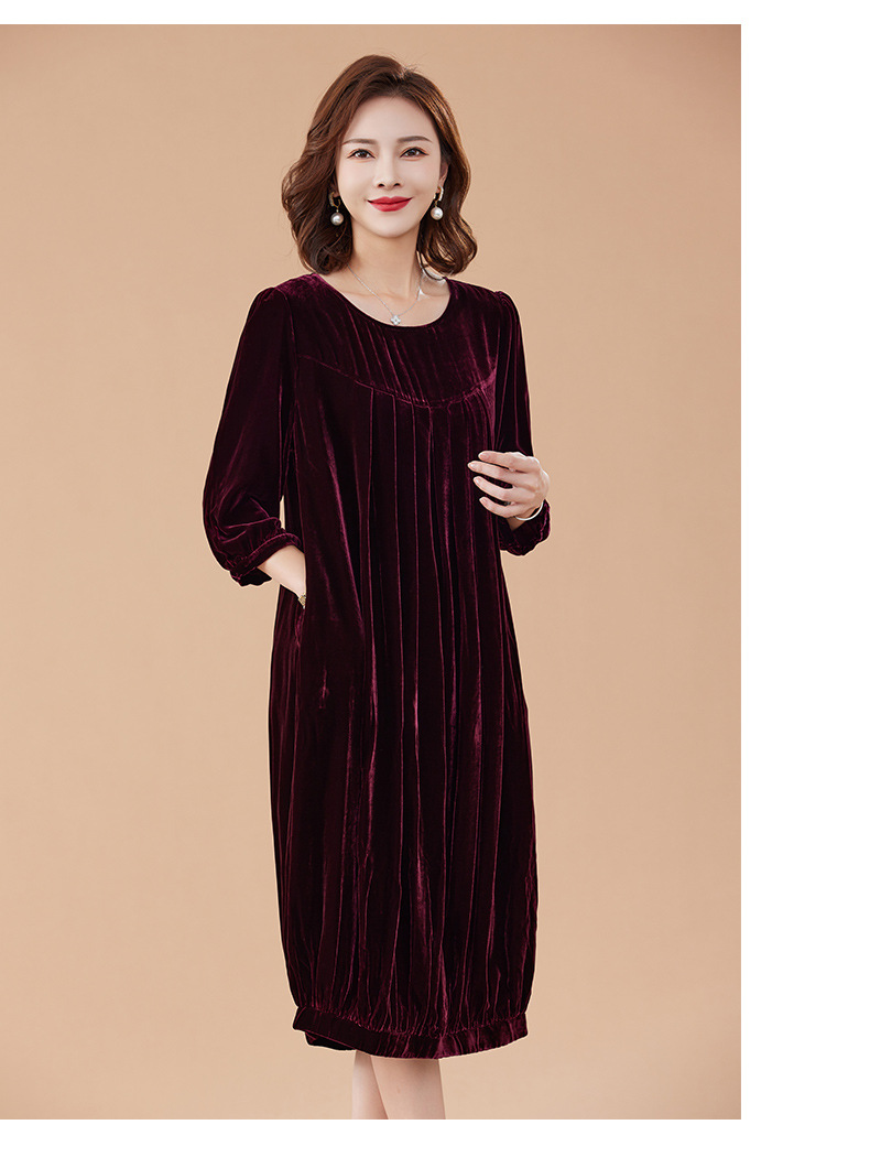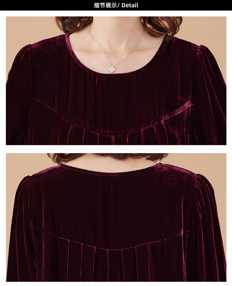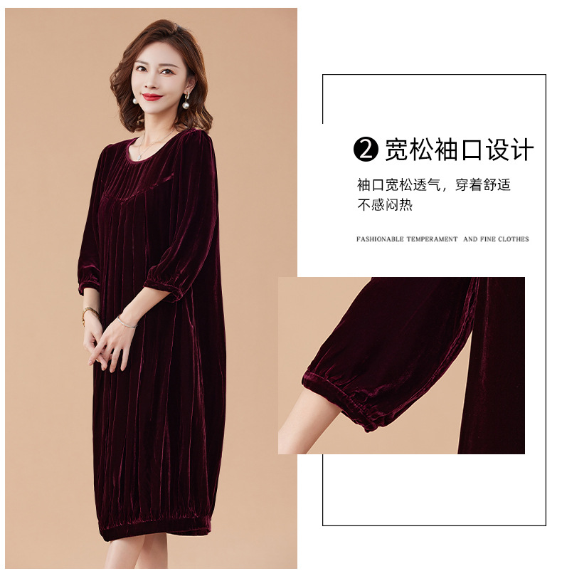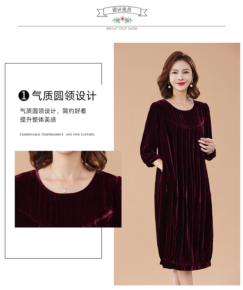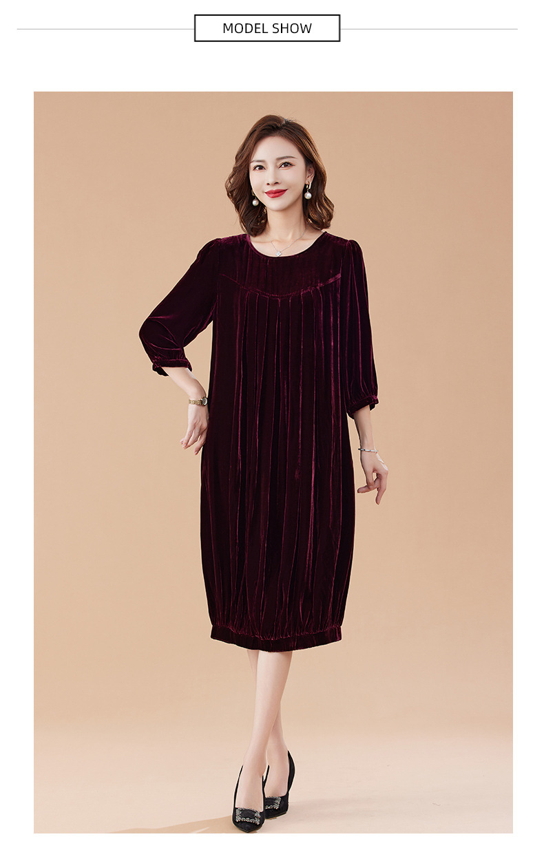 KQ-210337真丝绒连衣裙秋季2023新款洋气裙子大码女宽松气质褶皱南瓜裙
