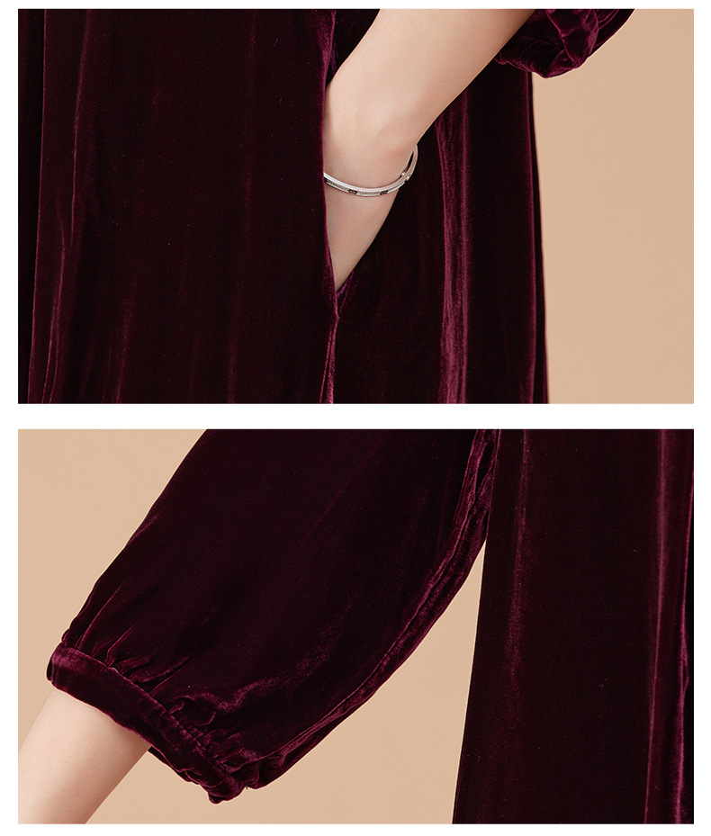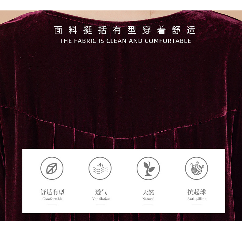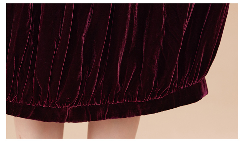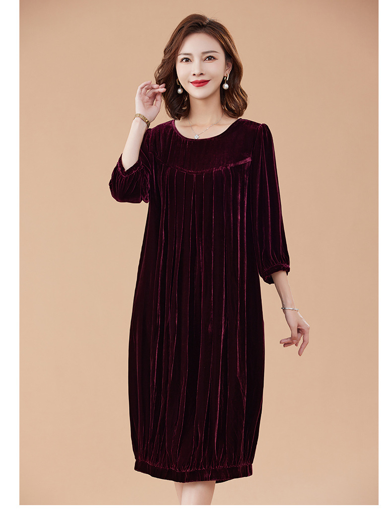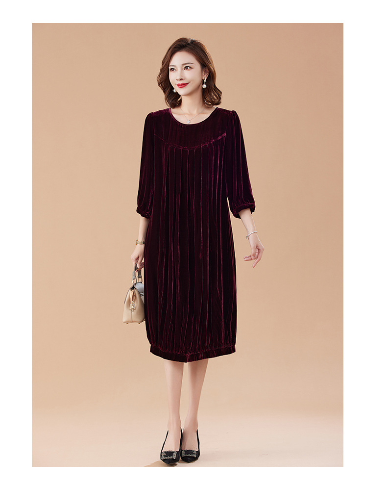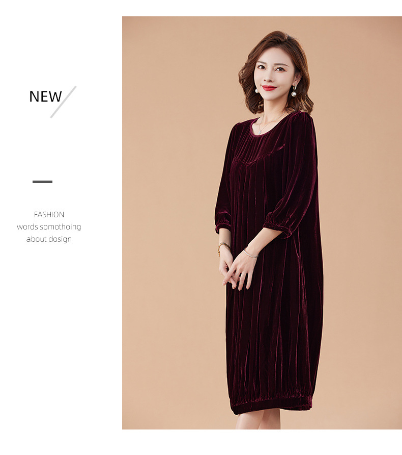 KQ-210337真丝绒连衣裙秋季2023新款洋气裙子大码女宽松气质褶皱南瓜裙
