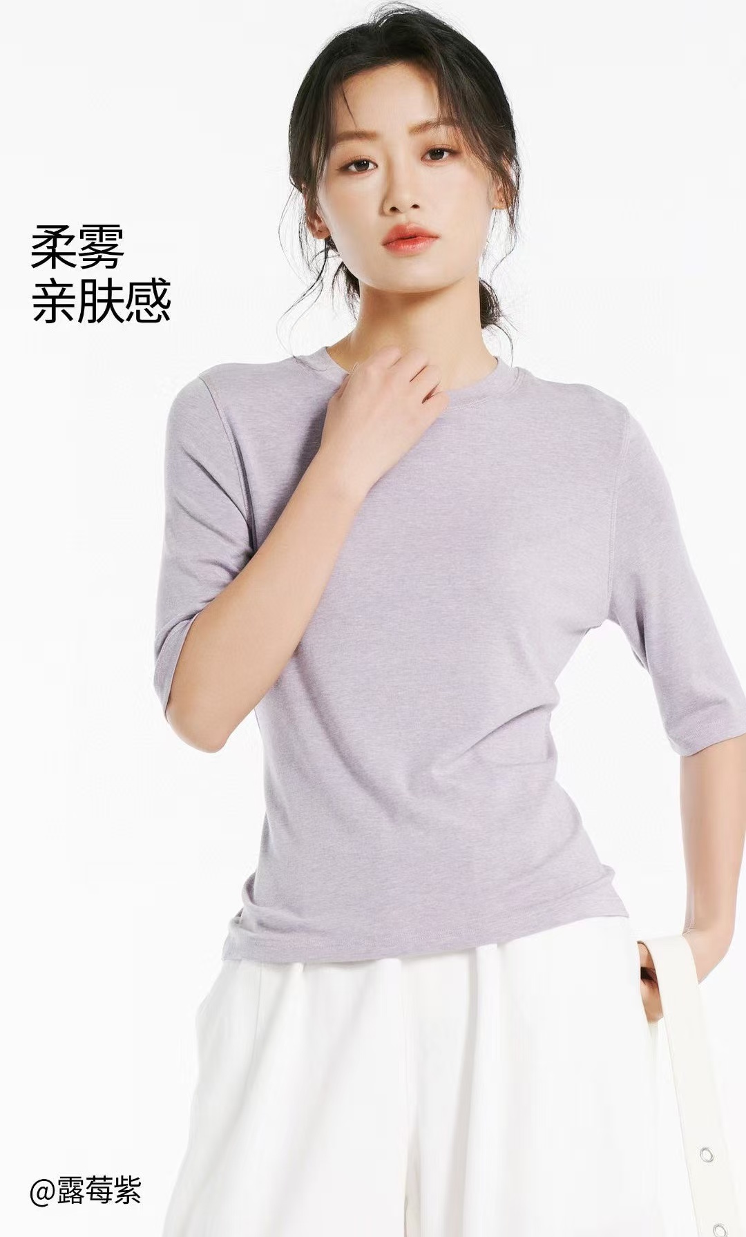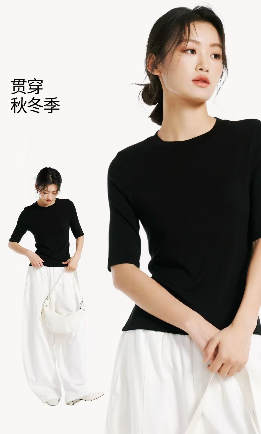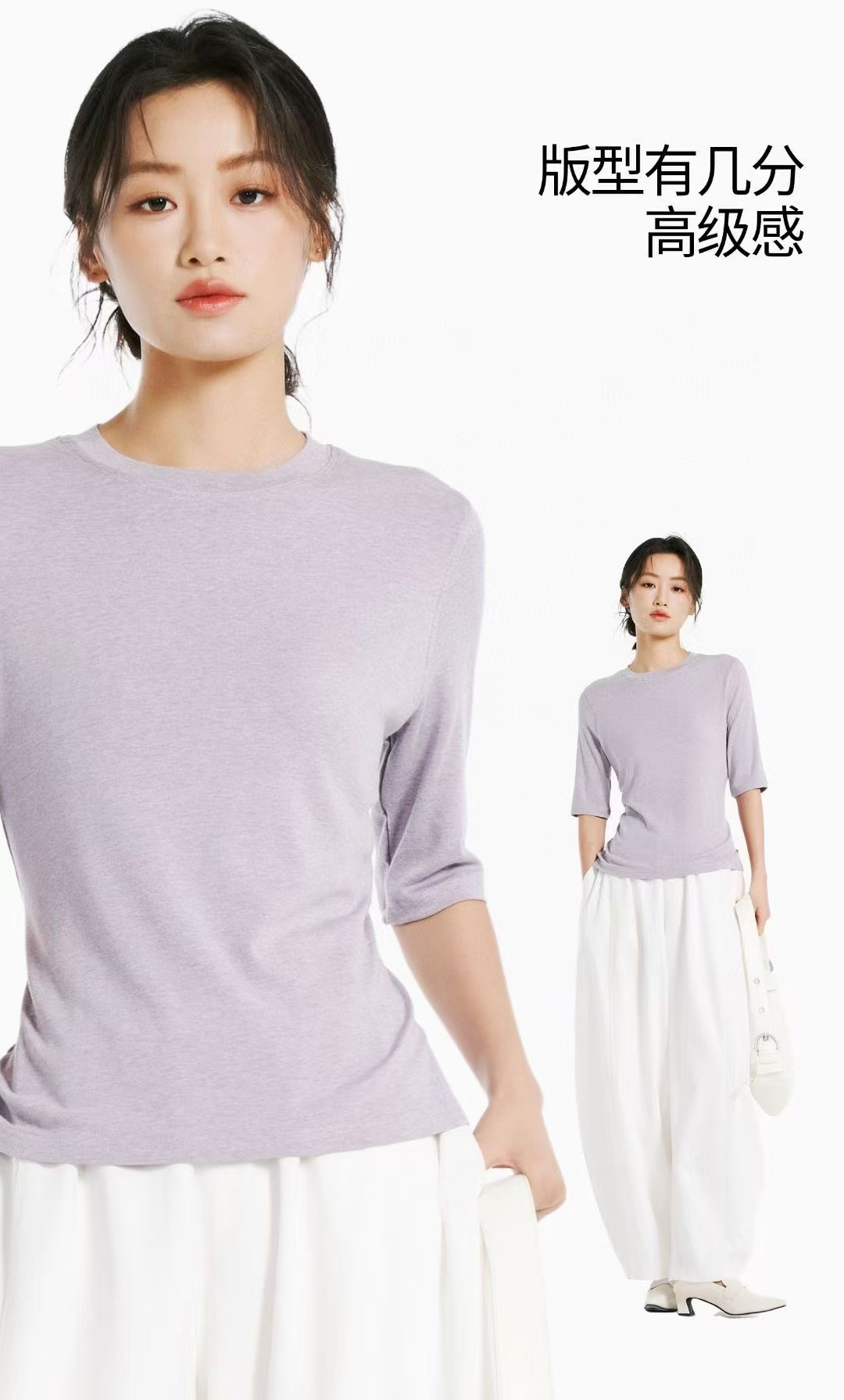 【品名】LS竹纤维女士时尚简约五分袖打底衫3053
