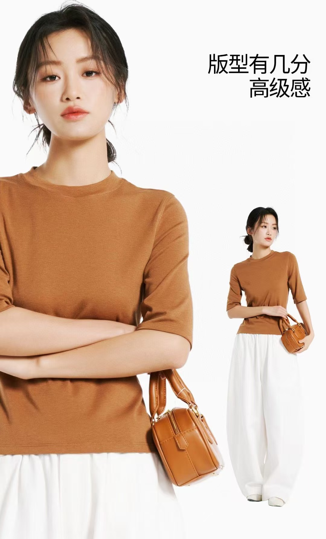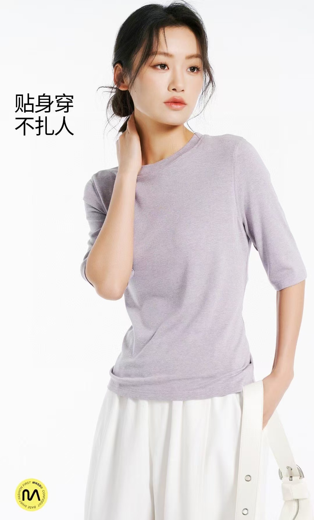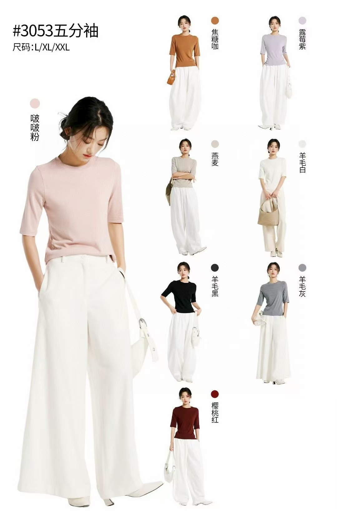【品名】LS竹纤维女士时尚简约五分袖打底衫3053