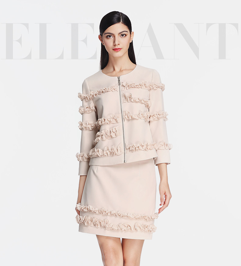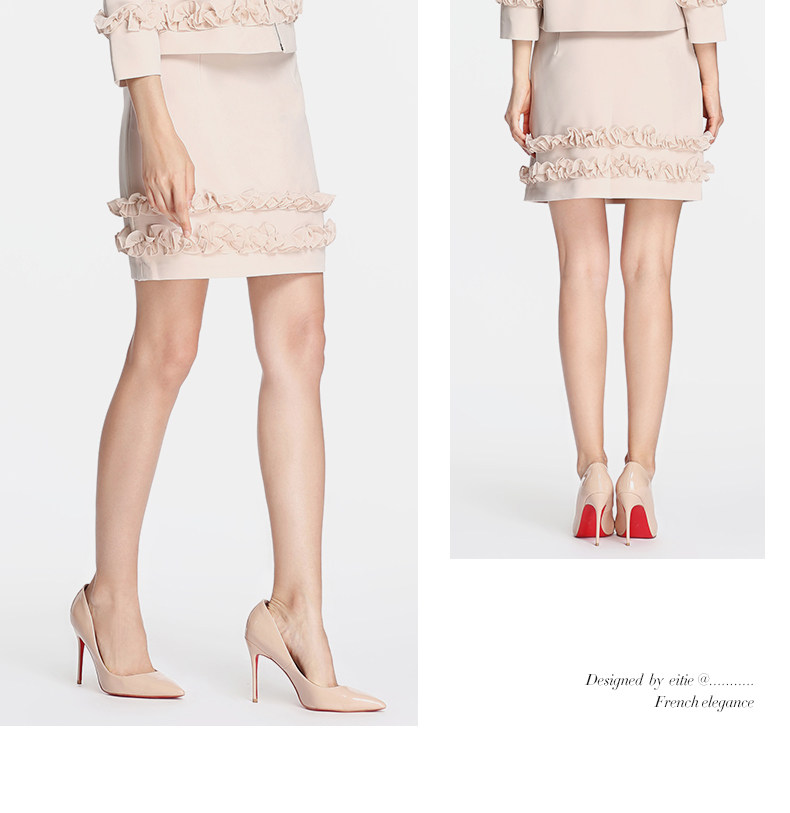 EITIE爱特爱女装春夏木耳花边包臀甜美半身裙铅笔裙短裙5506204