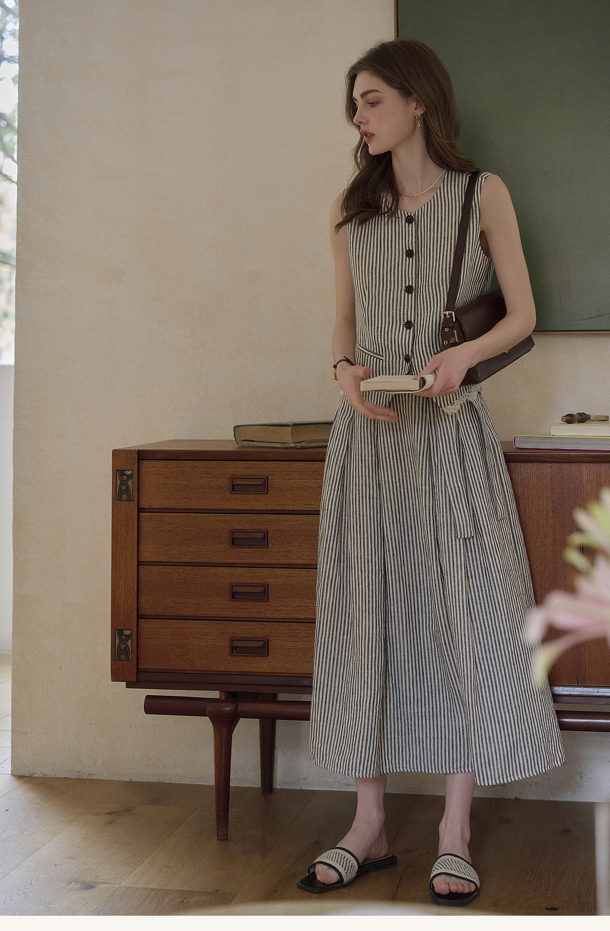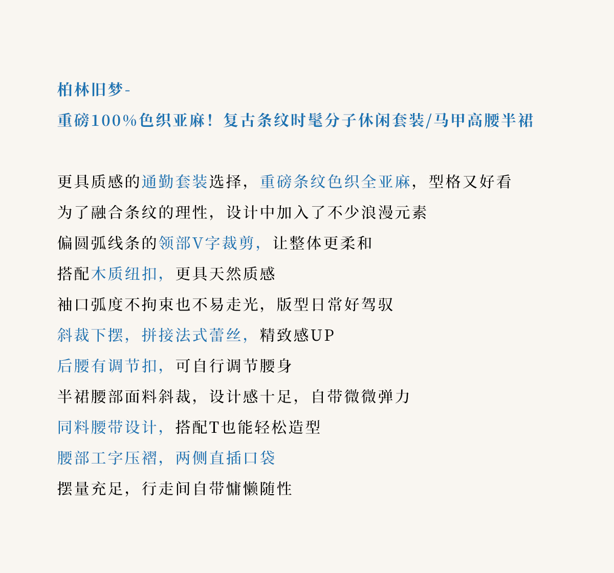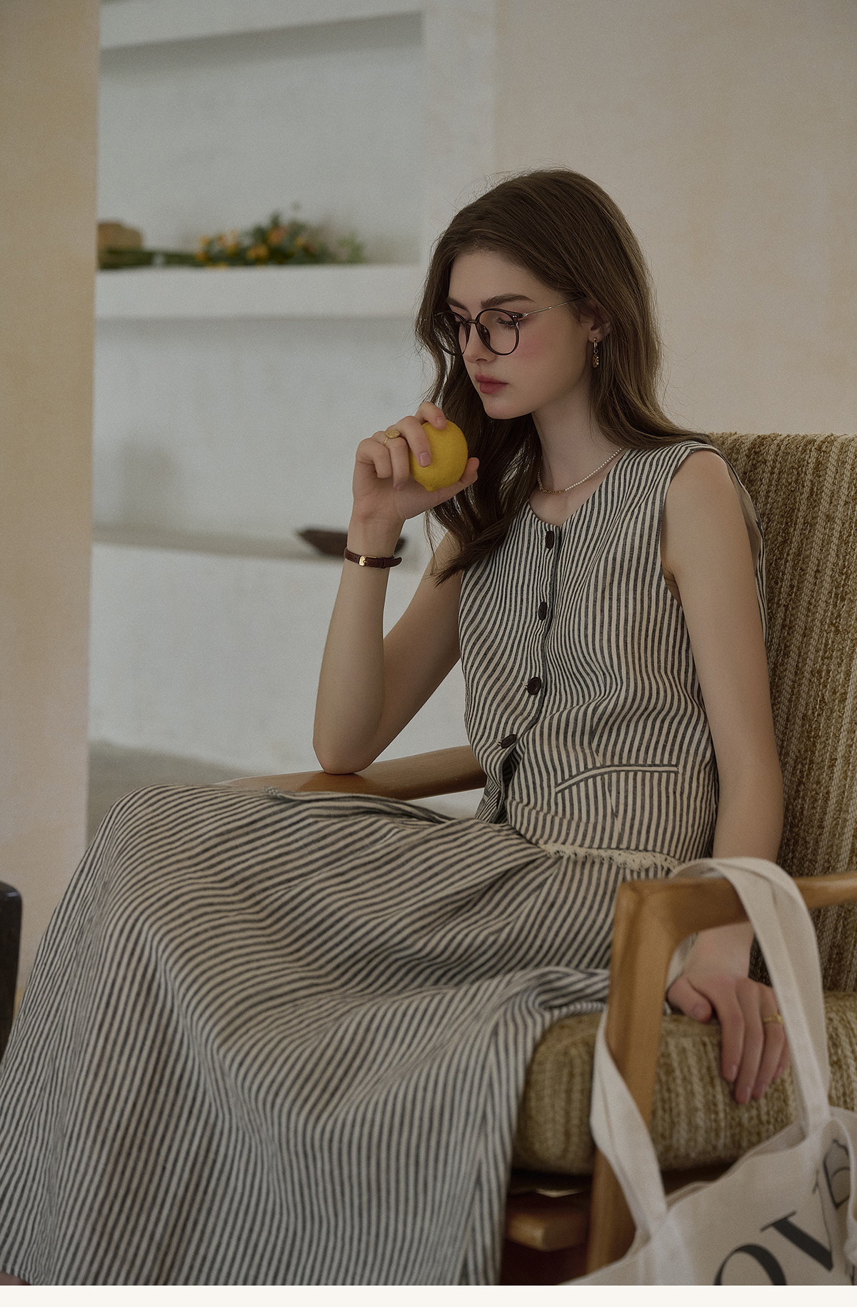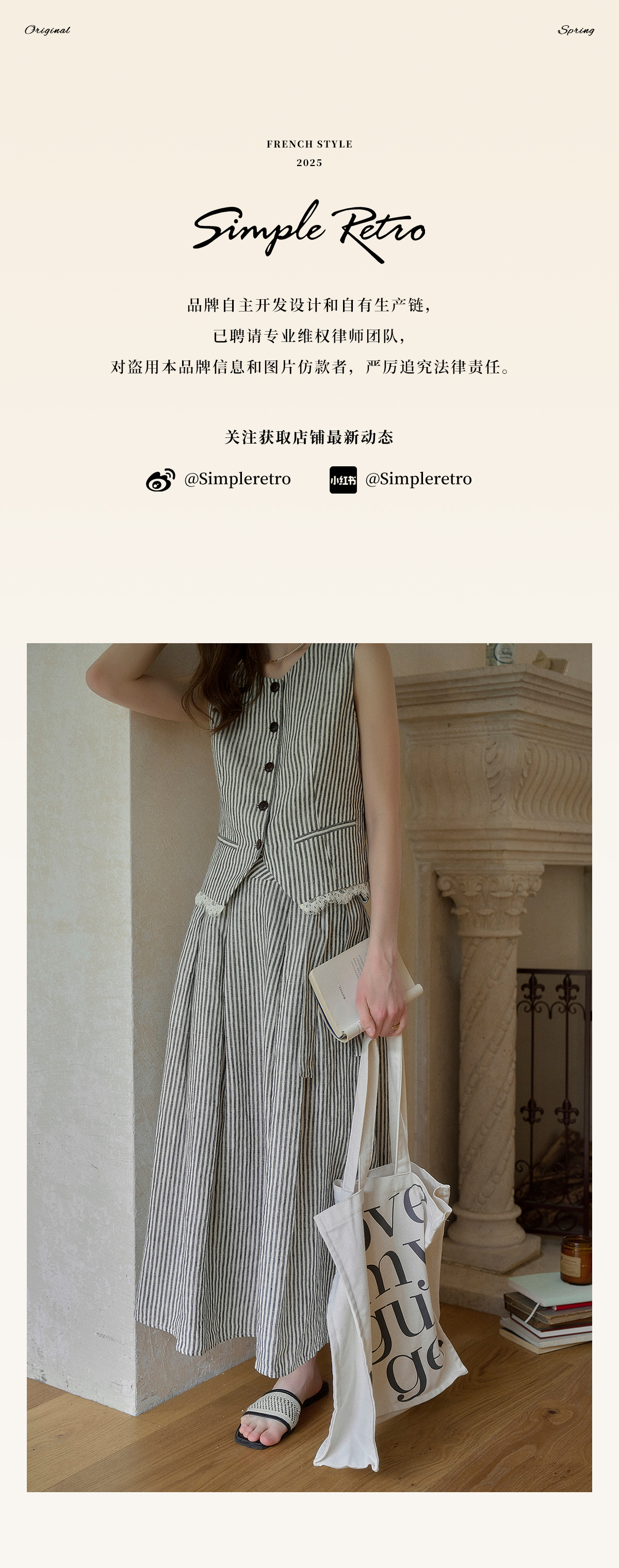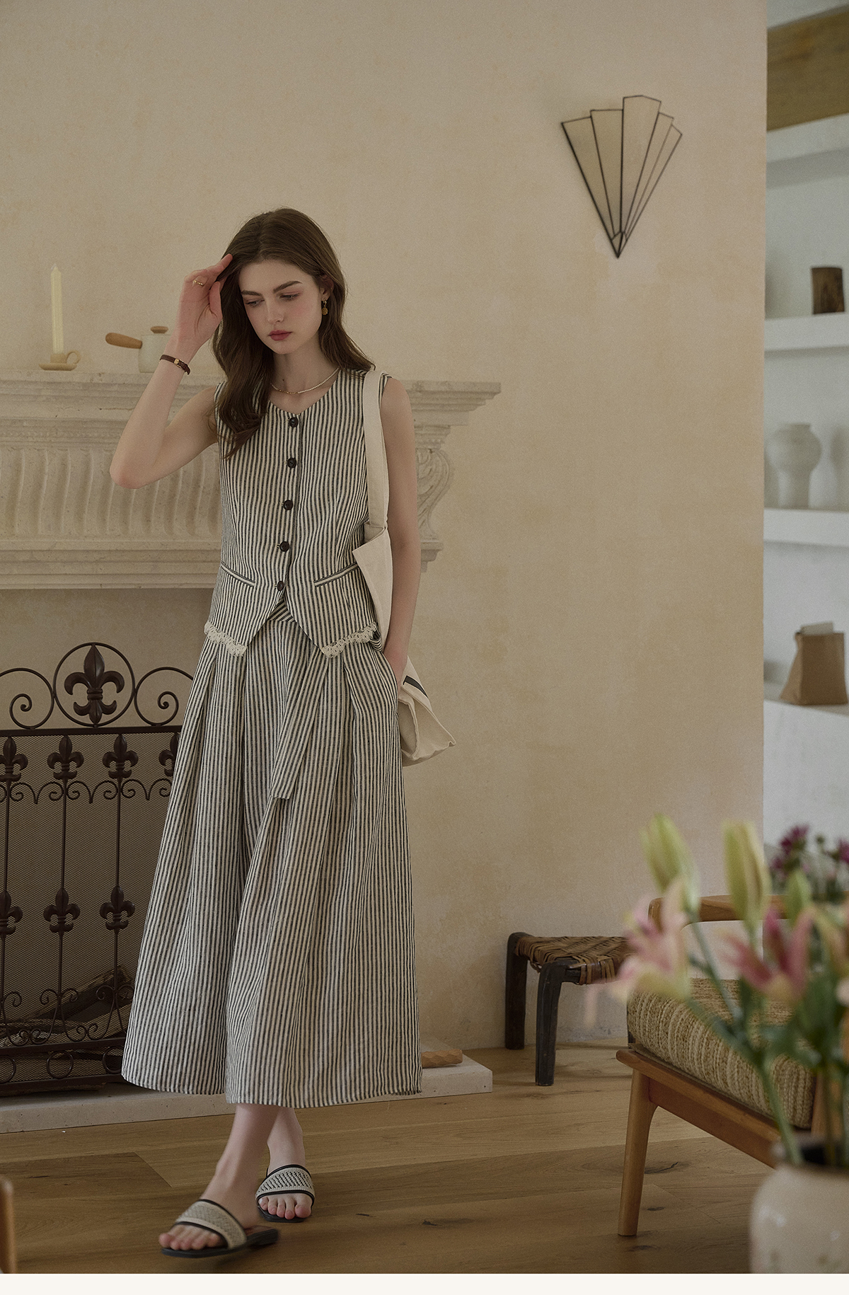 (小眠专属)SimpleRetro重磅100%亚麻复古条纹休闲套装