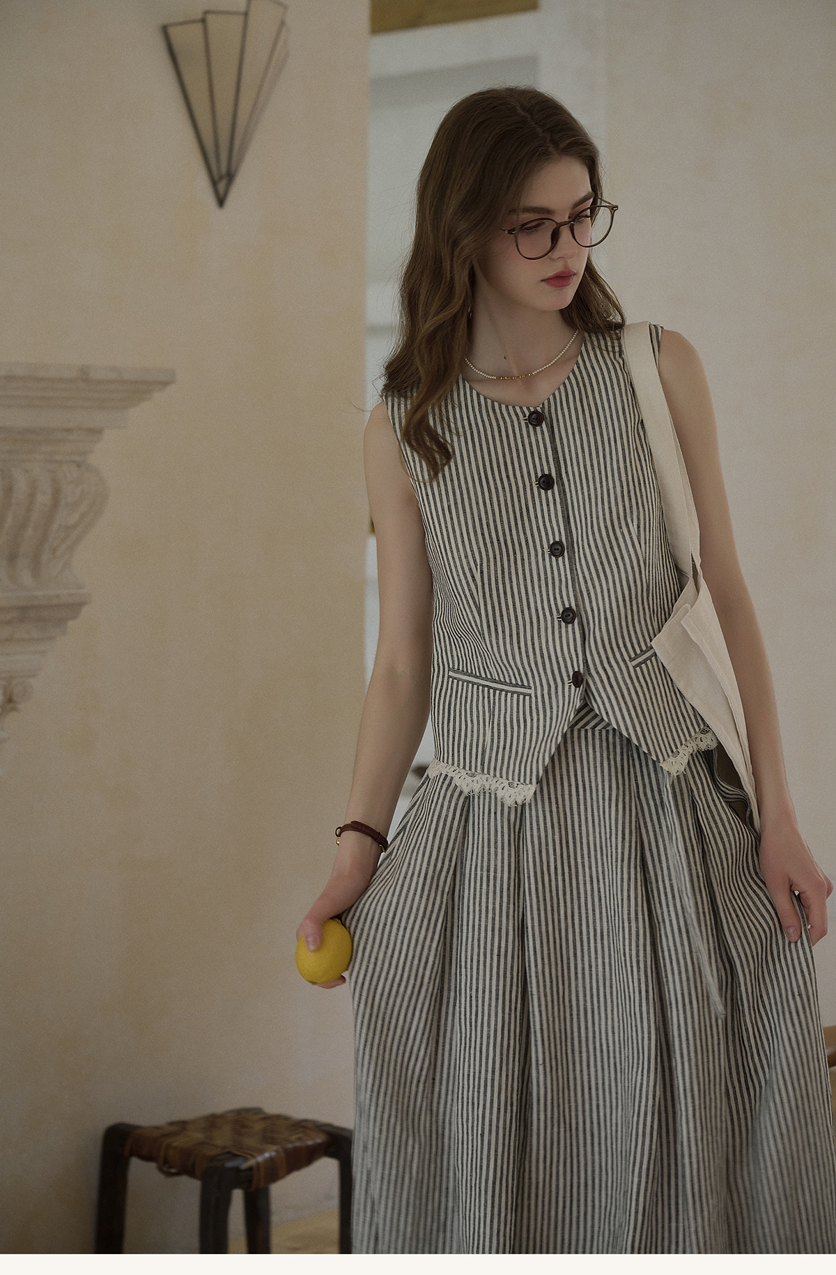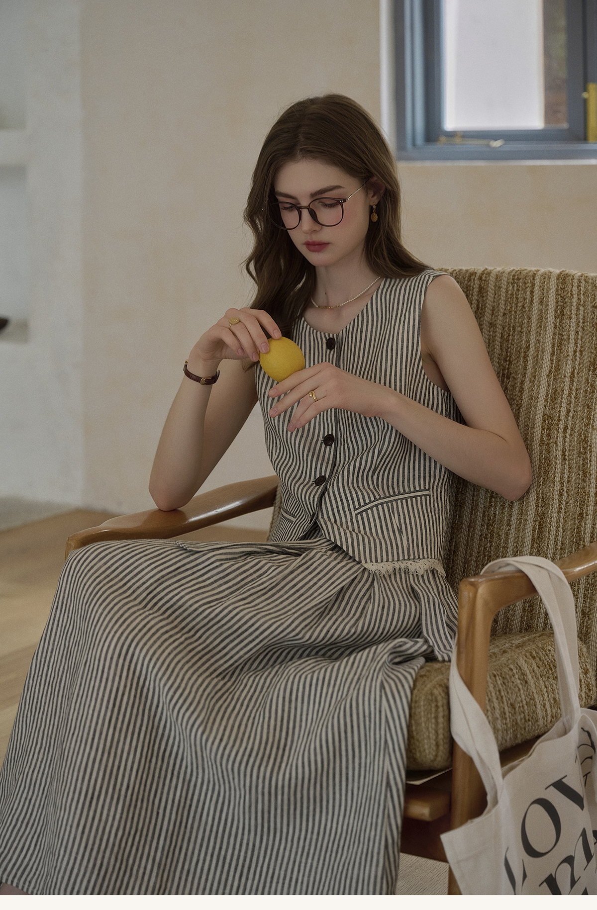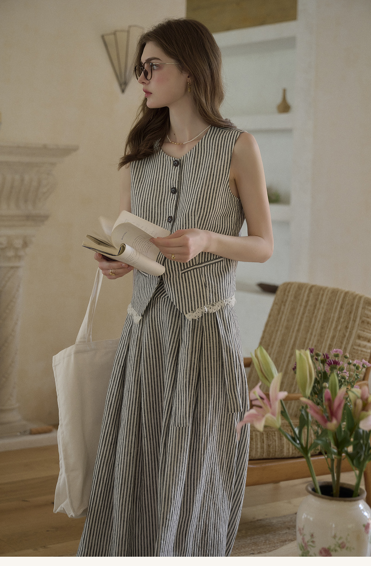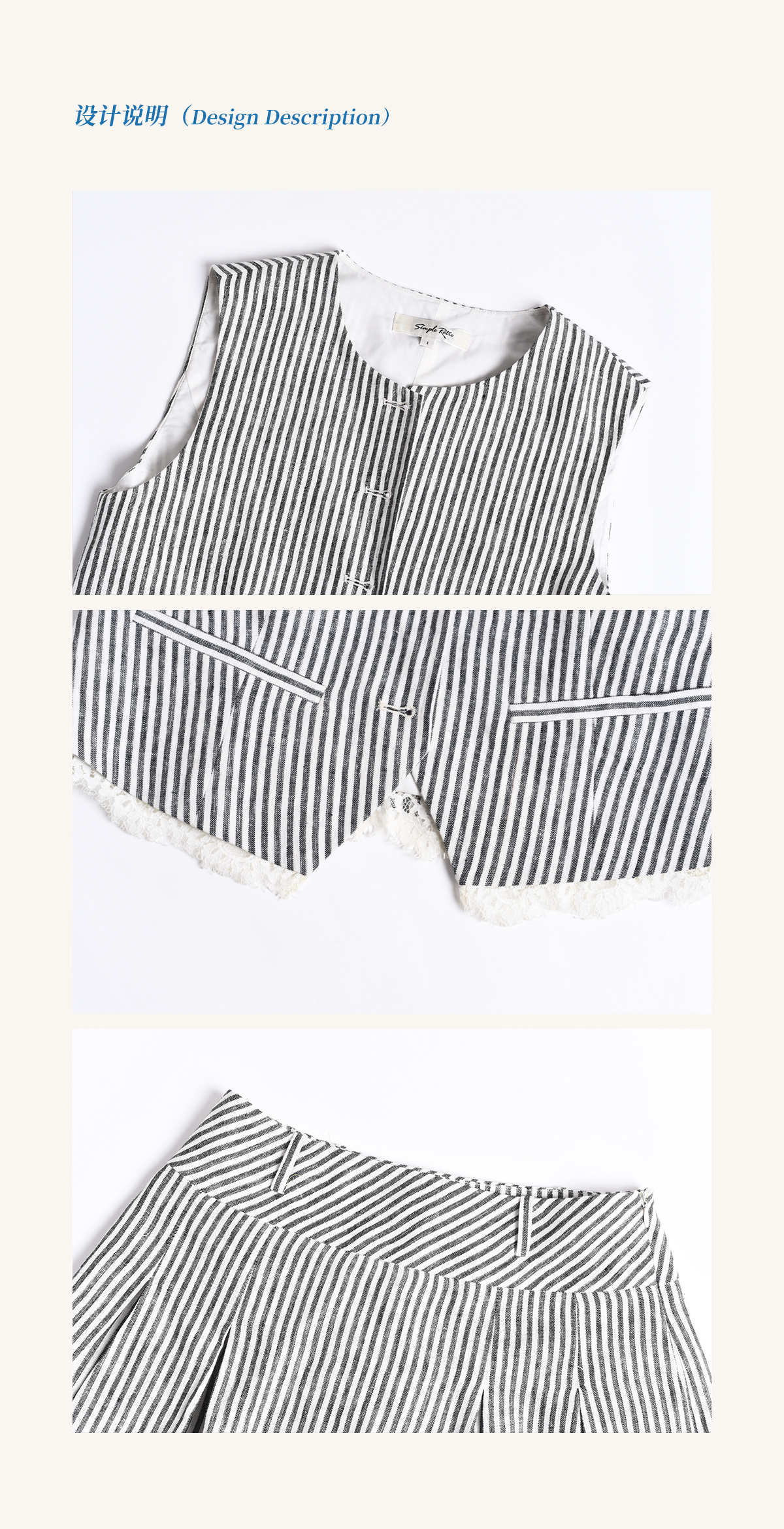 (小眠专属)SimpleRetro重磅100%亚麻复古条纹休闲套装