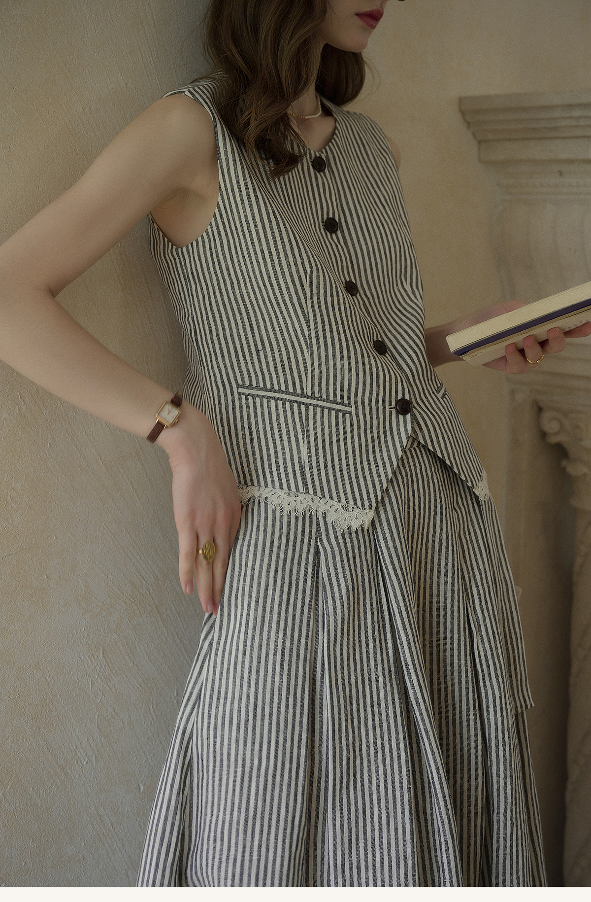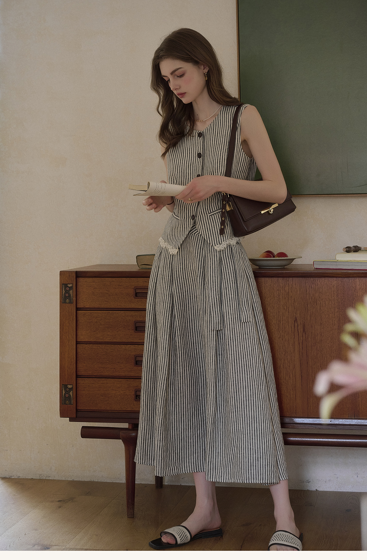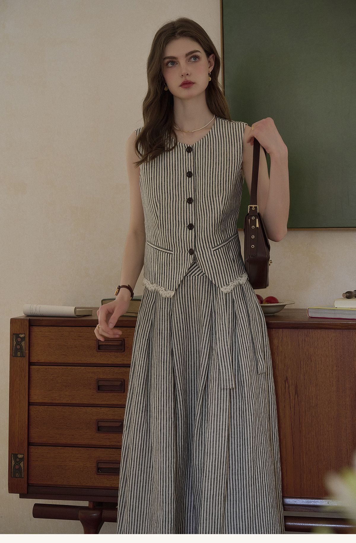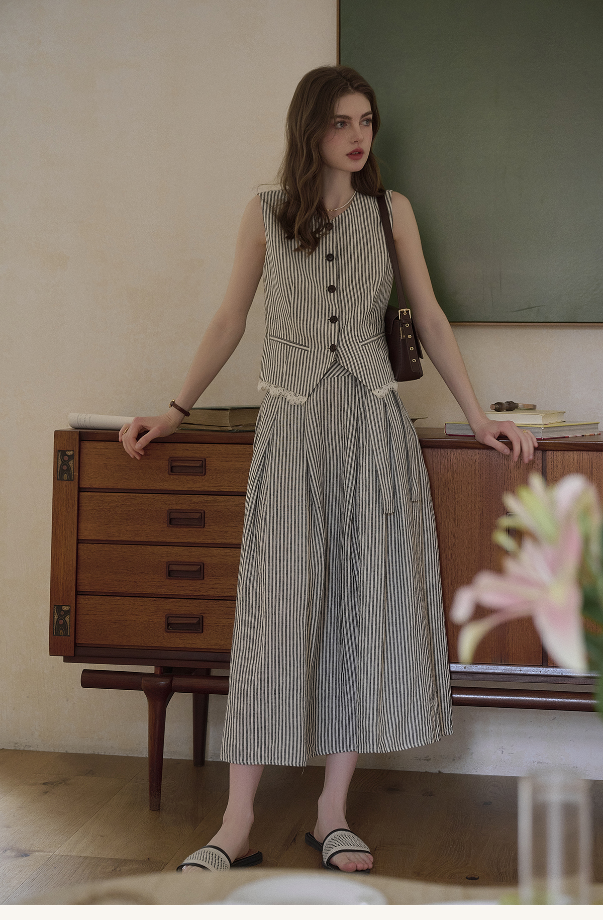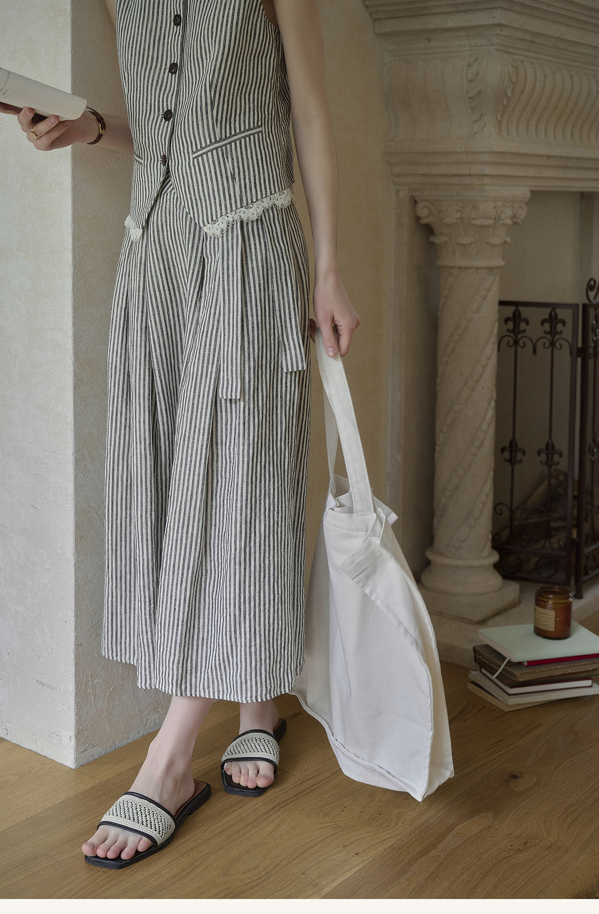 (小眠专属)SimpleRetro重磅100%亚麻复古条纹休闲套装