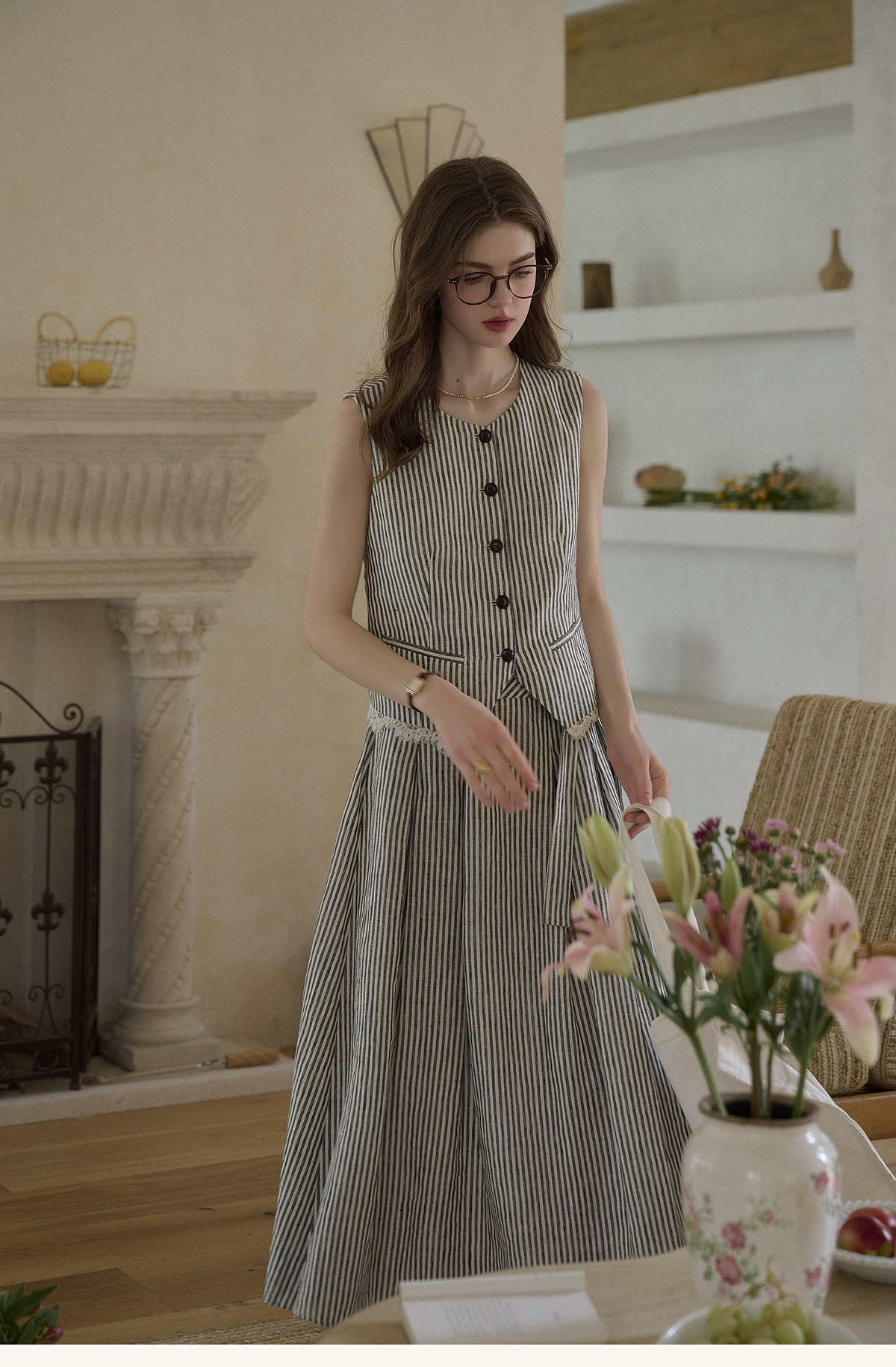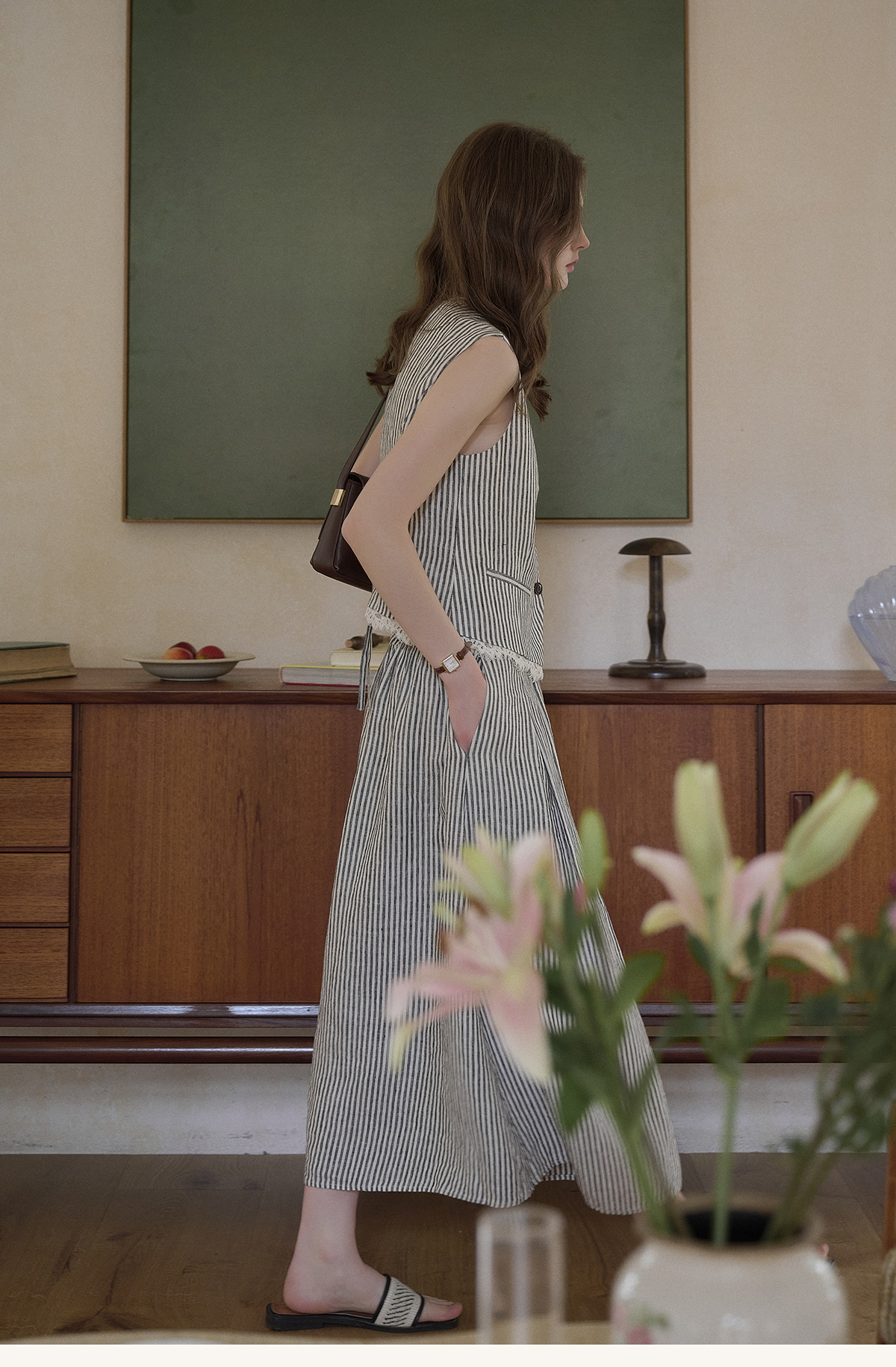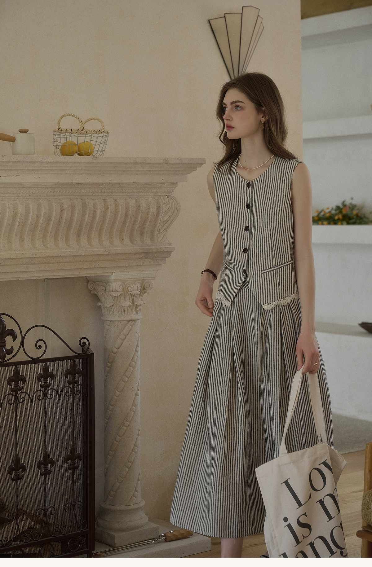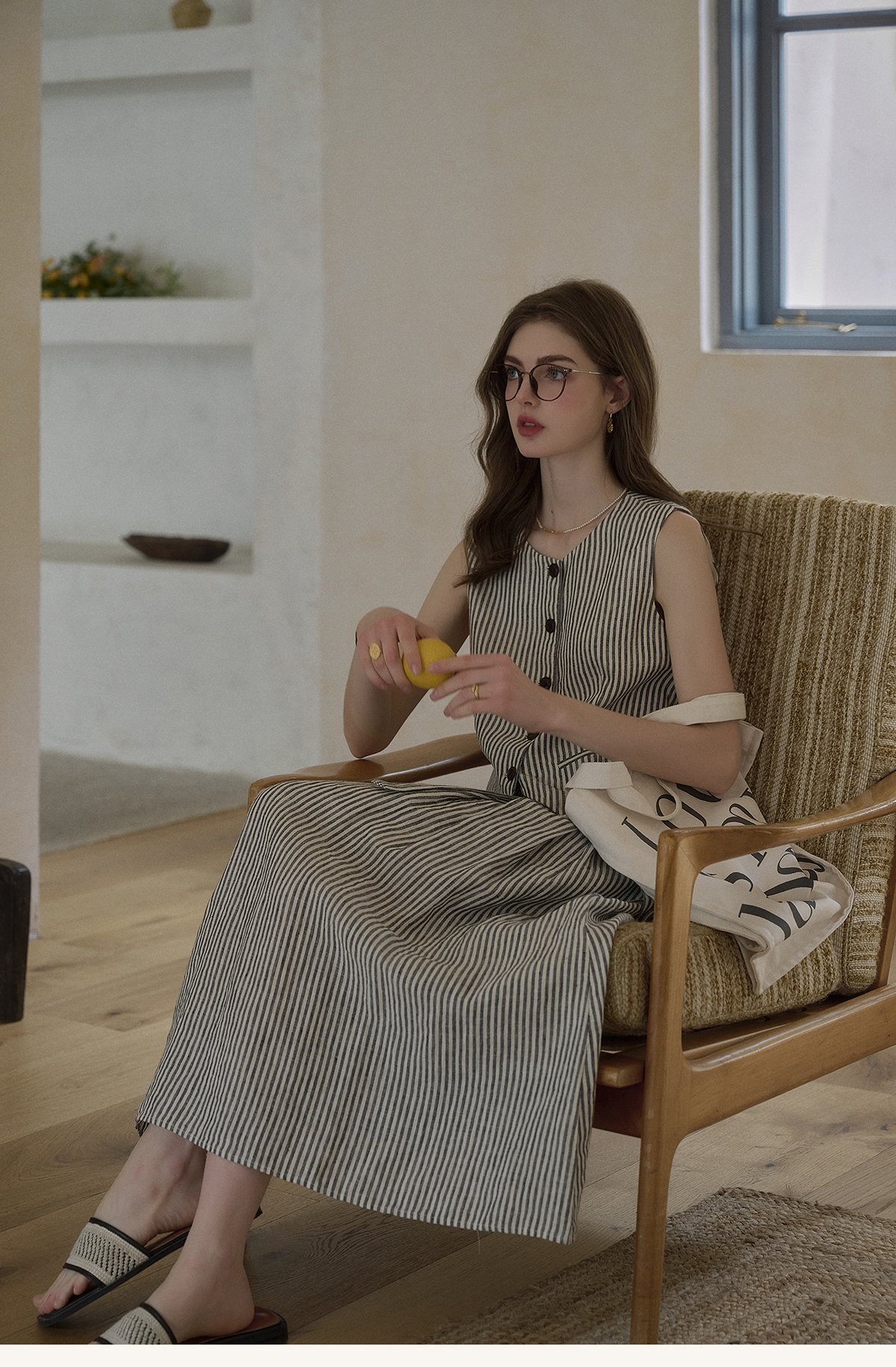 (小眠专属)SimpleRetro重磅100%亚麻复古条纹休闲套装