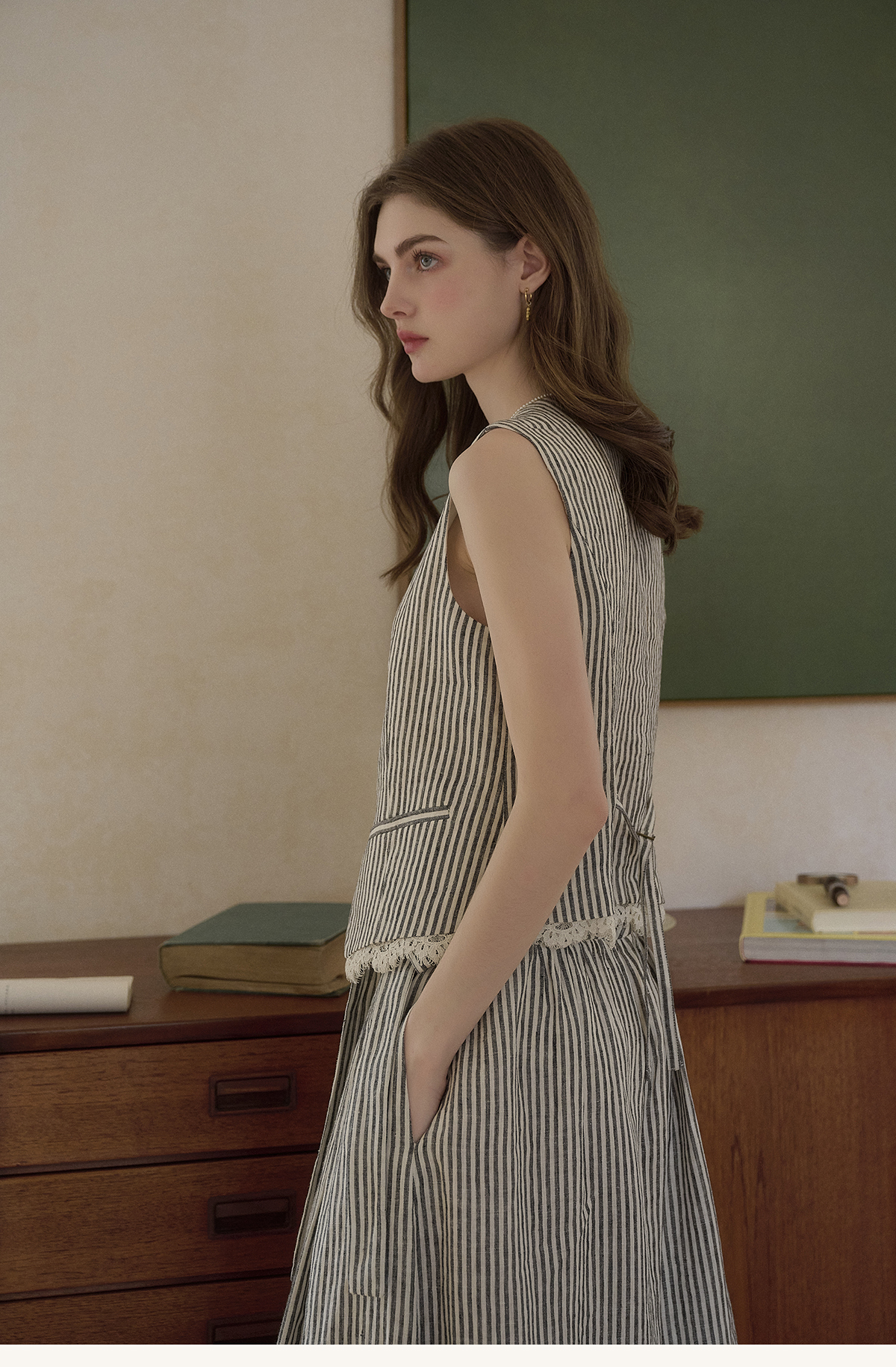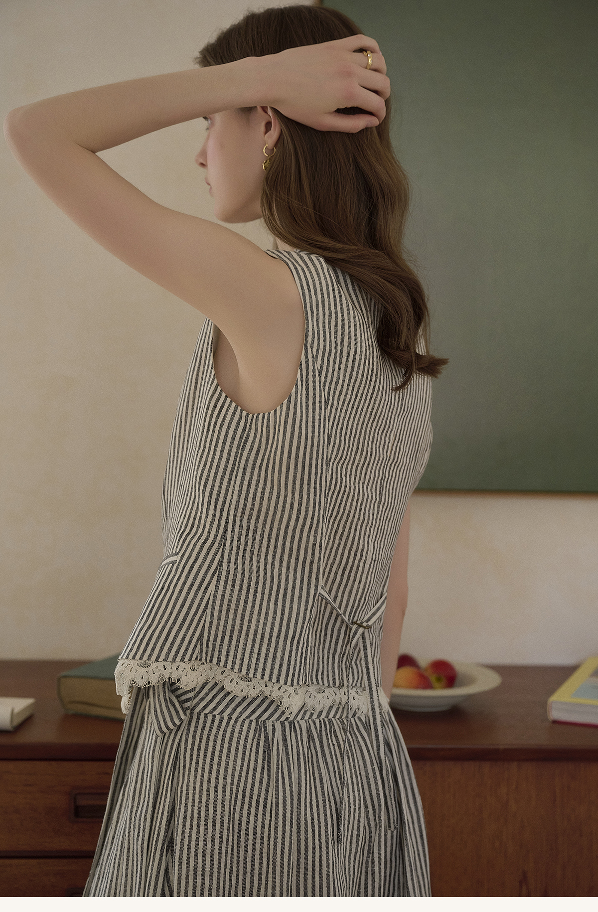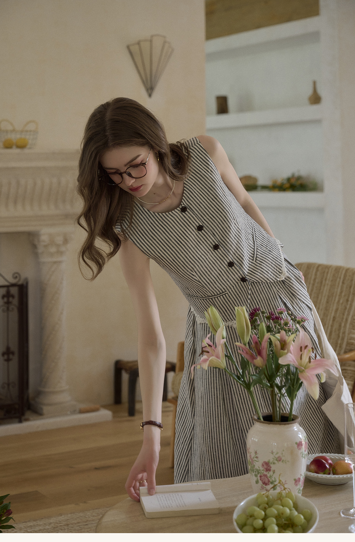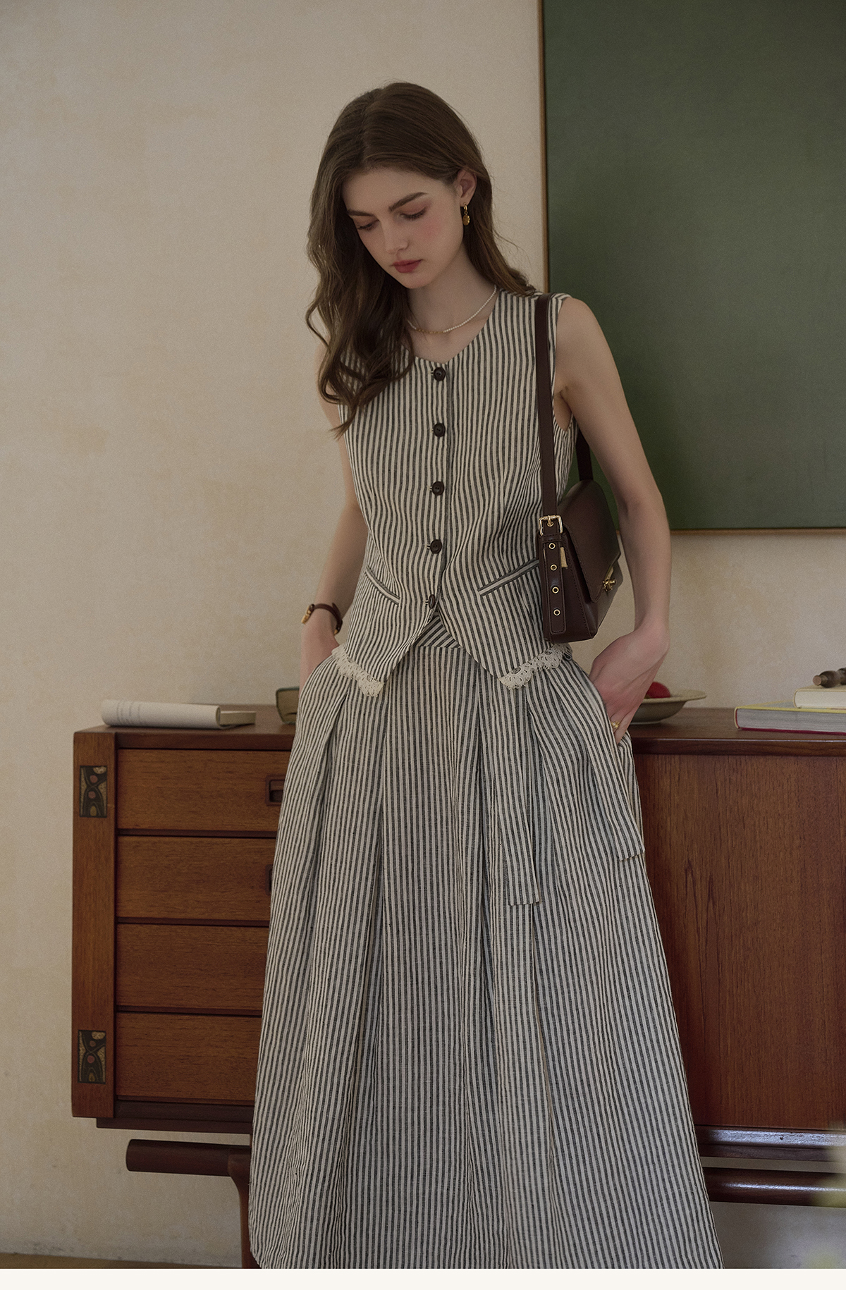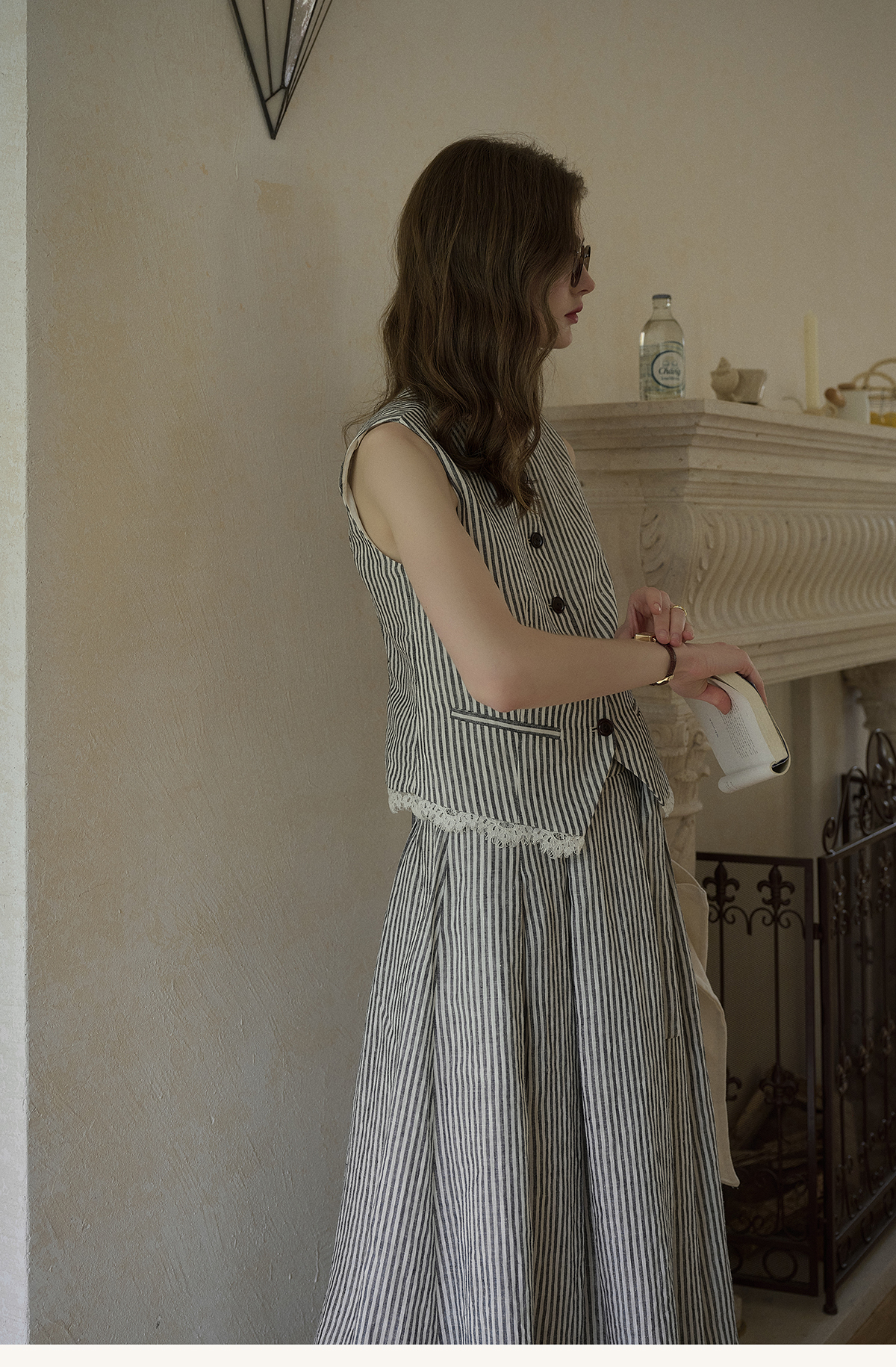 (小眠专属)SimpleRetro重磅100%亚麻复古条纹休闲套装