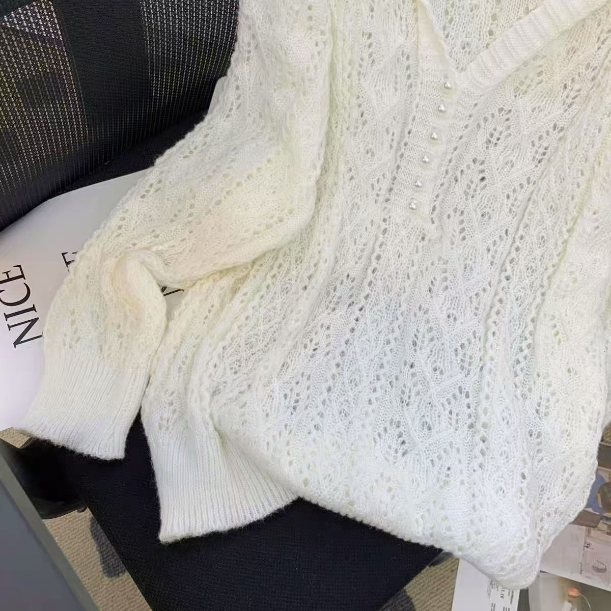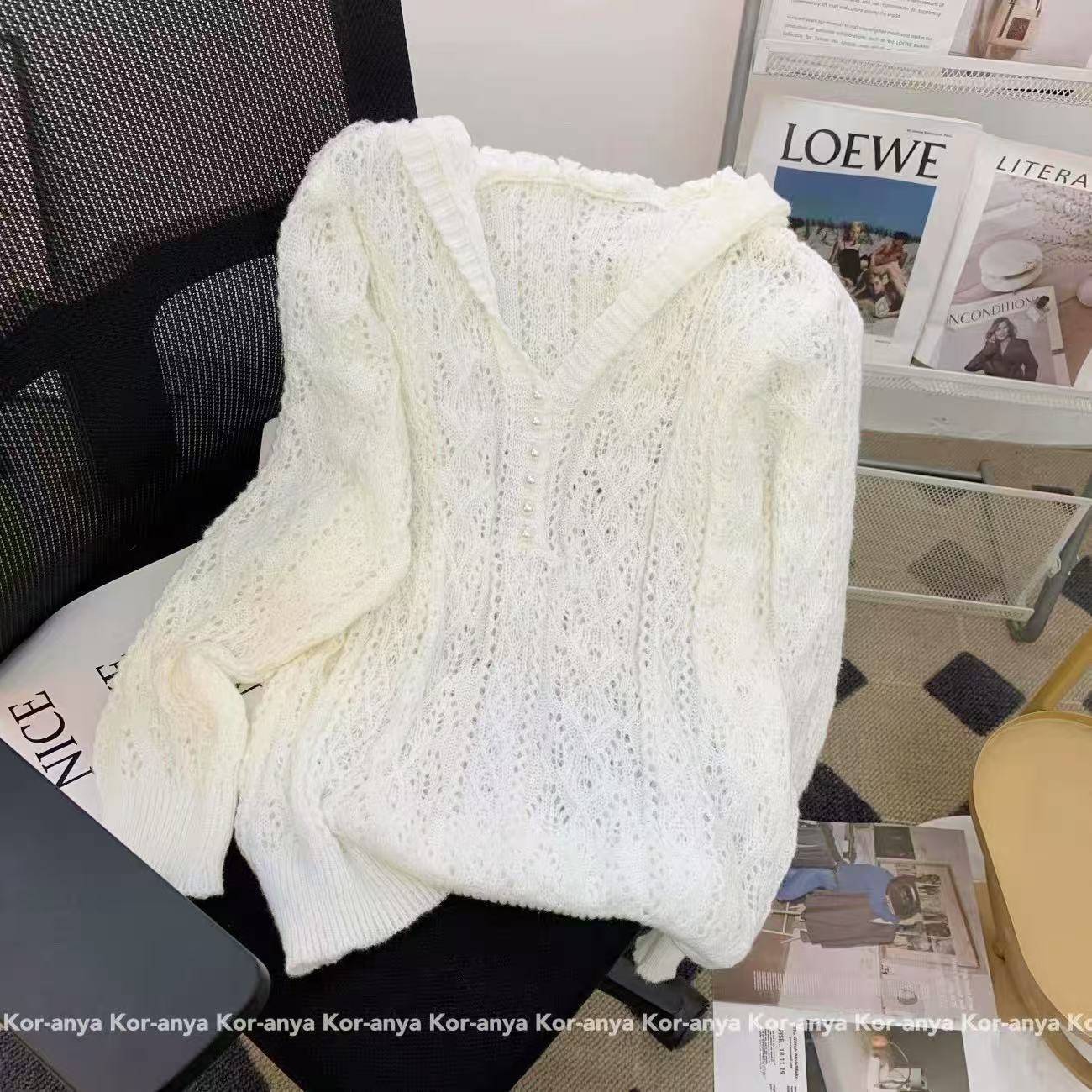 【超值特卖】连帽镂空针织毛衫毛衣-喜出