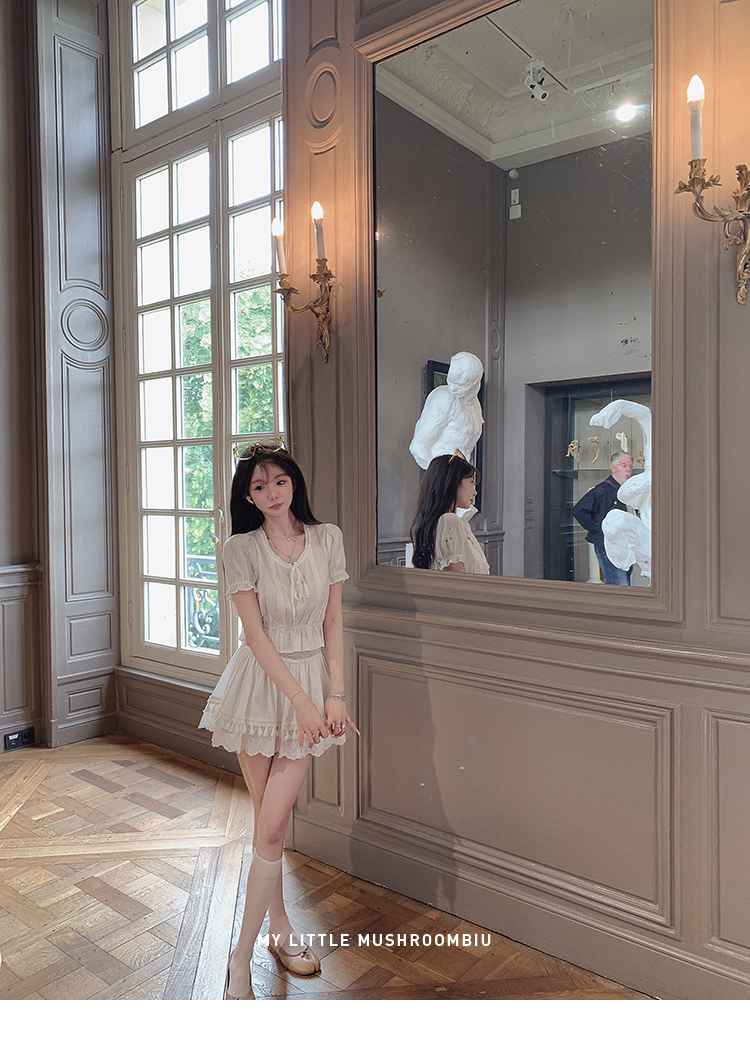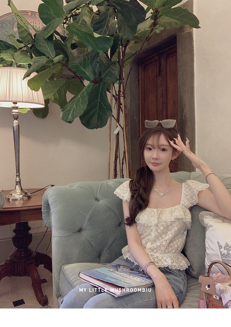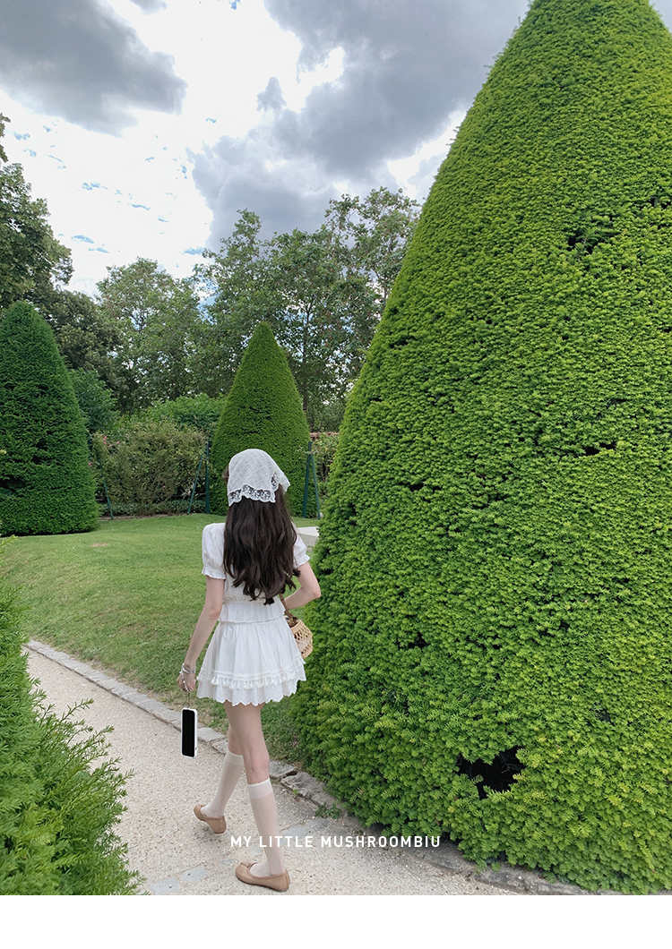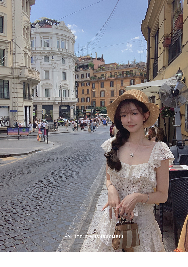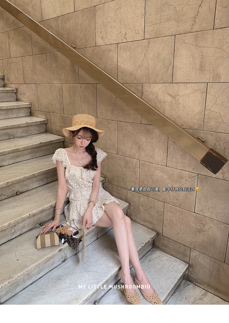 金蘑菇菇 da‘mare罗马的仲夏/方领镂空刺绣设计感衬衫高腰半裙