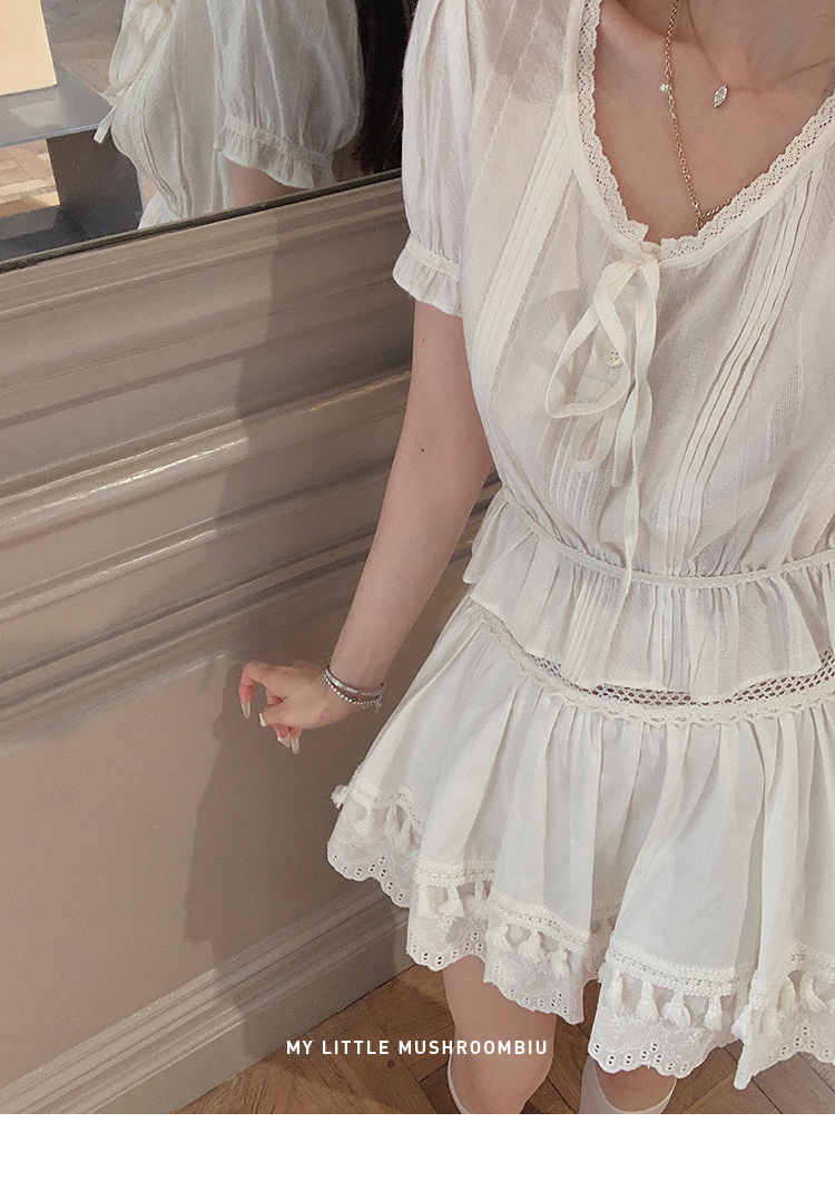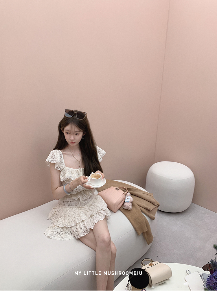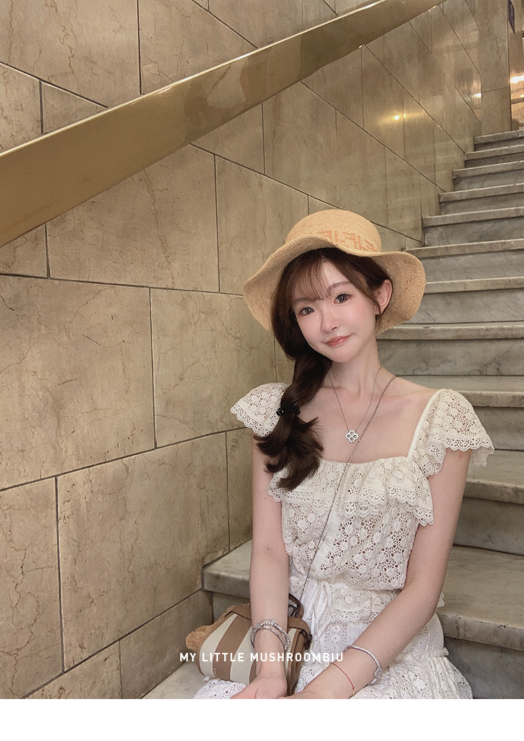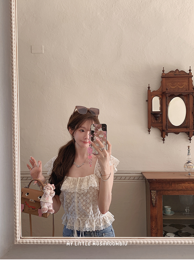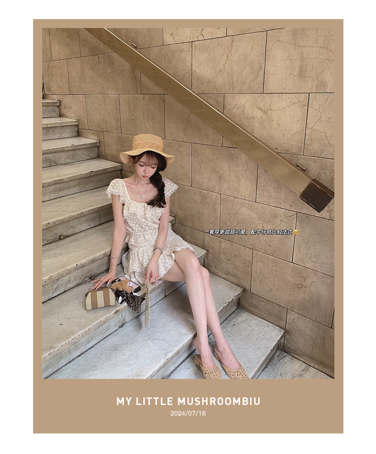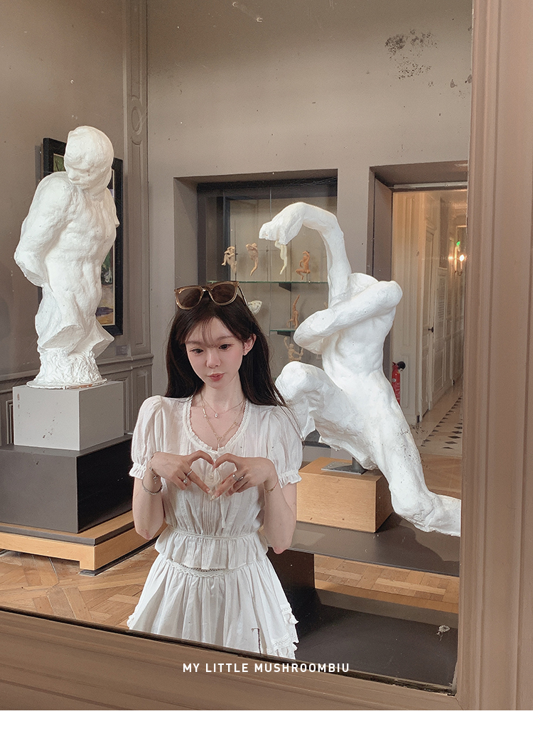 金蘑菇菇 da‘mare罗马的仲夏/方领镂空刺绣设计感衬衫高腰半裙