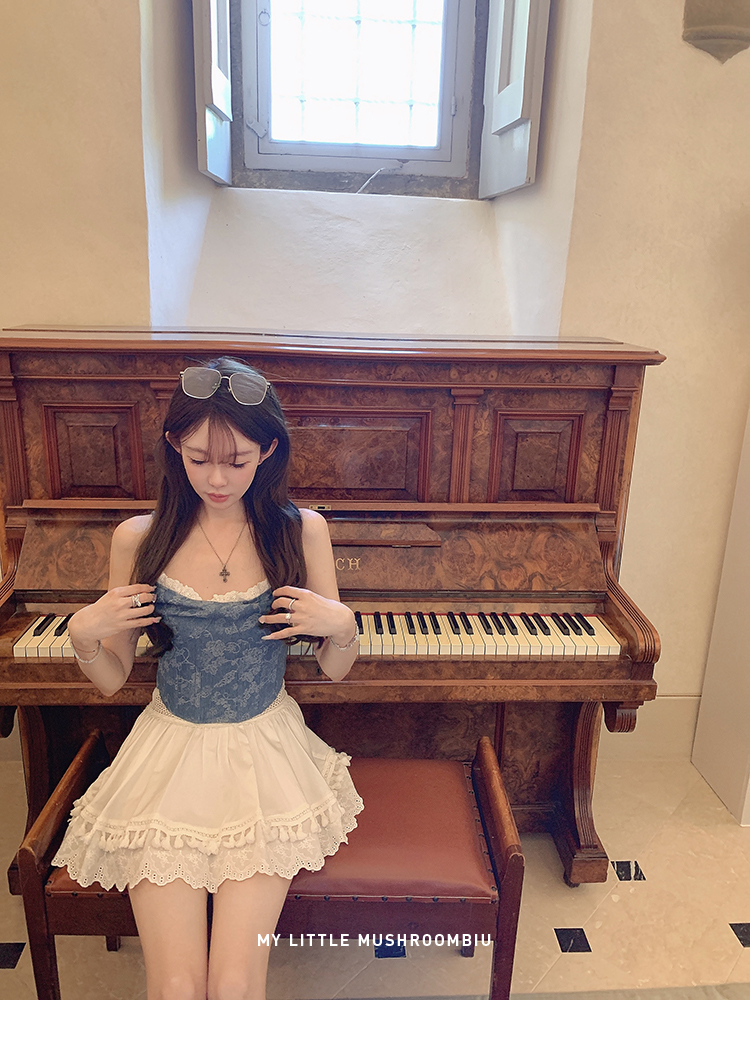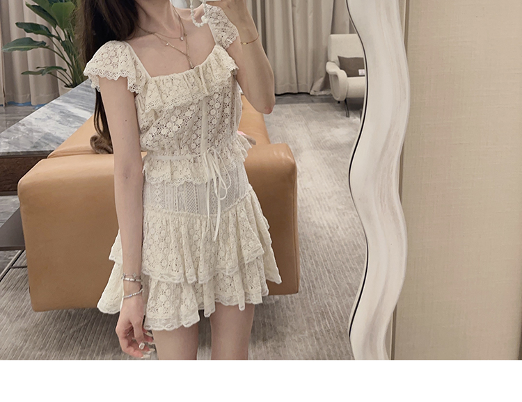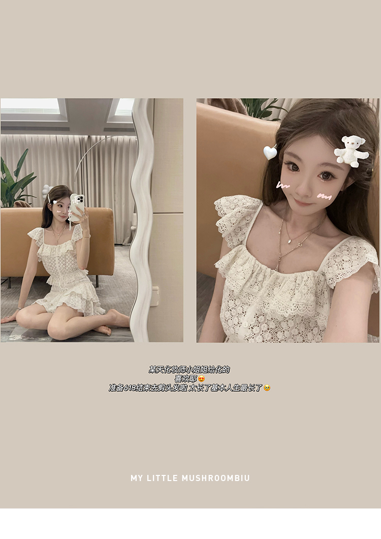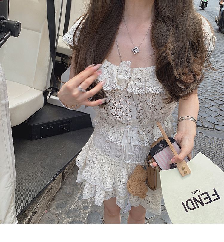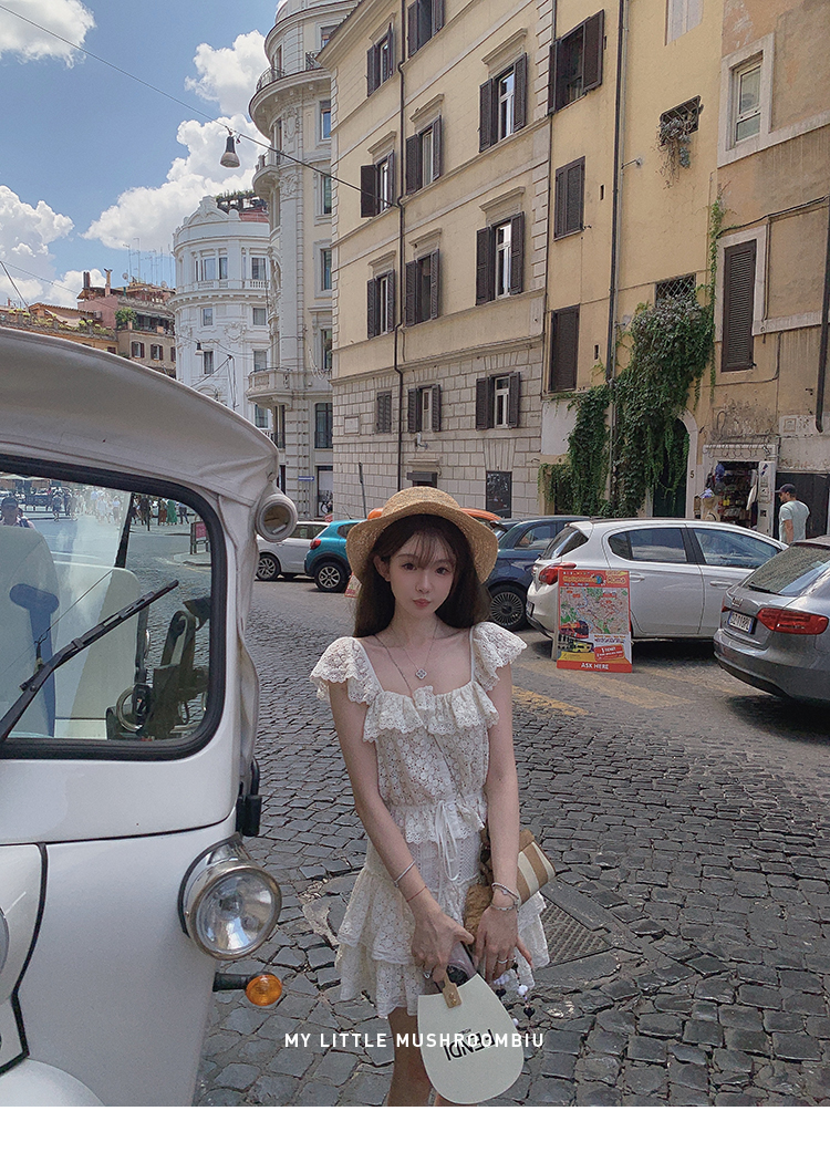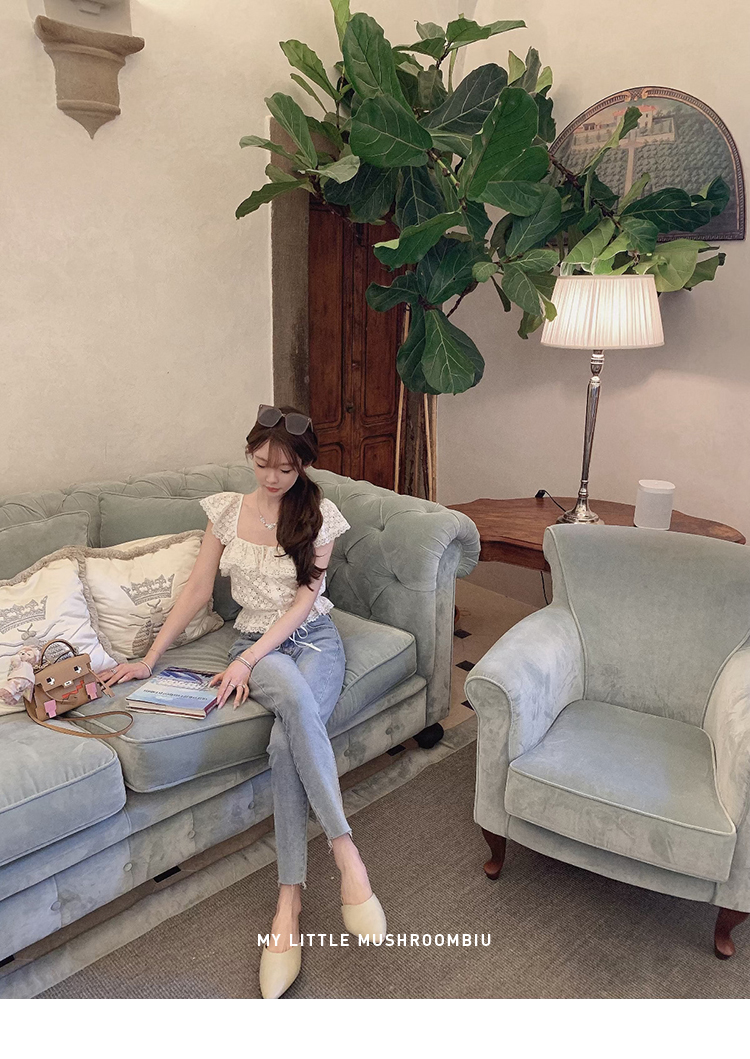 金蘑菇菇 da‘mare罗马的仲夏/方领镂空刺绣设计感衬衫高腰半裙