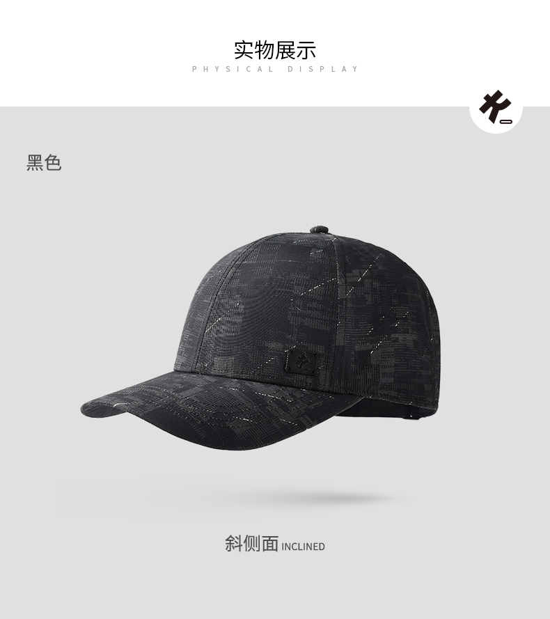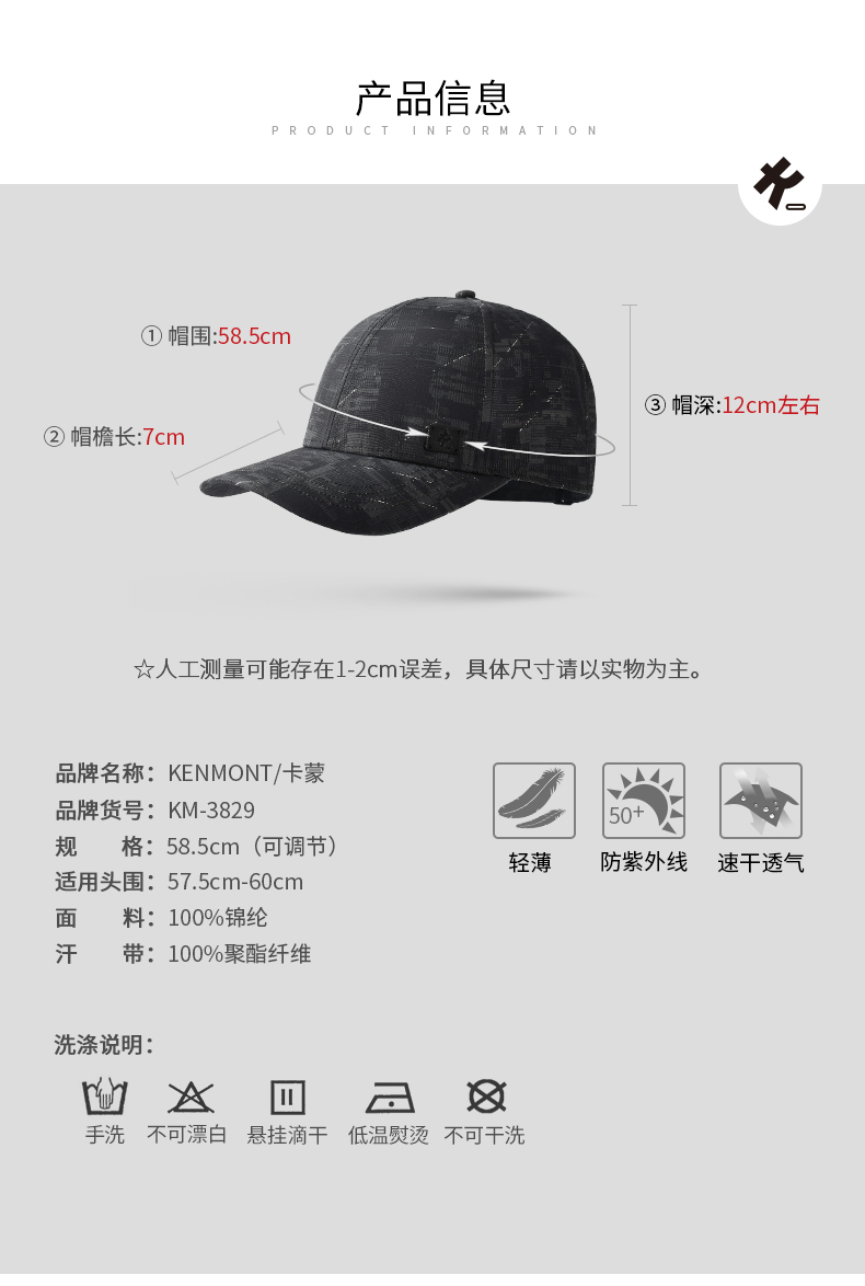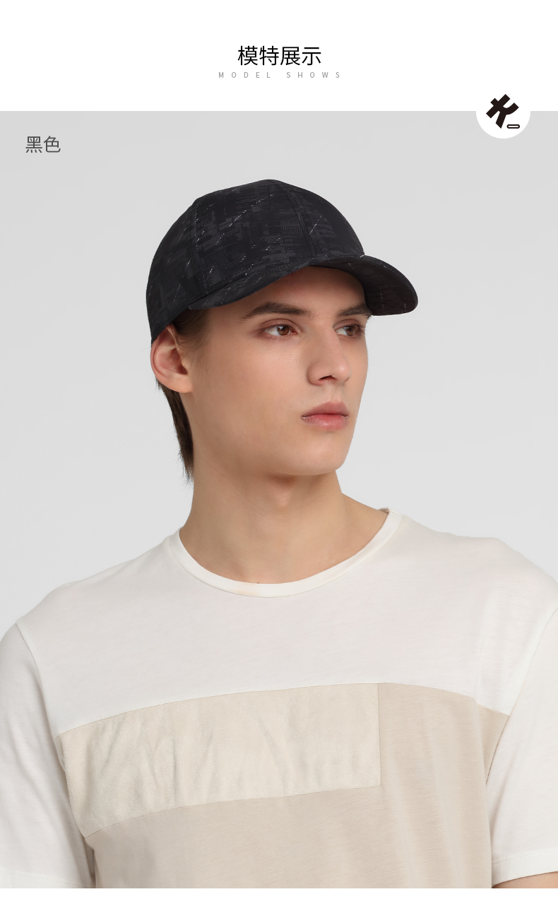 卡蒙帽子男潮流鸭舌帽黑色棒球帽运动跑步防晒帽防紫外线户外速干KM-3829-01