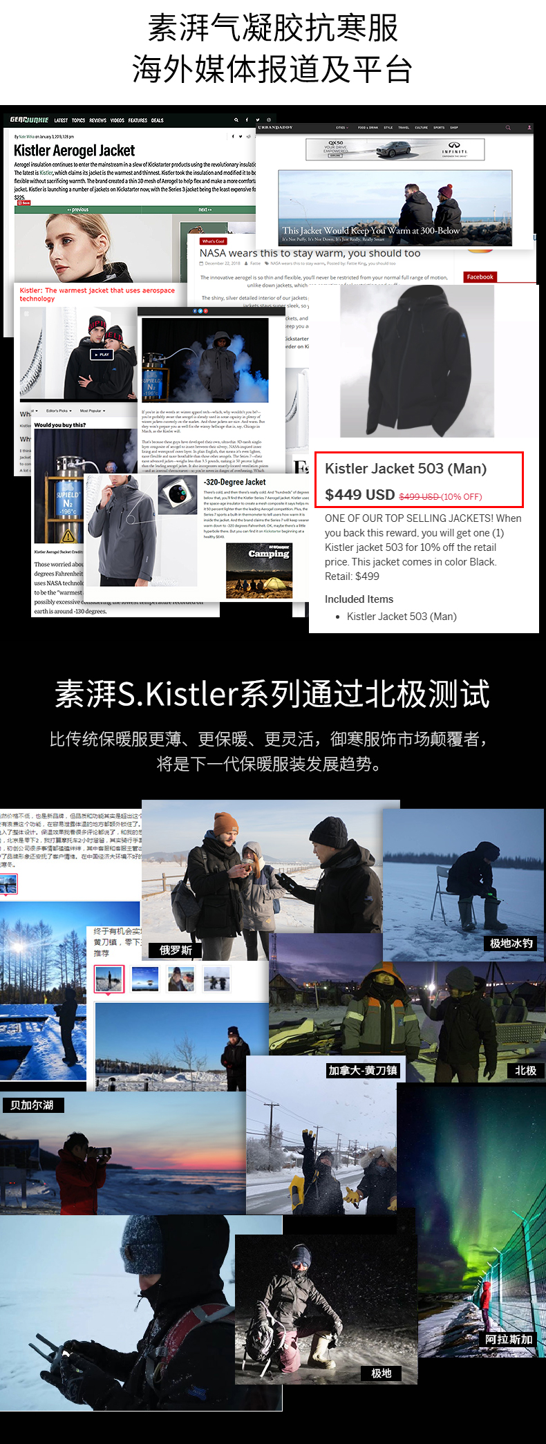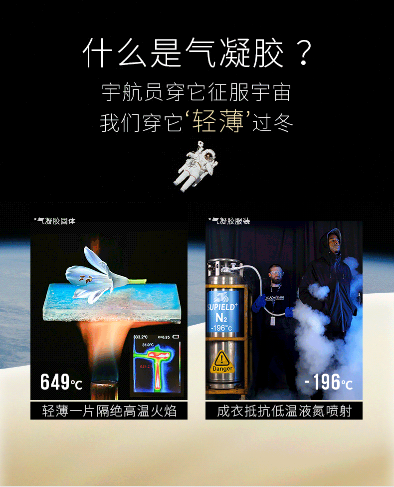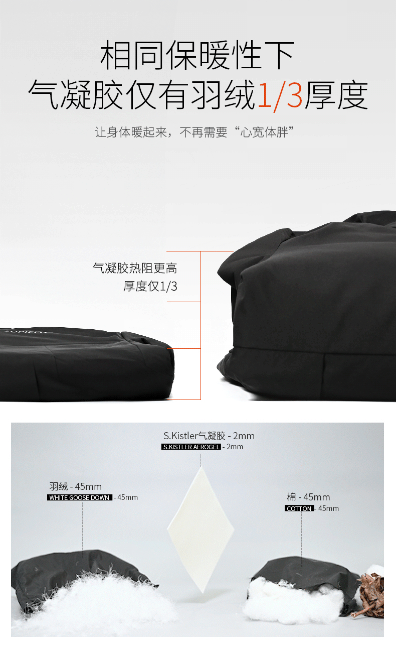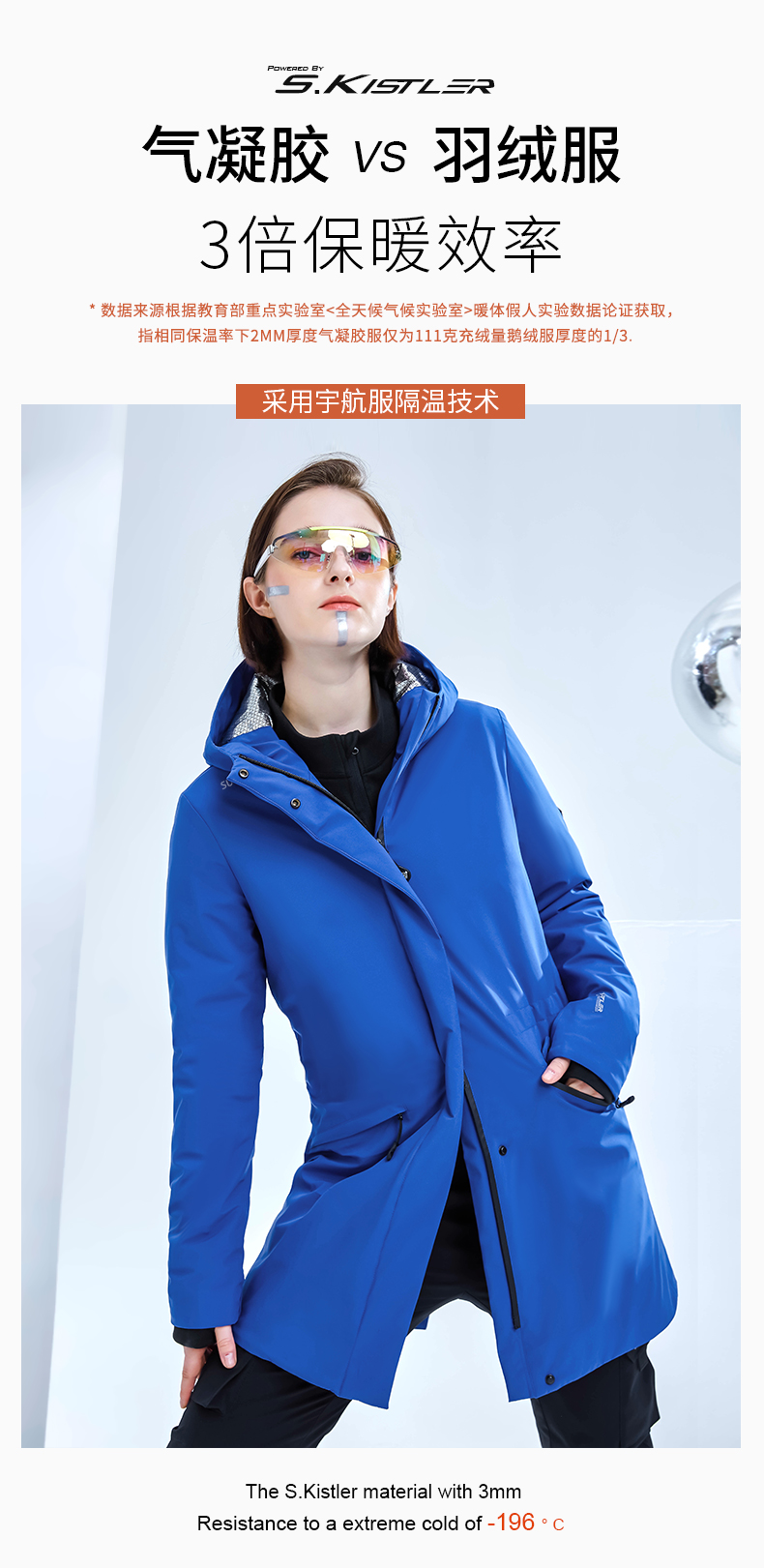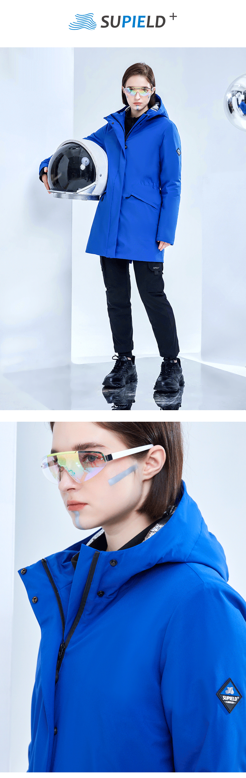 Supield素湃宇航气凝胶抗寒服连帽中长款女棉衣冬季防寒服棉服512