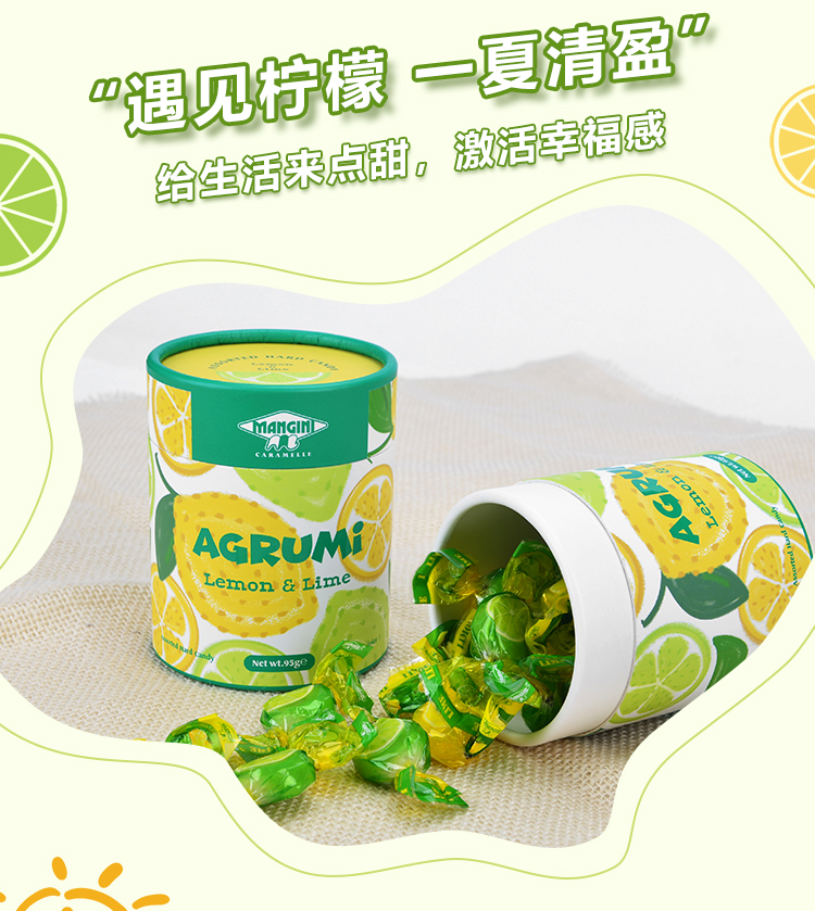 曼吉尼青柠柠檬汁/橙子柑桔果汁糖果95g/064598/064599 醇香果味硬糖 好吃不腻 每时每刻享受甜蜜好滋味