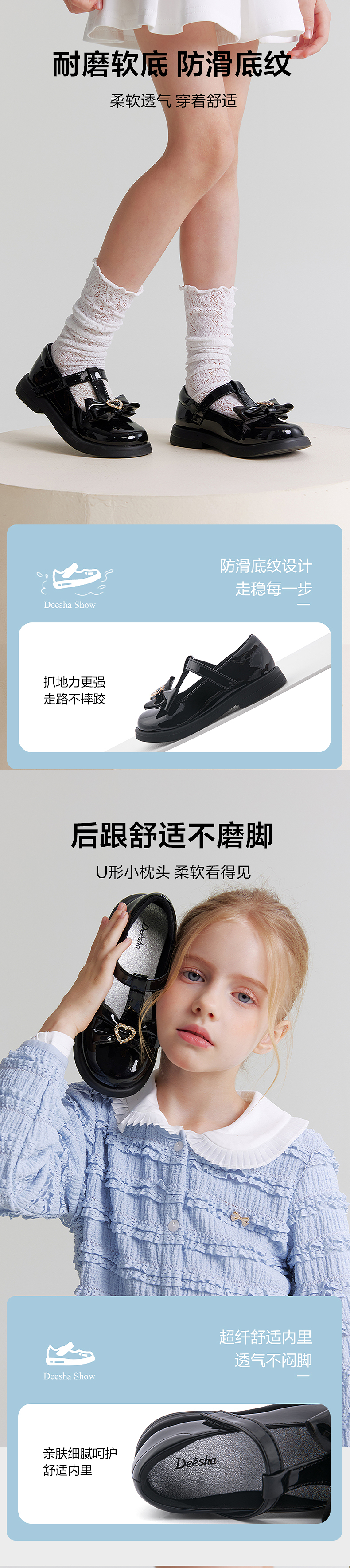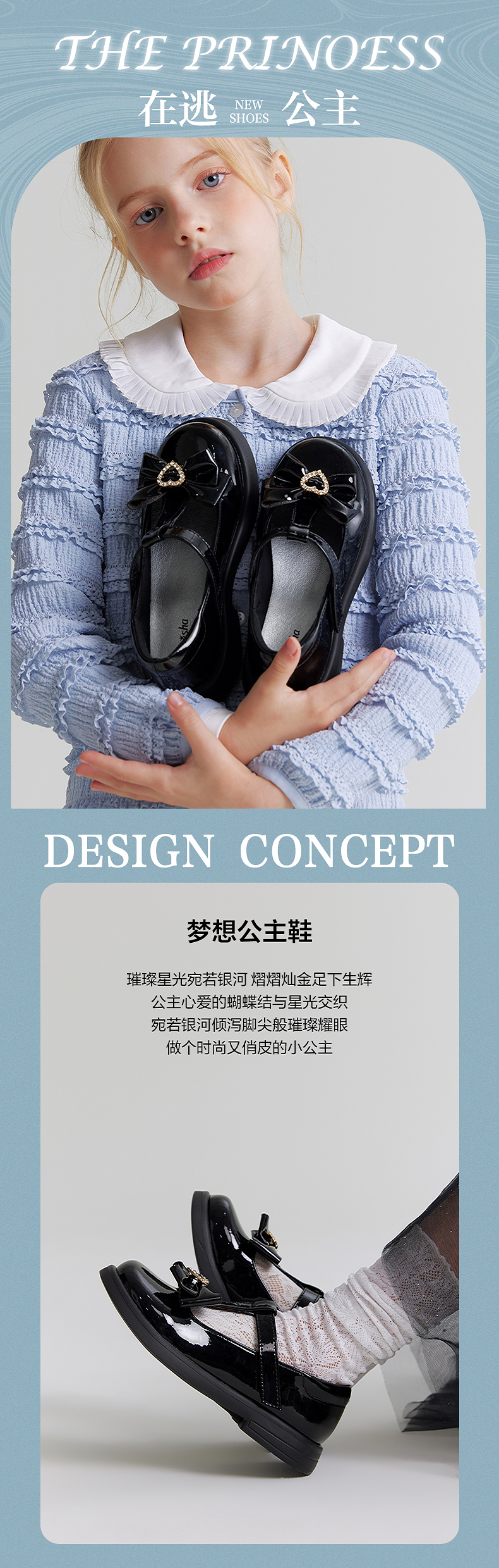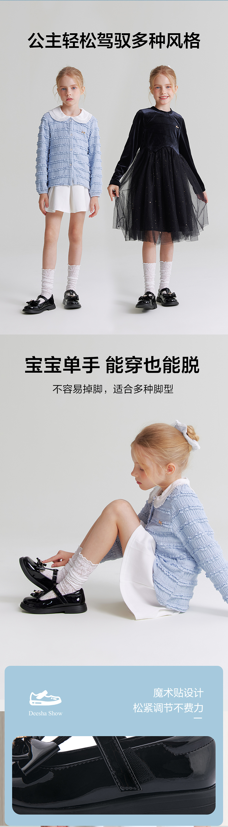 笛莎Deesha 女童童鞋2025秋新款低帮皮鞋