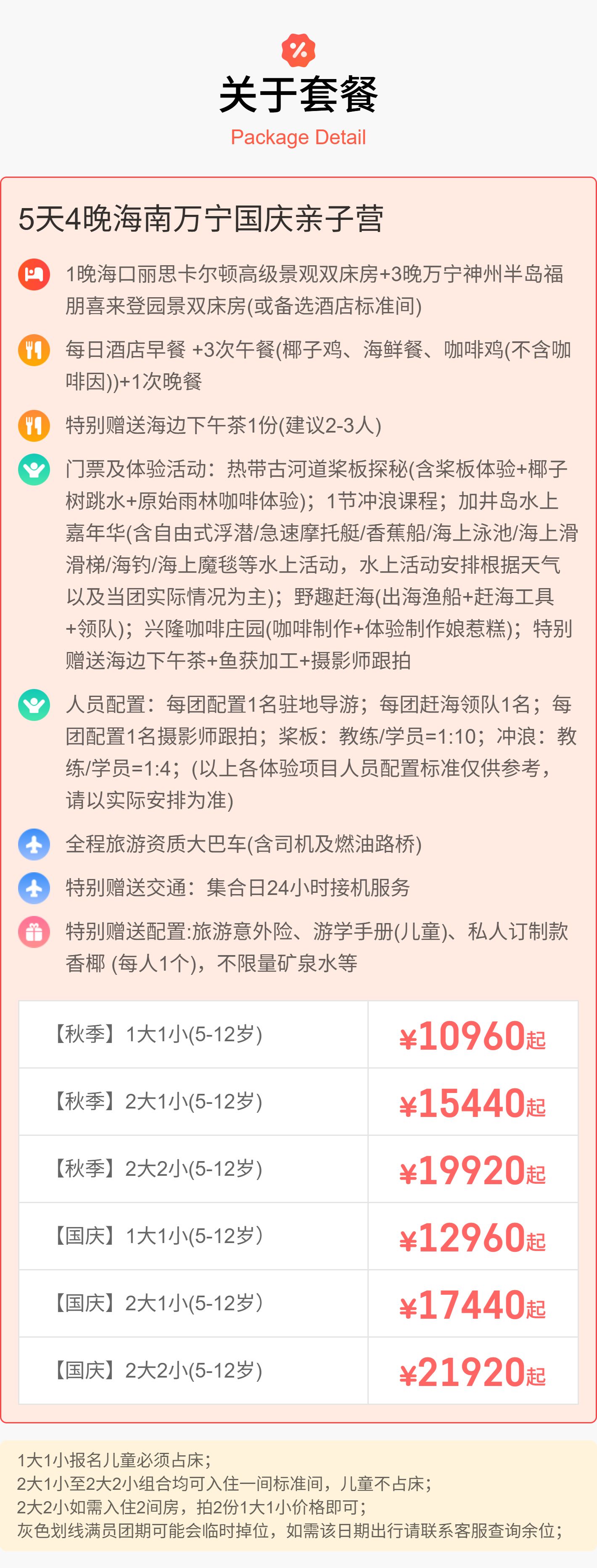 5天4晚【海南万宁国庆亲子营】体验桨板穿越雨林秘境、冲浪浮潜、轻奢住宿、特别赠送海边下午茶及接机服务等,充实过亲子假期!