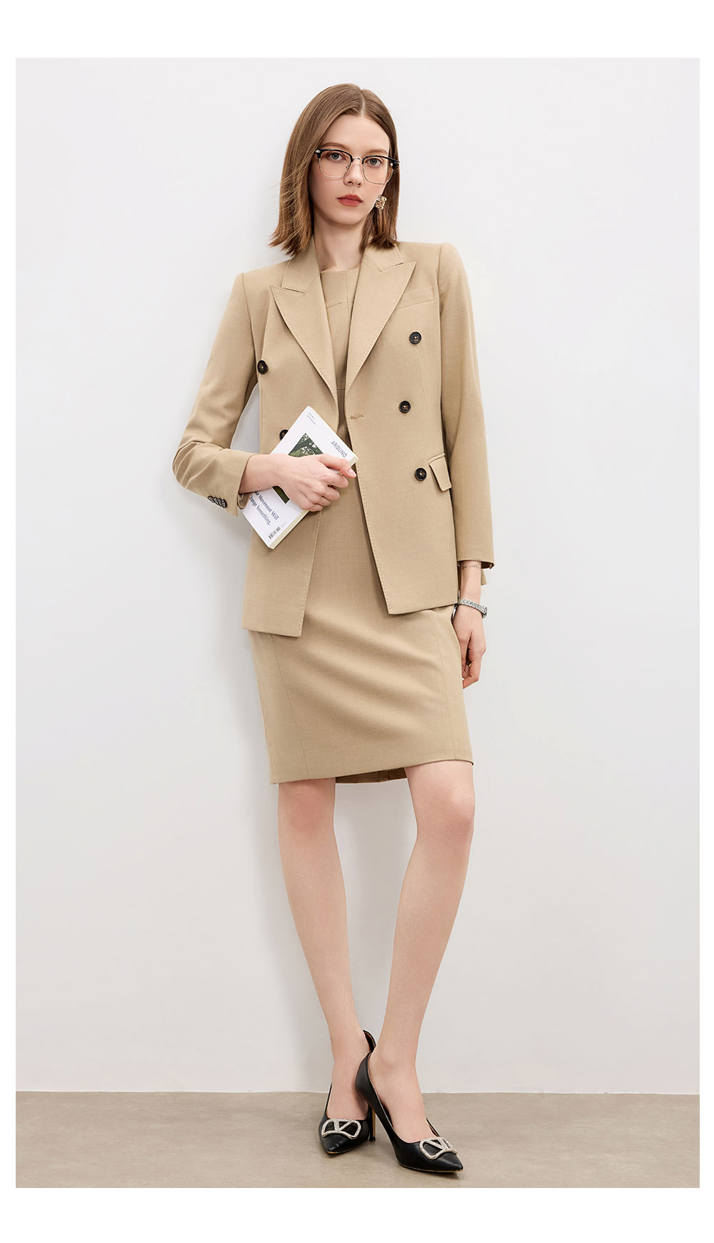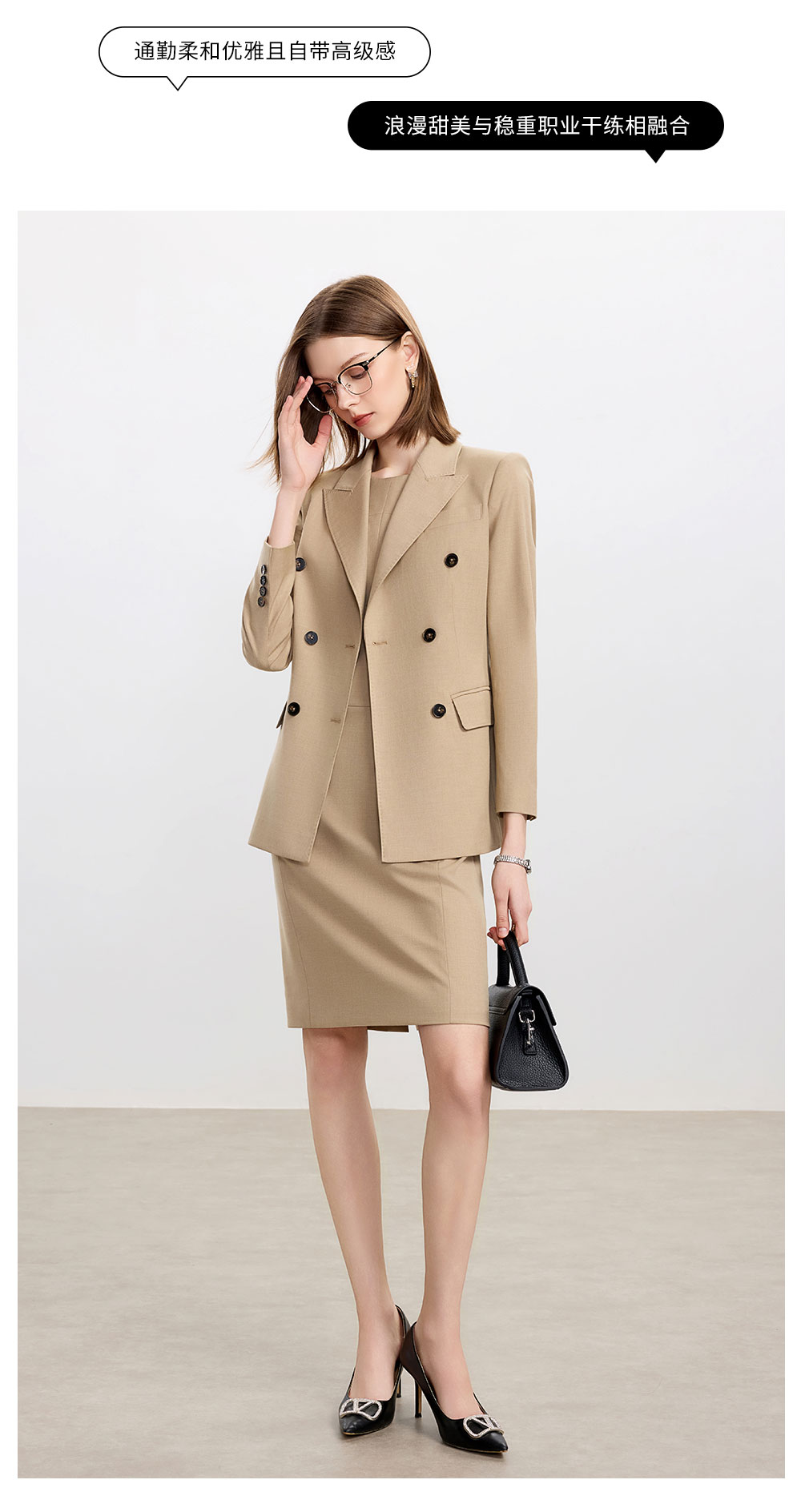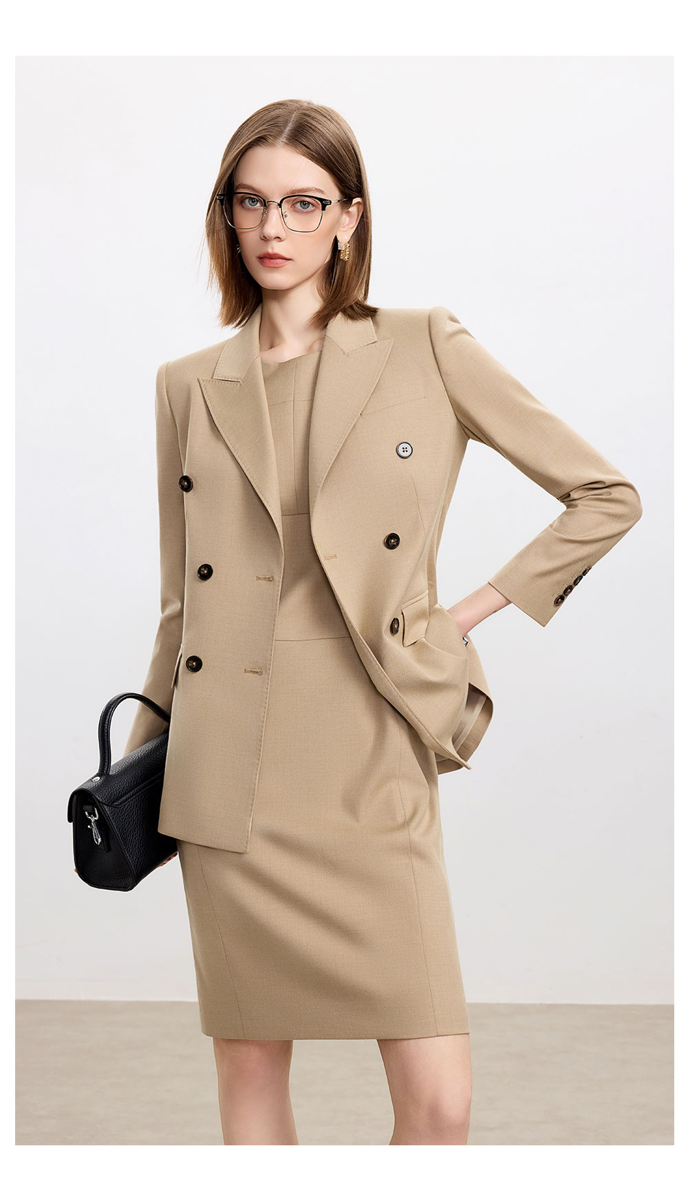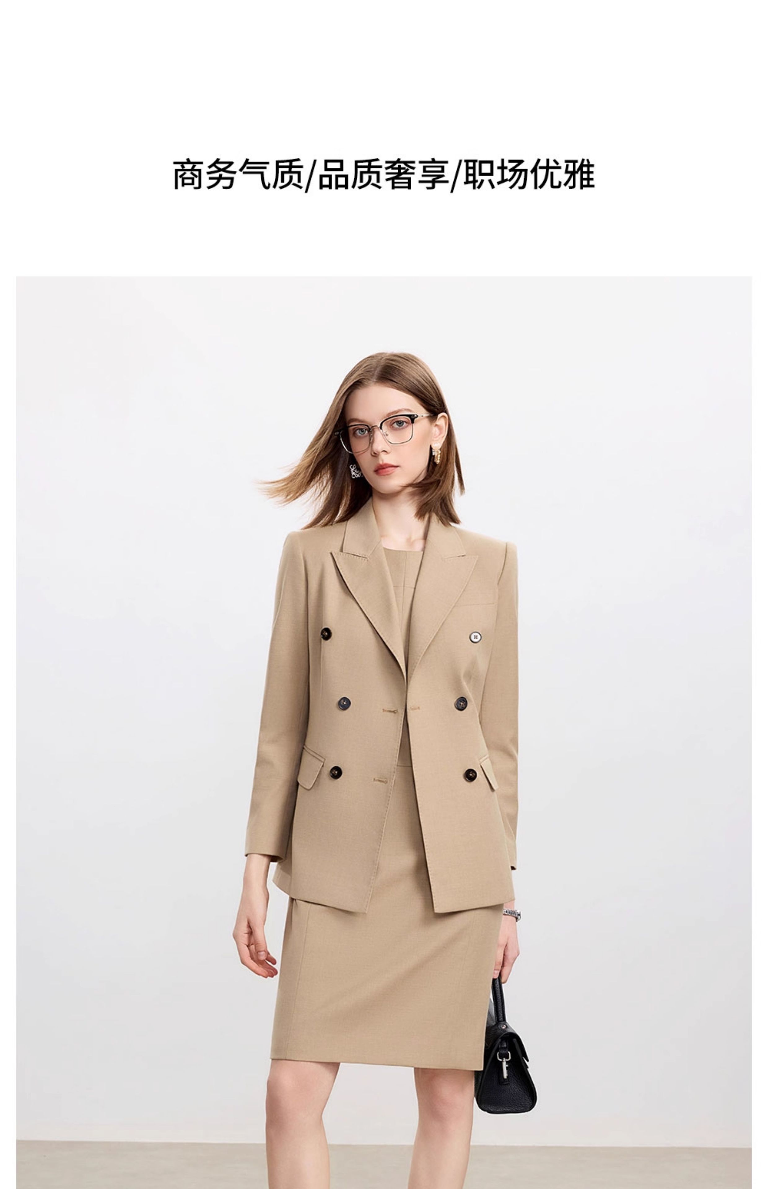 IWY/高级感卡其色羊毛西装套裙女气质英伦风职业装两件套工作服C2352+Q1442