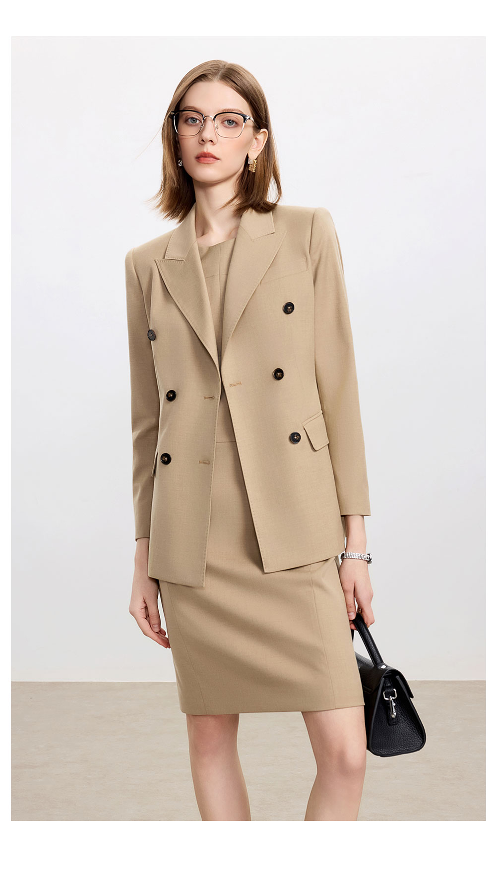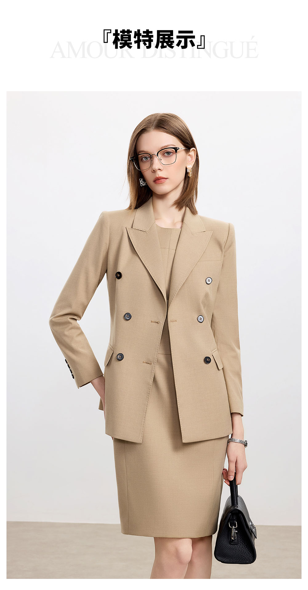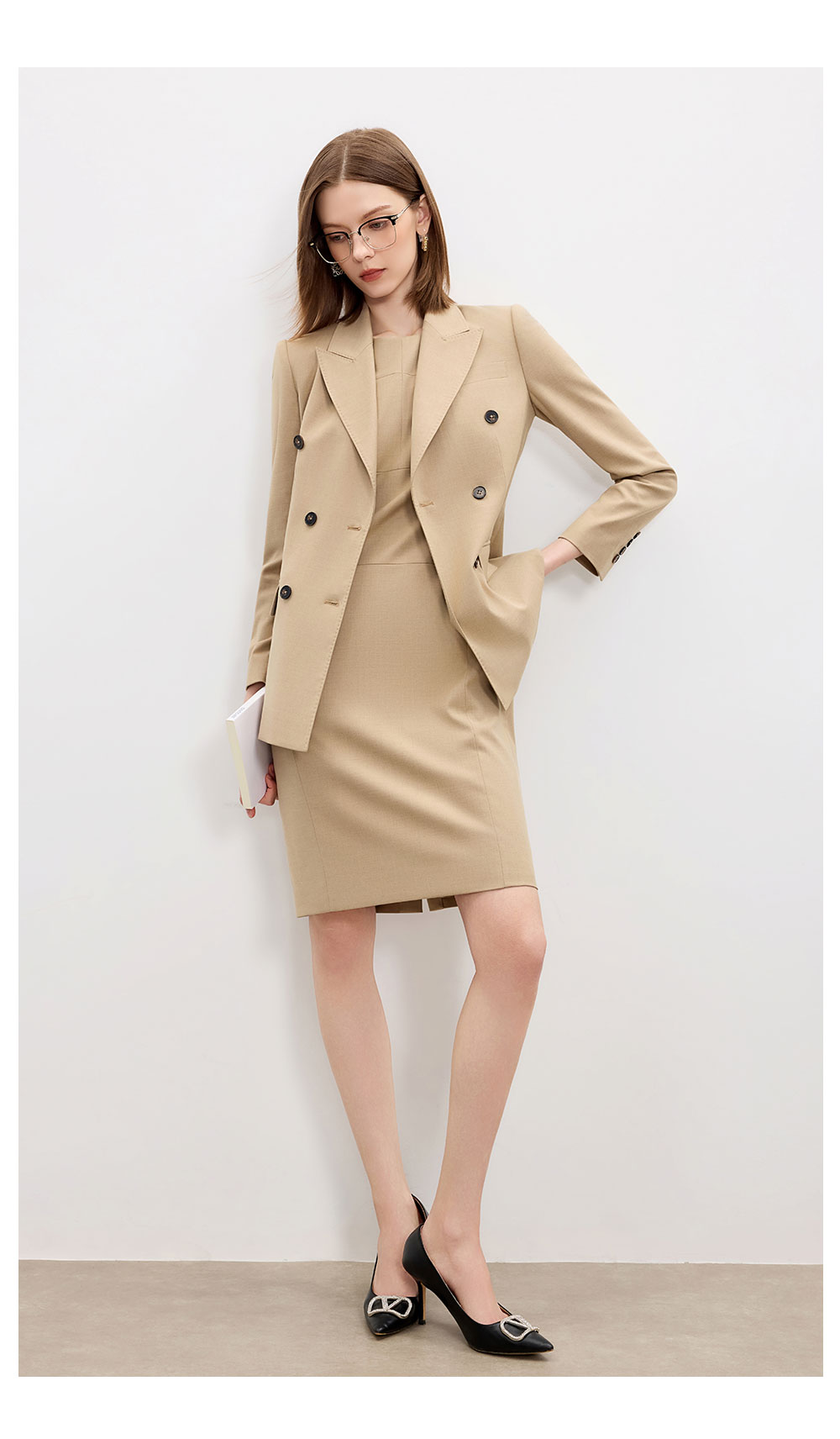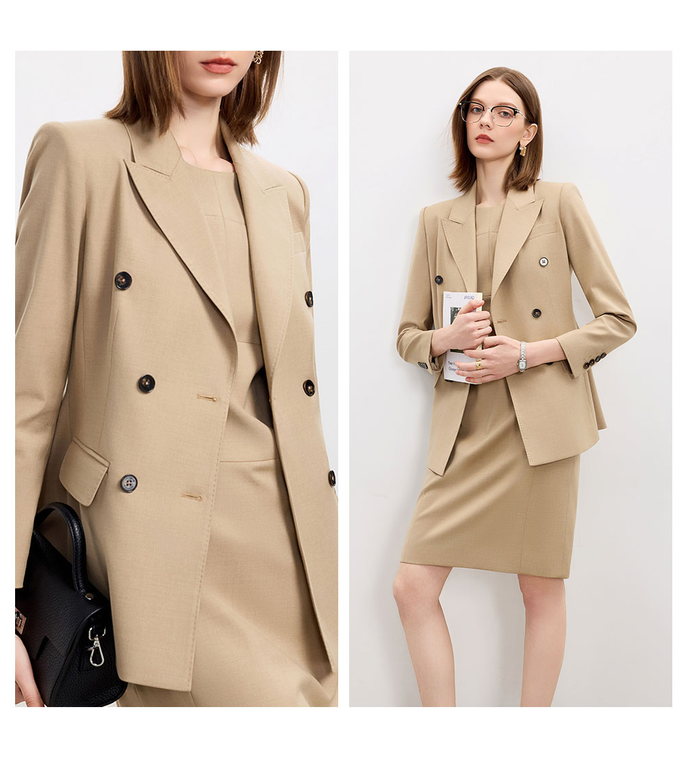 IWY/高级感卡其色羊毛西装套裙女气质英伦风职业装两件套工作服C2352+Q1442
