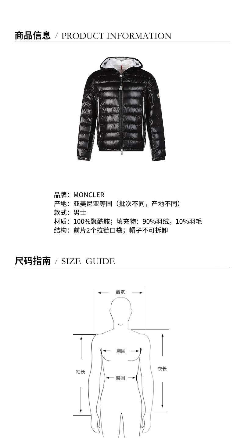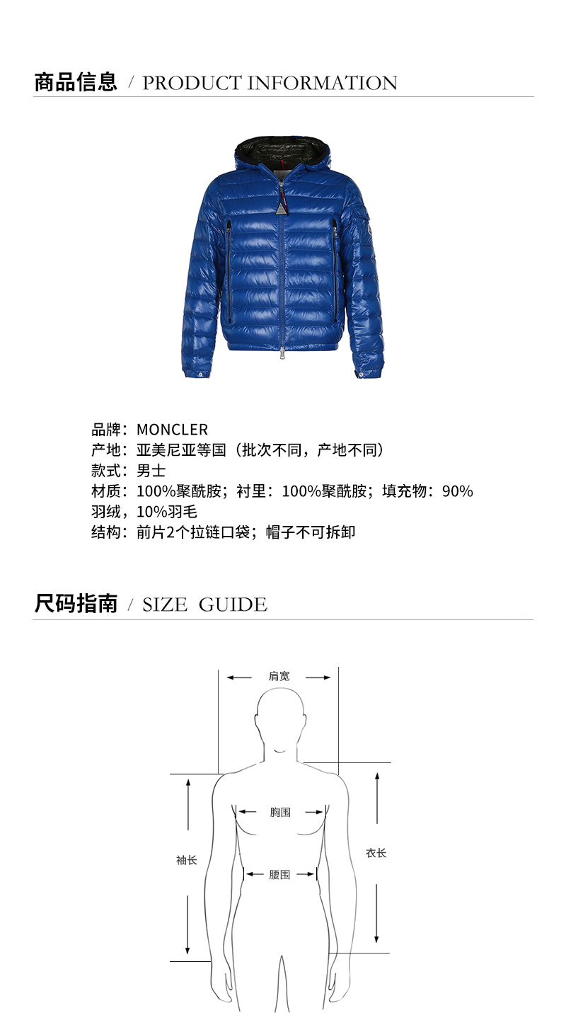 Moncler/蒙克莱【22春夏新款】男士薄款Galion短款连帽鹅绒羽绒服夹克外套 1A00027 M1592