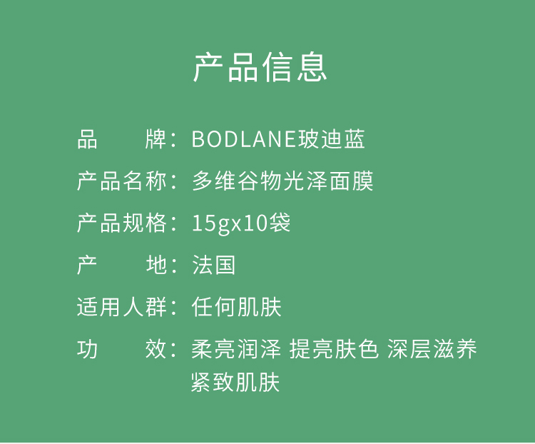 【BODLANE 玻迪蓝】多维谷物光泽面膜