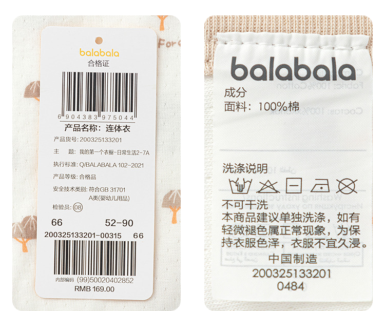 巴拉巴拉婴儿连体衣宝宝睡衣新生儿哈衣2025新款舒适