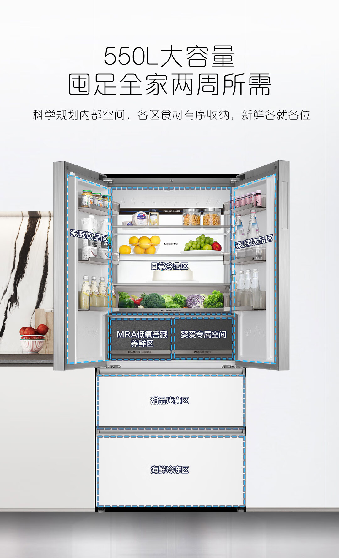 卡萨帝(Casarte)550升纯白零嵌法式多门白色家用大容量揽光502姐妹款超薄嵌入电冰箱变频BCD-550WGCFDM4WKU1