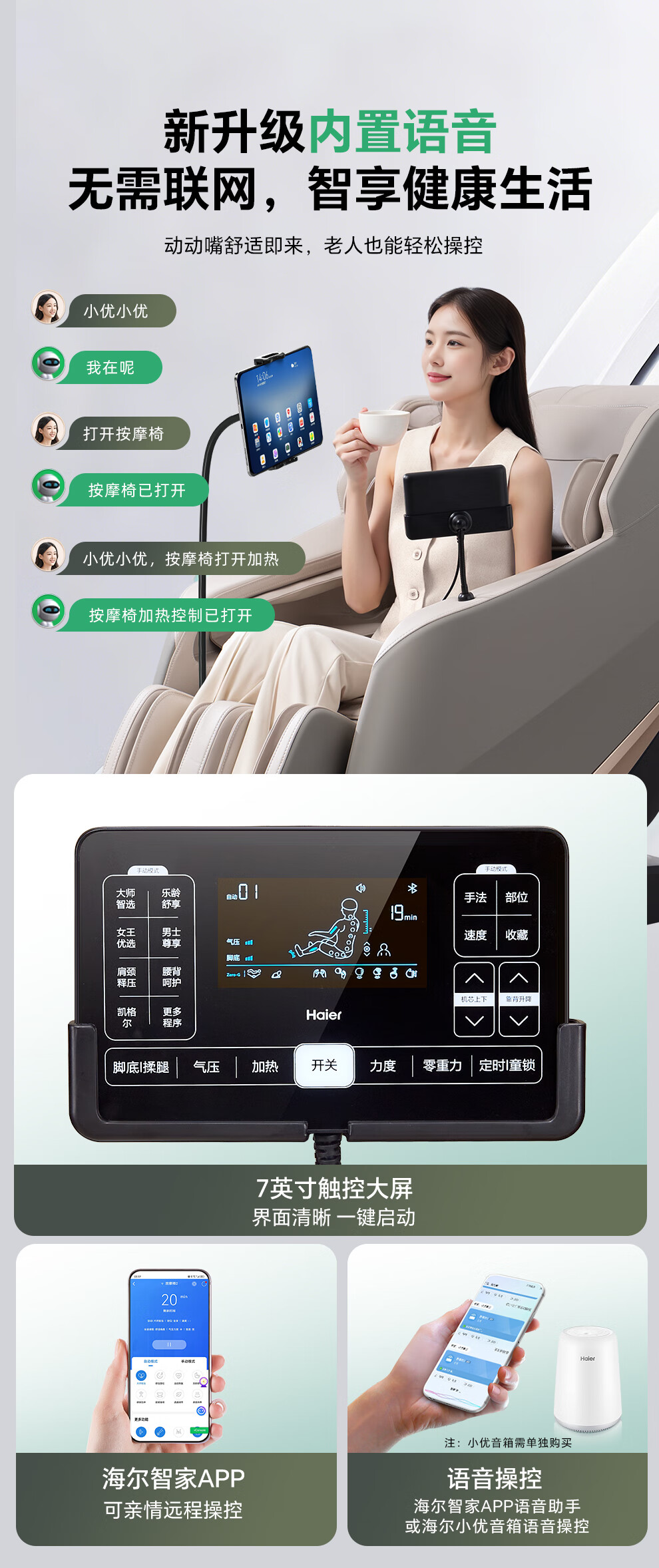 【 重磅新品】海尔(Haier)按摩椅十大品牌家用全身按摩太空舱肩颈腰背电动按摩沙发老人用送父母生日礼物H5-103HU1